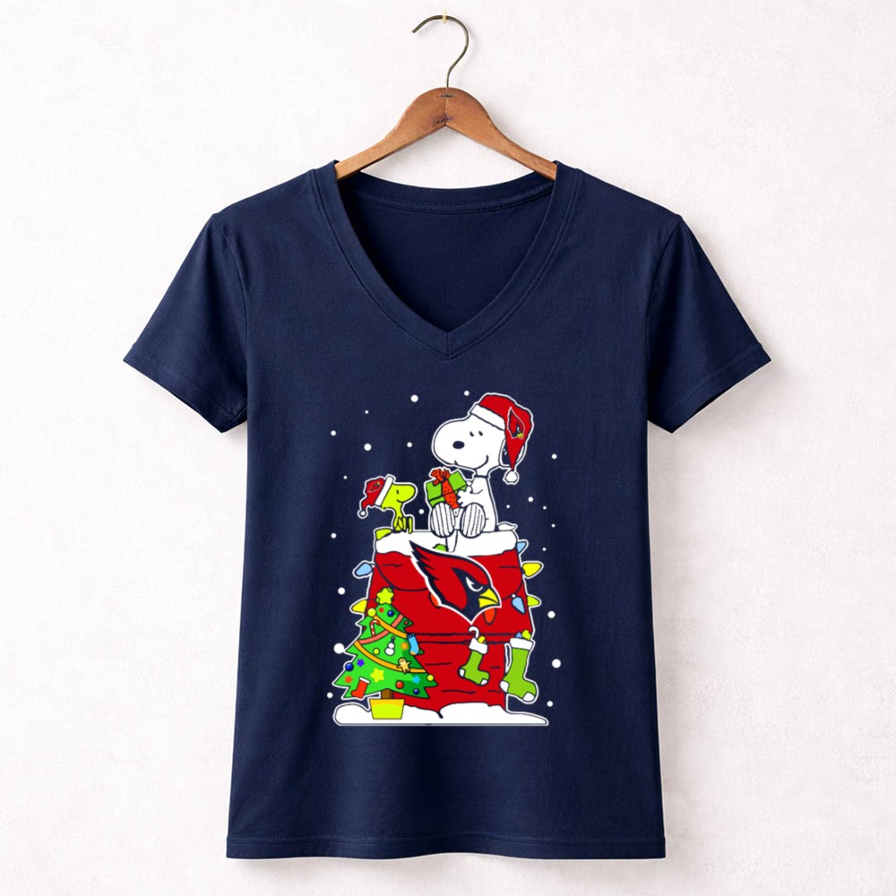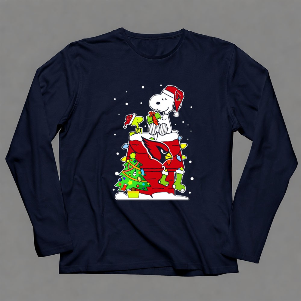 Arizona Cardinals Snoopy Christmas Celebration With Woodstock And Santa Hat Shirt