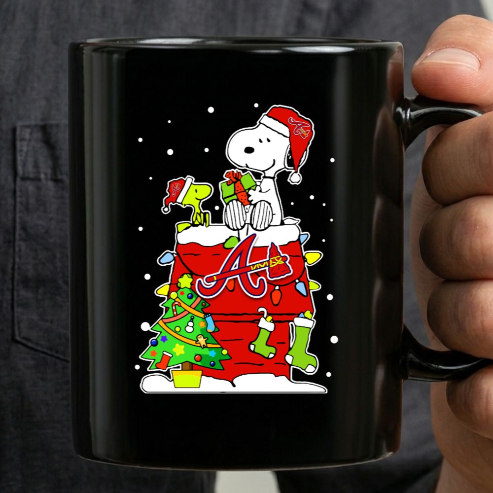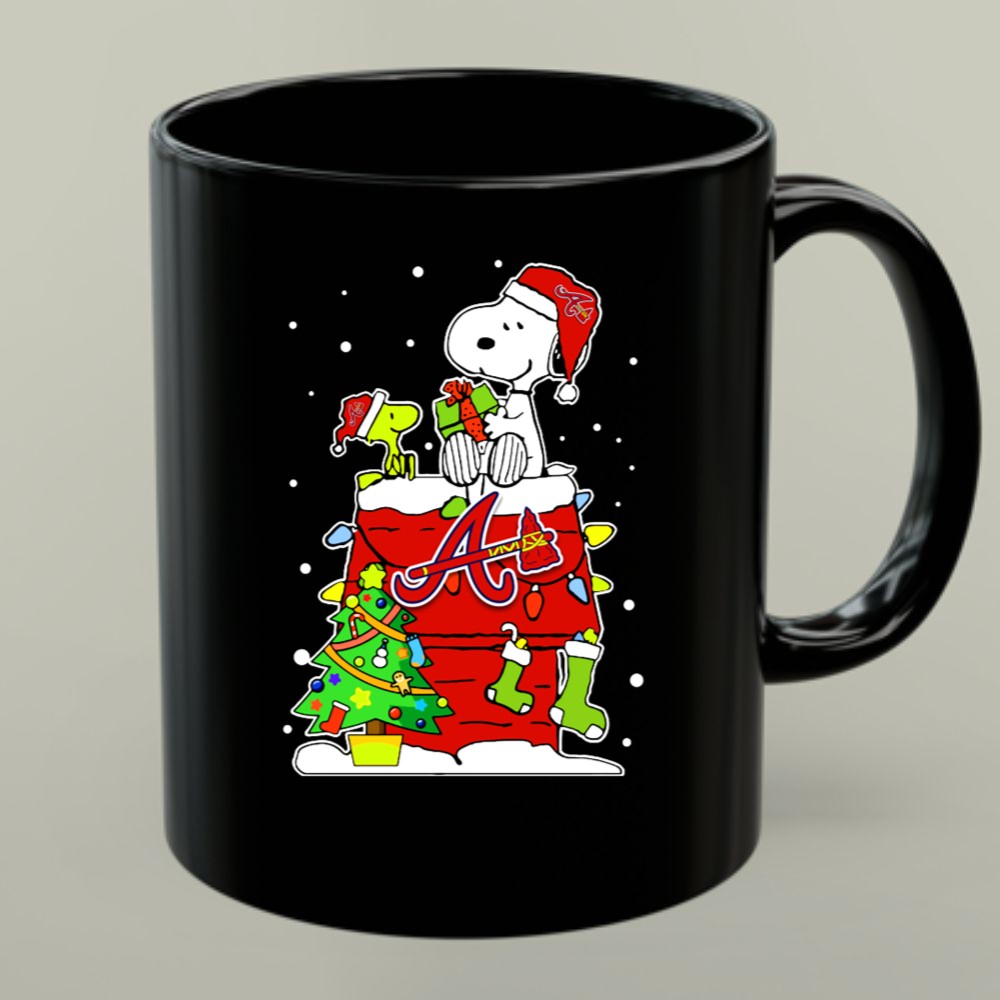 Embrace holiday spirit with a delightful Atlanta Braves-themed mug featuring Snoopy and Woodstock.