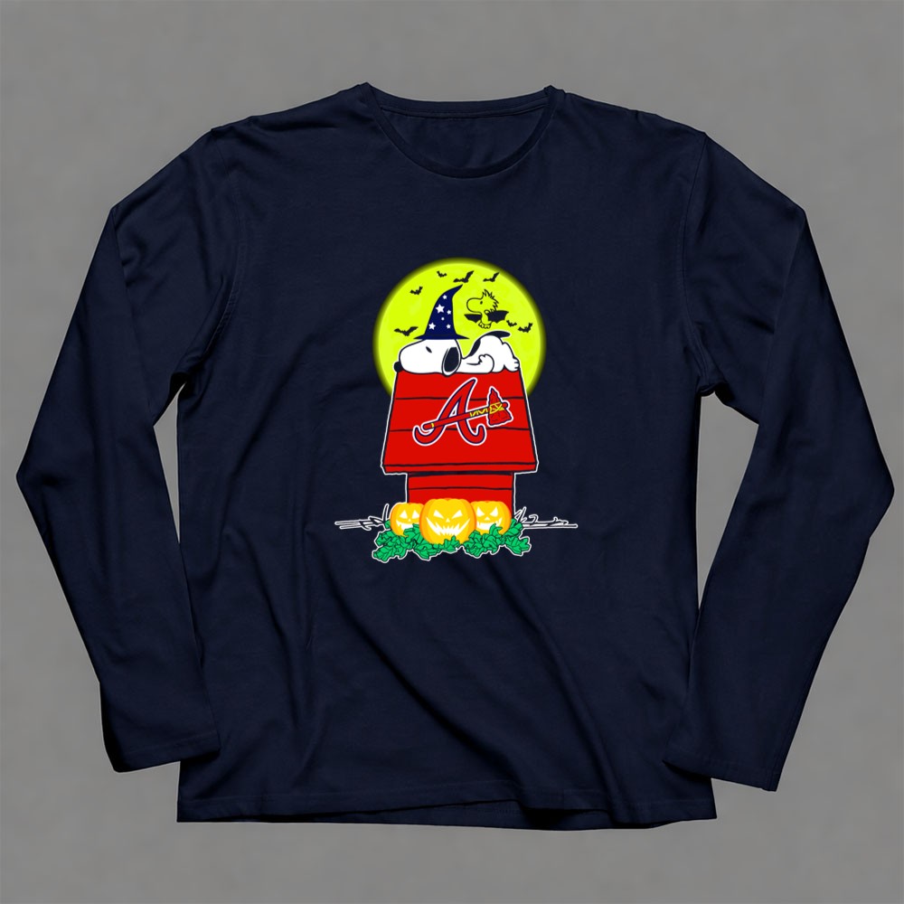 Atlanta Braves Snoopy Halloween Peanuts Moon Pumpkins Woodstock Shirt