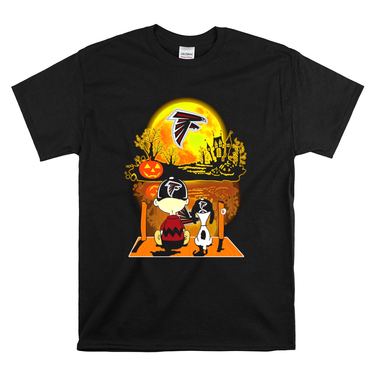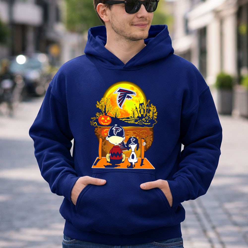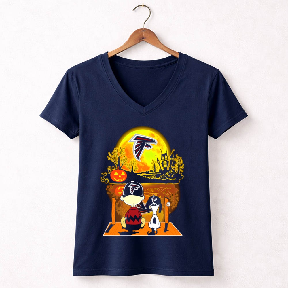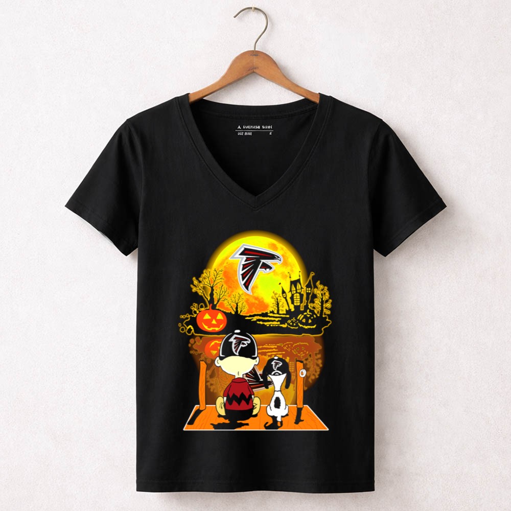 Atlanta Falcons Snoopy And Charlie Brown Halloween Pumpkin Moon Scene Shirt