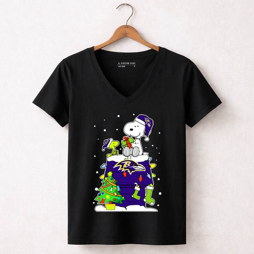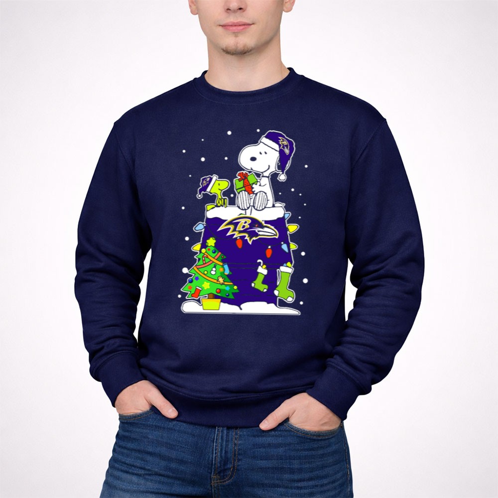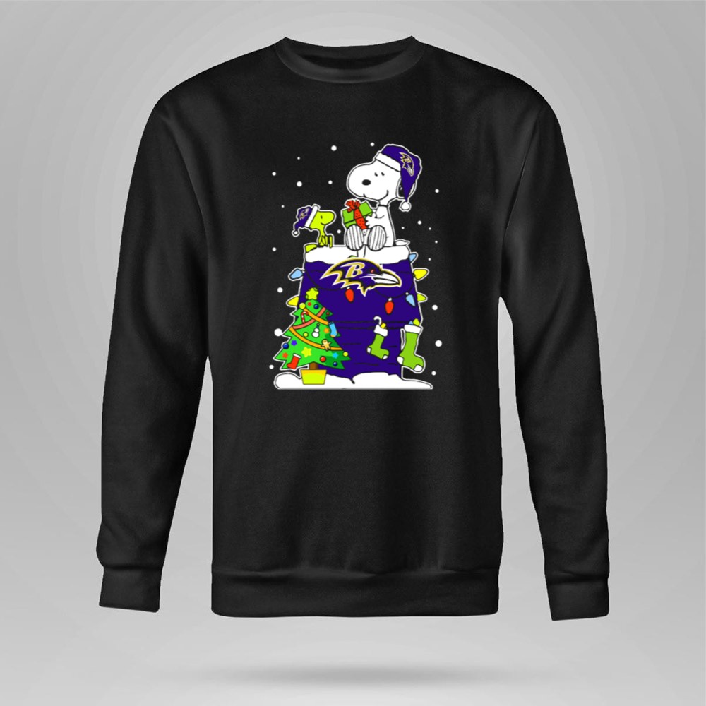 Baltimore Ravens Christmas With Snoopy And Woodstock Gifts Shirt