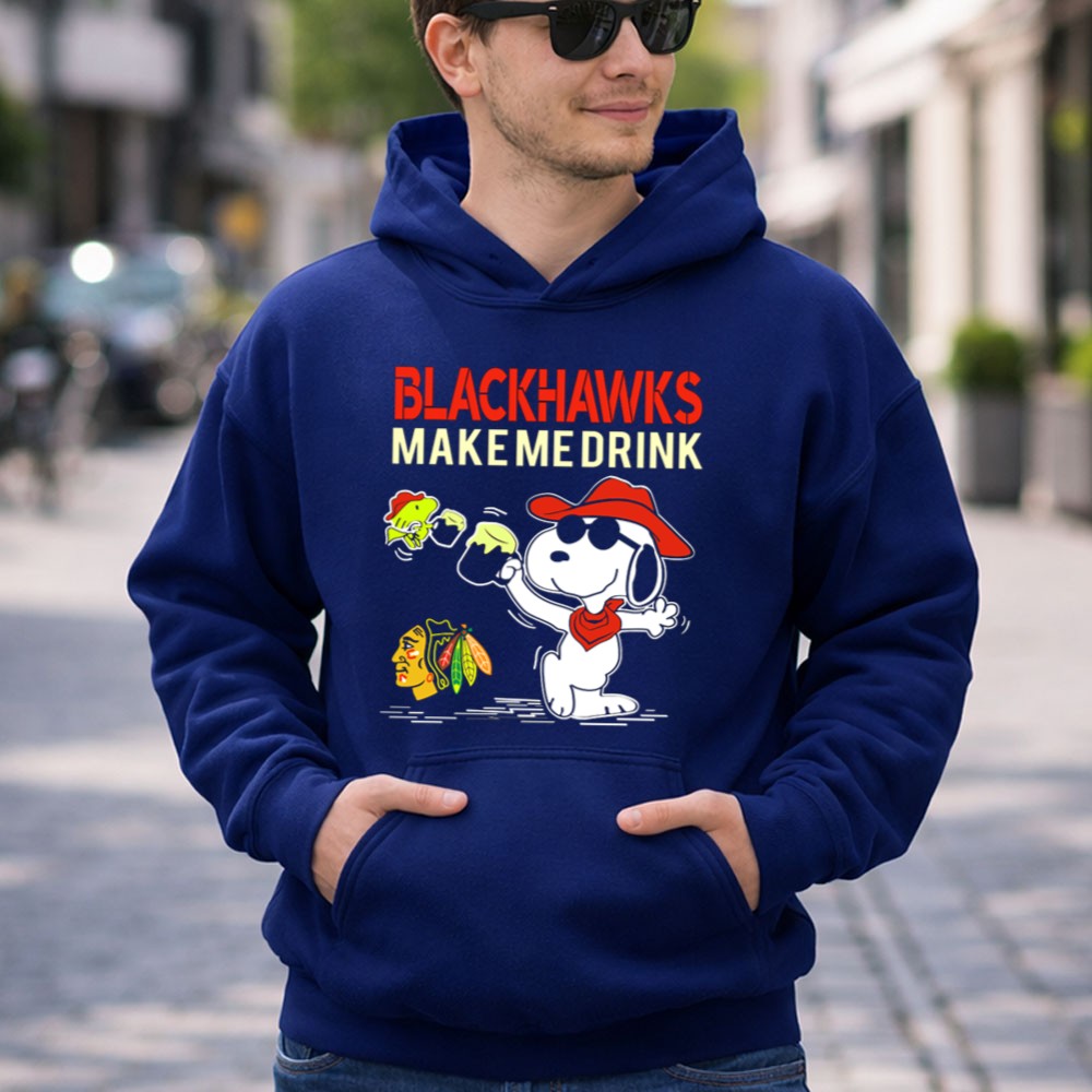 Blackhawks Make Me Drink Snoopy Chicago Blackhawks Fan Peanuts Shirt