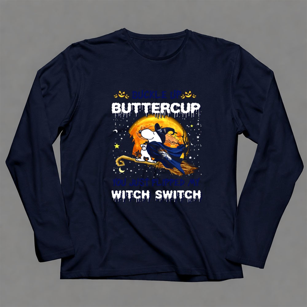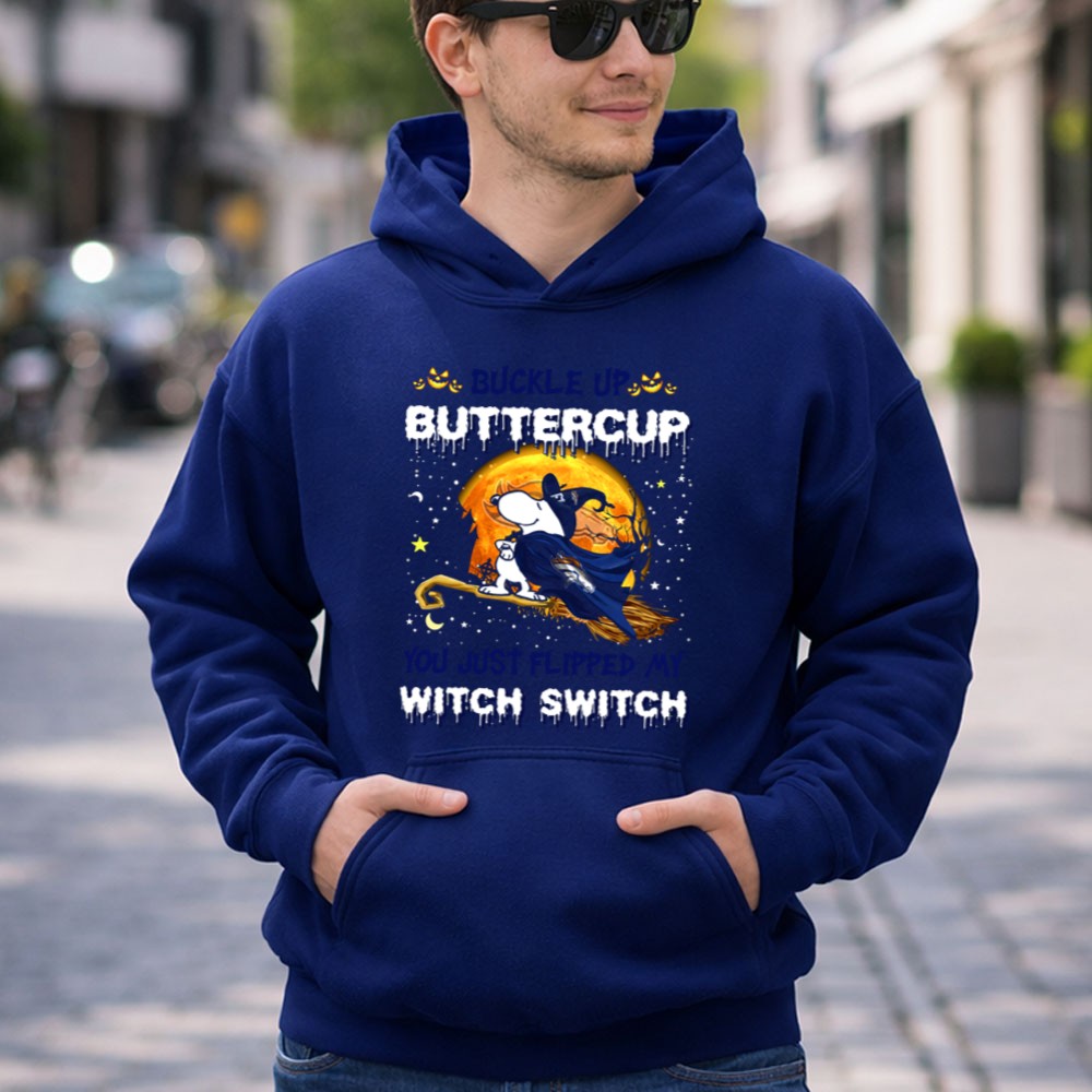 Buckle Up Buttercup Denver Broncos Snoopy You Just Flipped My Witch Switch Shirt