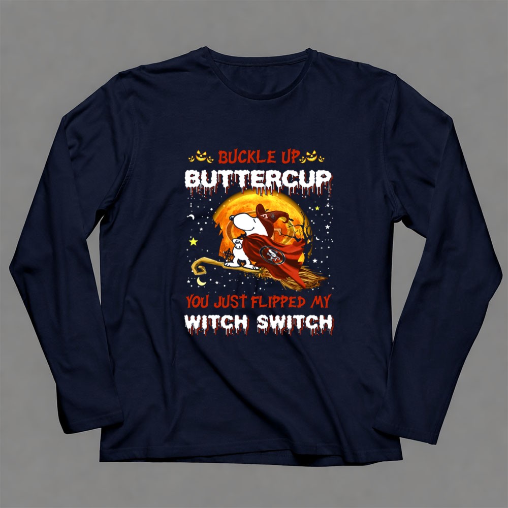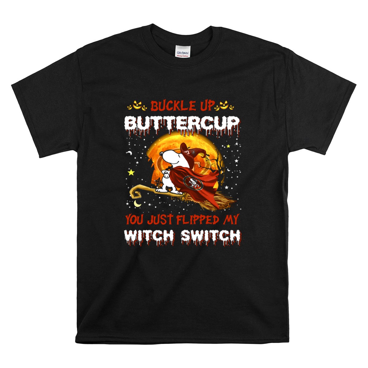 Buckle Up Buttercup San Francisco 49Ers Snoopy Witch Switch Halloween Shirt
