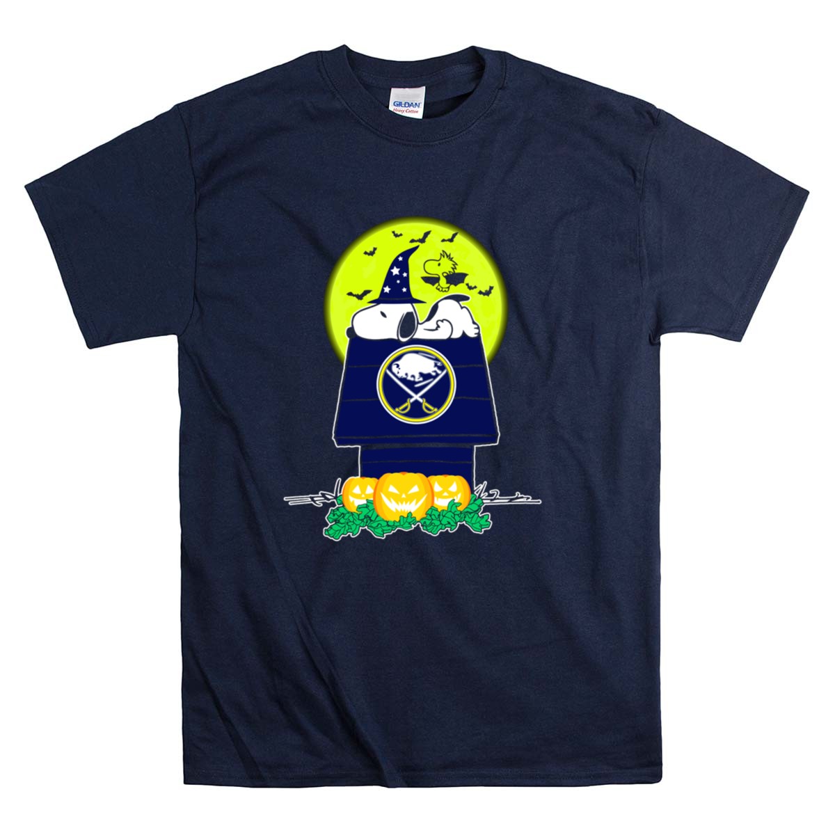 Buffalo Sabres Snoopy Halloween Moon Pumpkins Woodstock Shirt