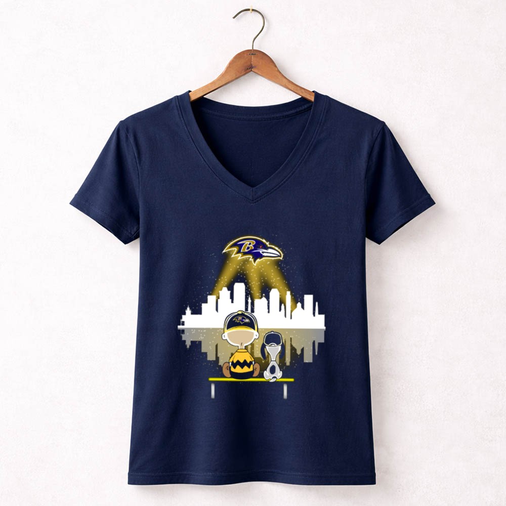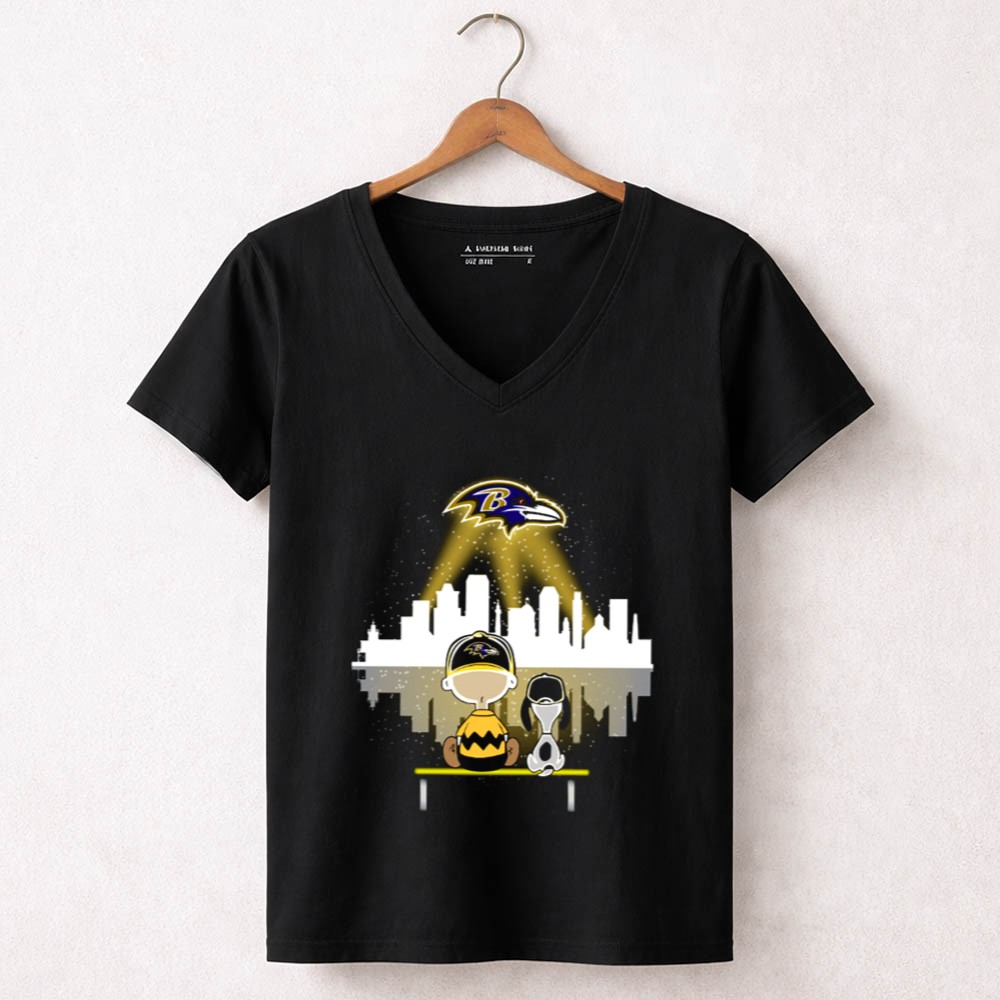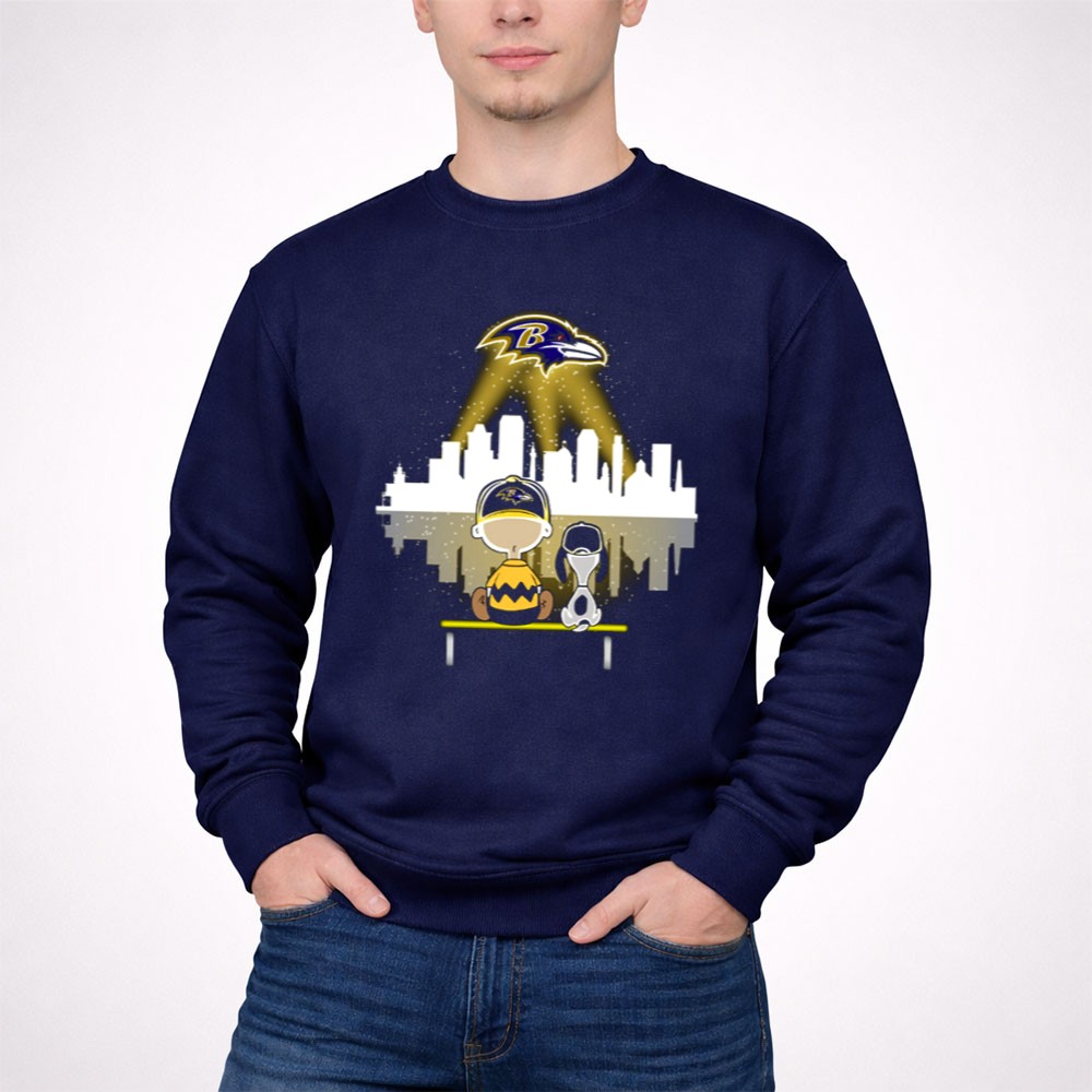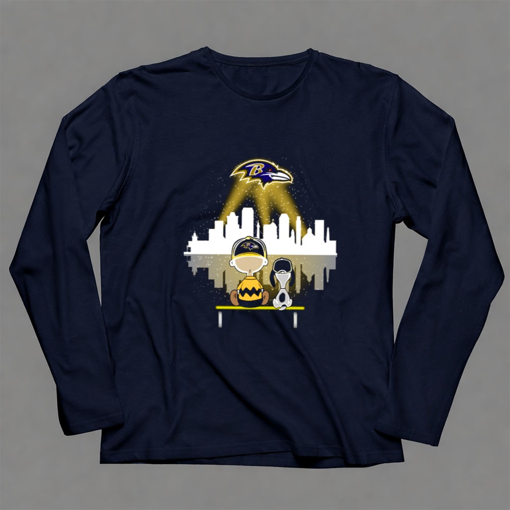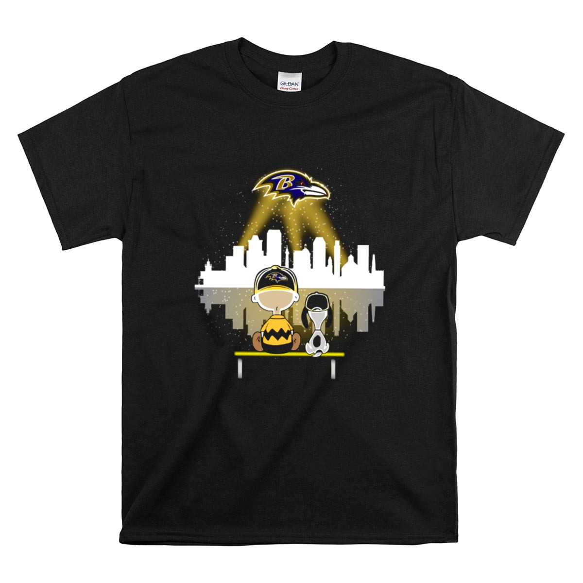 Charlie Brown And Snoopy Dog Watching City Baltimore Ravens Shirt