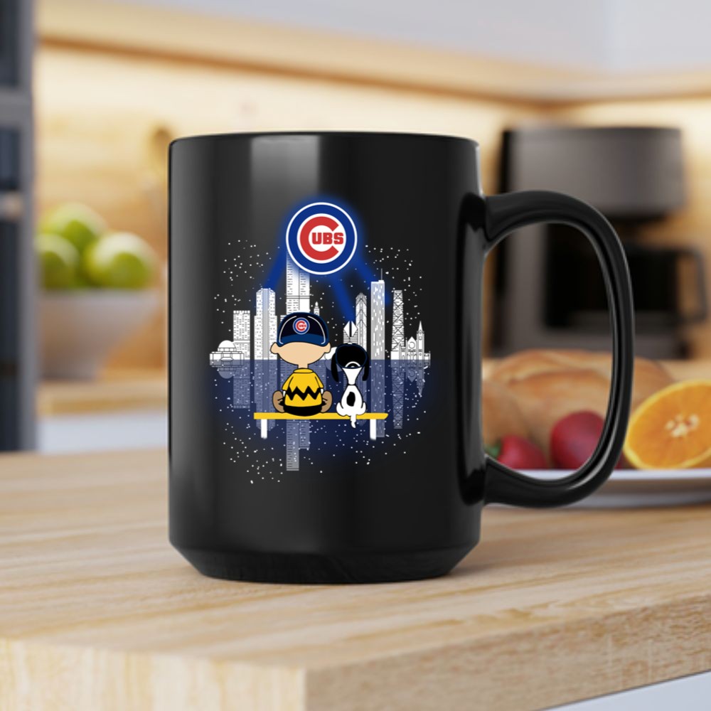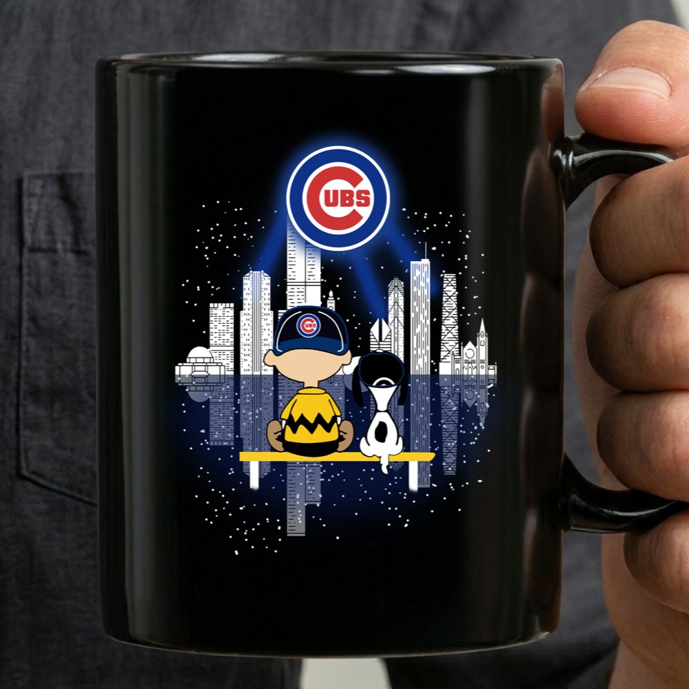 Charlie Brown And Snoopy Dog Watching City Chicago Cubs Mug