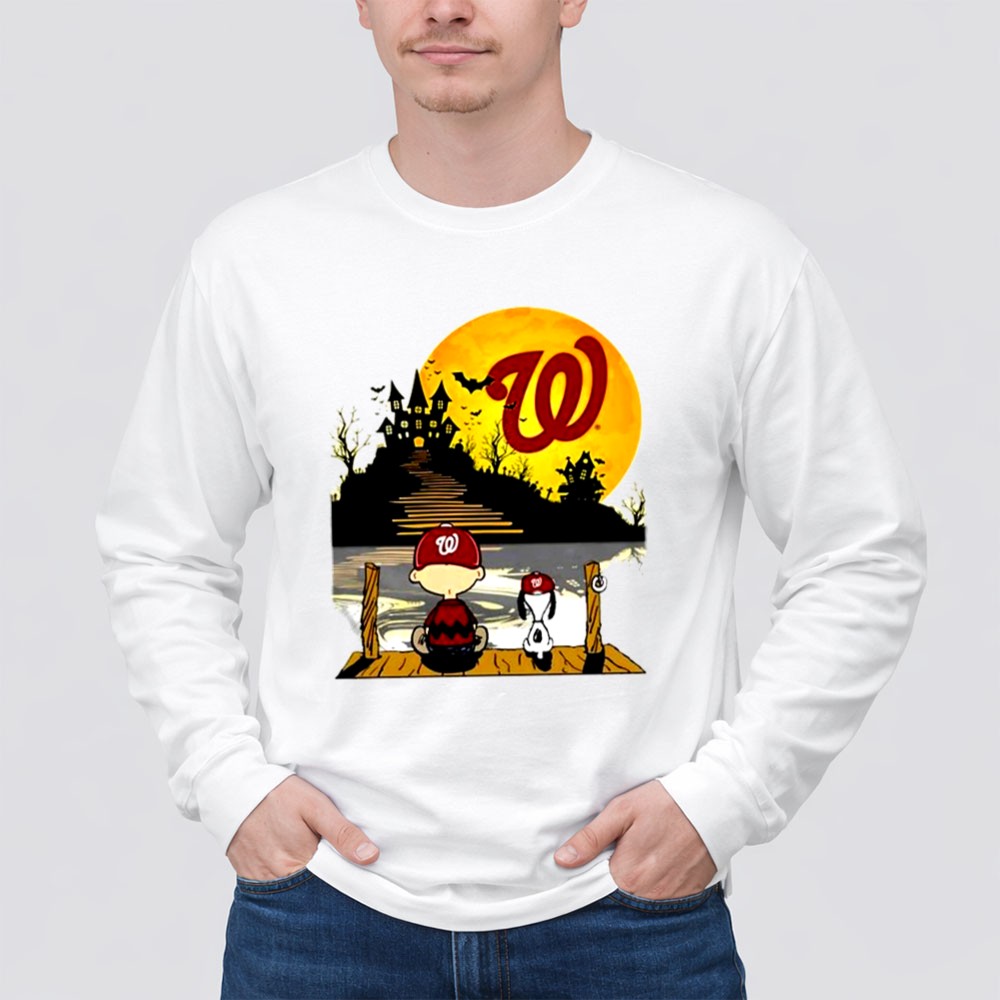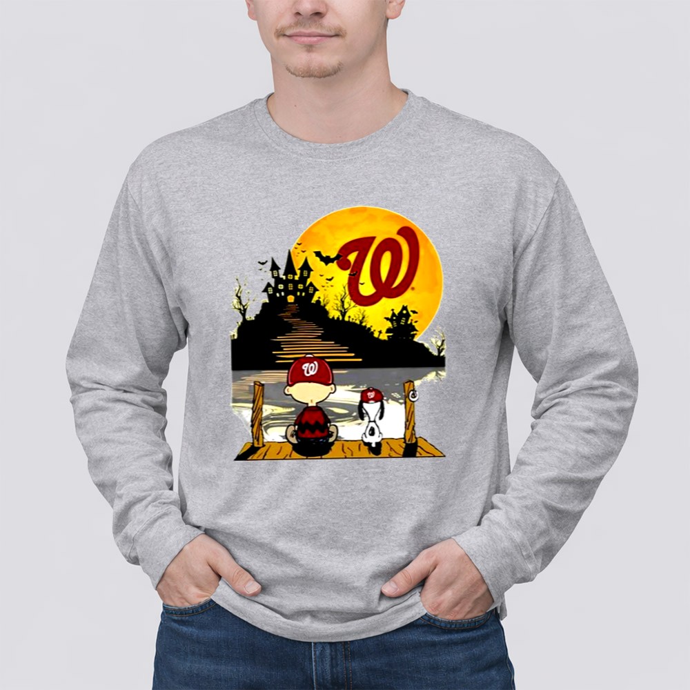 Charlie Brown And Snoopy Sit Under Moon Halloween Washington Nationals Shirt
