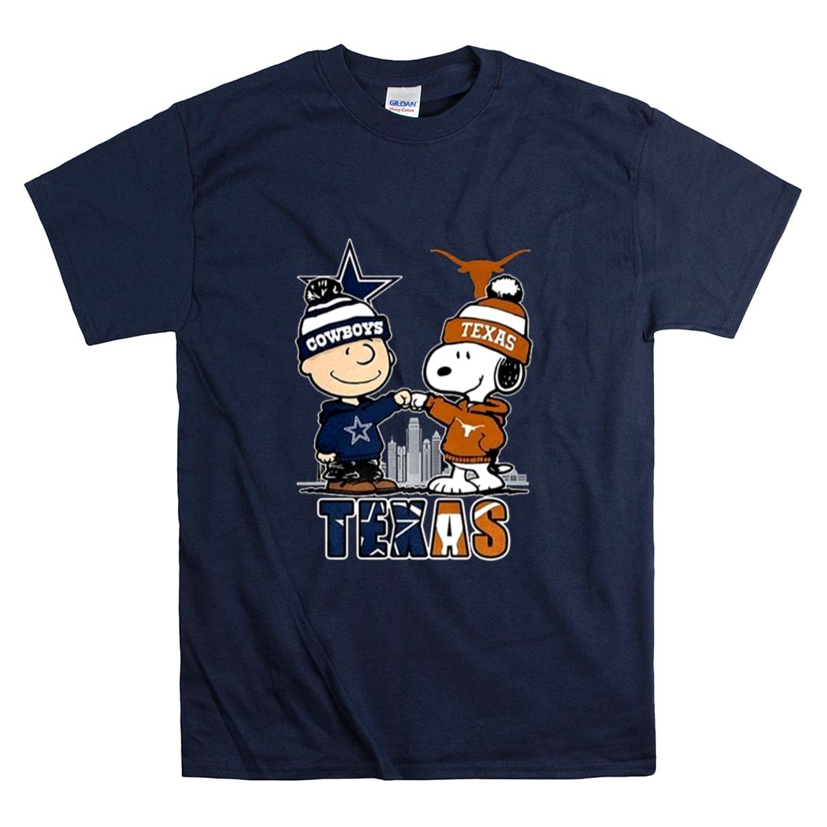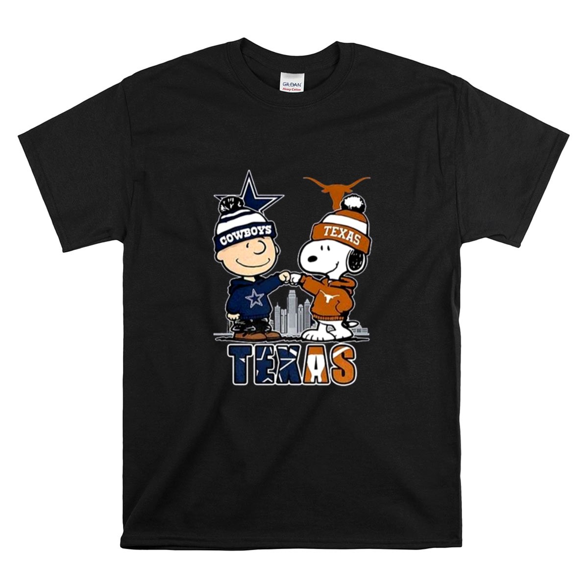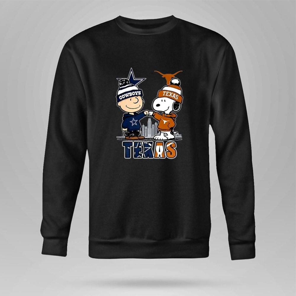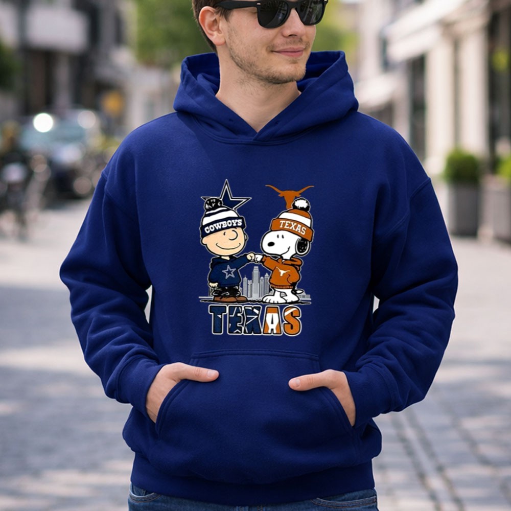 Charlie Brown Dallas Cowboys Touch Hand Snoopy Texas Longhorns Skyline Shirt