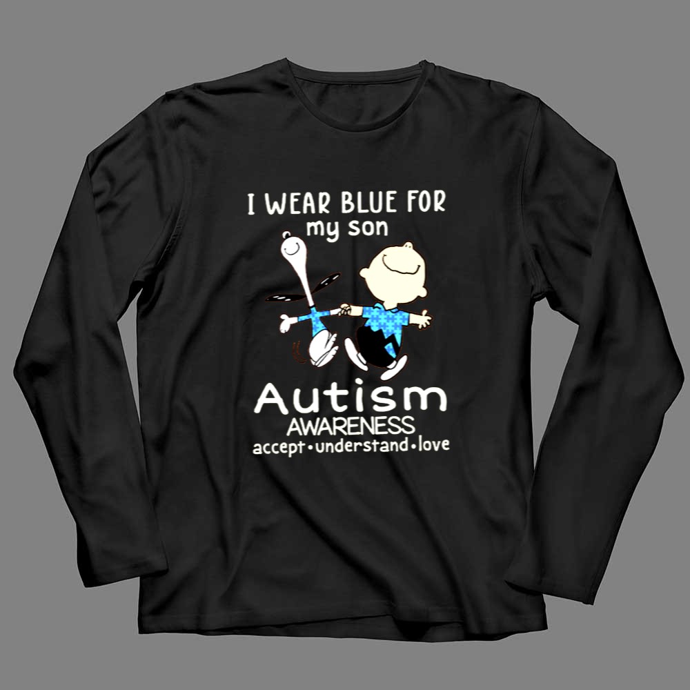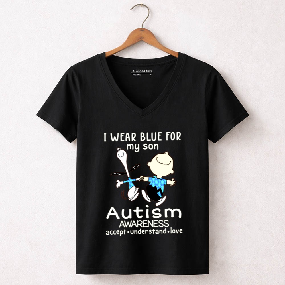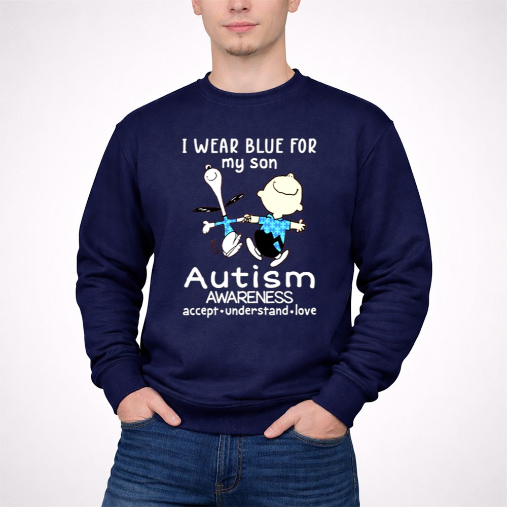 Charlie Brown Snoopy I Wear Blue For My Son Autism Awareness Accept Understand Shirt