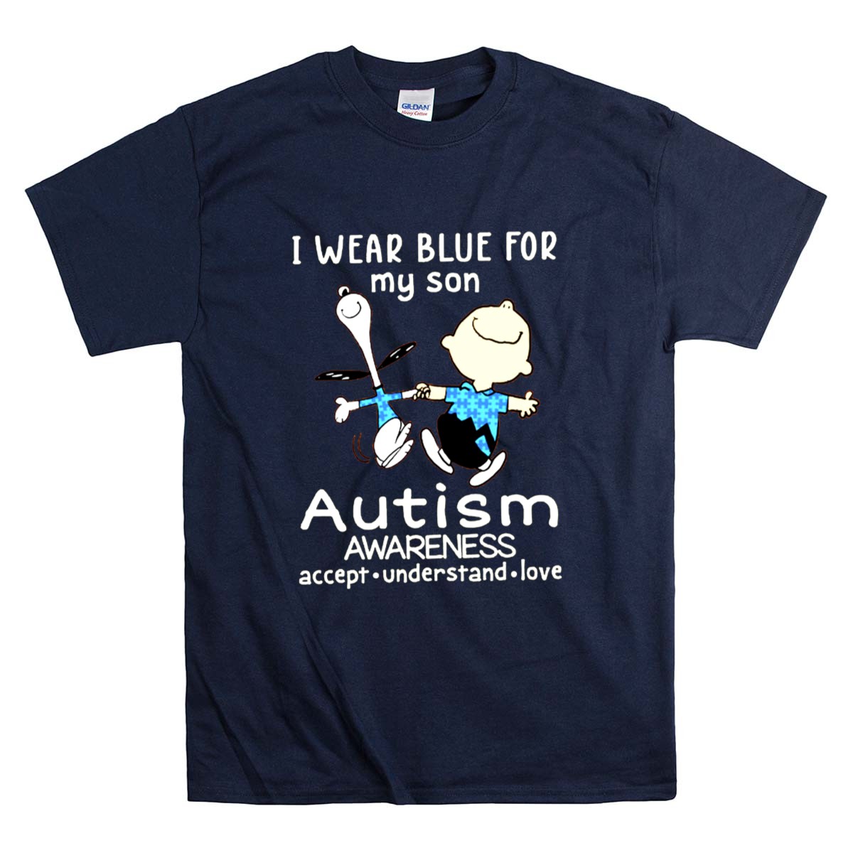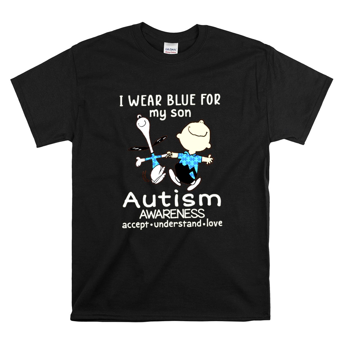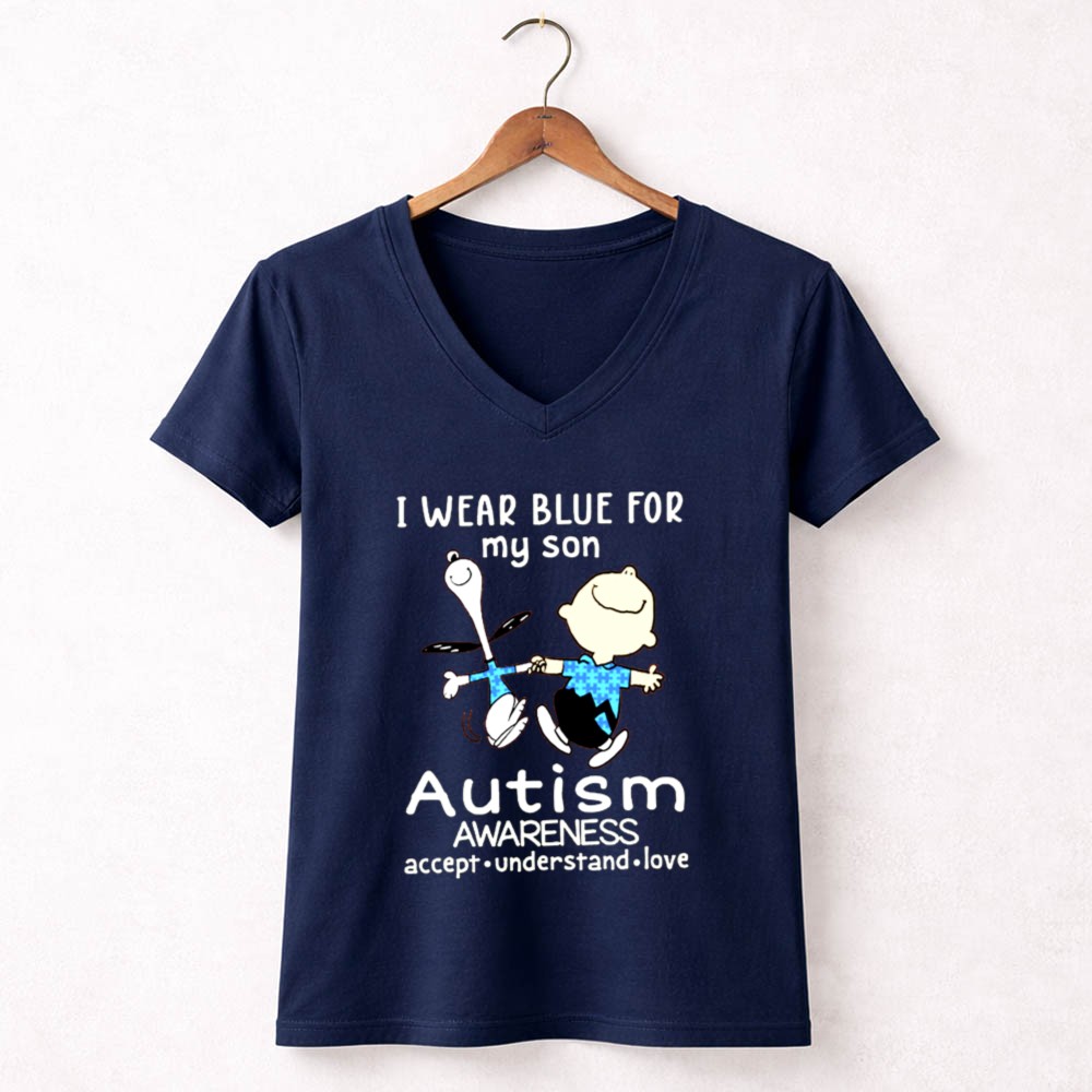 Be the first to review “Charlie Brown Snoopy I Wear Blue For My Son Autism Awareness Accept Understand Shirt”
