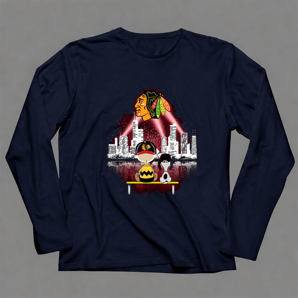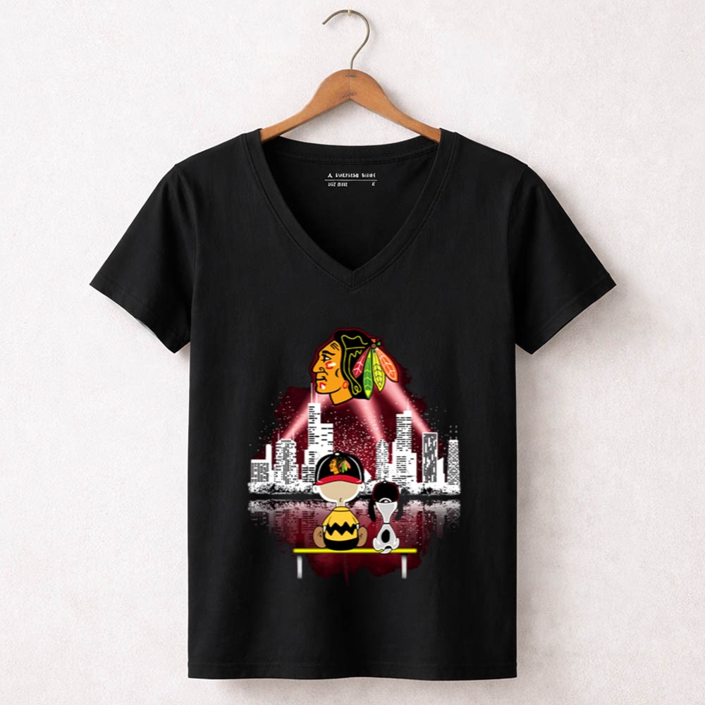 Charlie Brown Snoopy Watching City Chicago Blackhawks Shirt