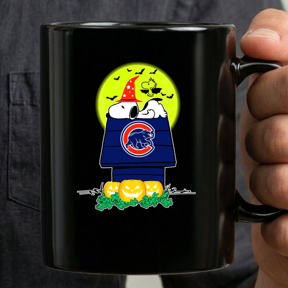 Embrace the spooky season with this playful Chicago Cubs-themed Snoopy Halloween mug, perfect for any fan.