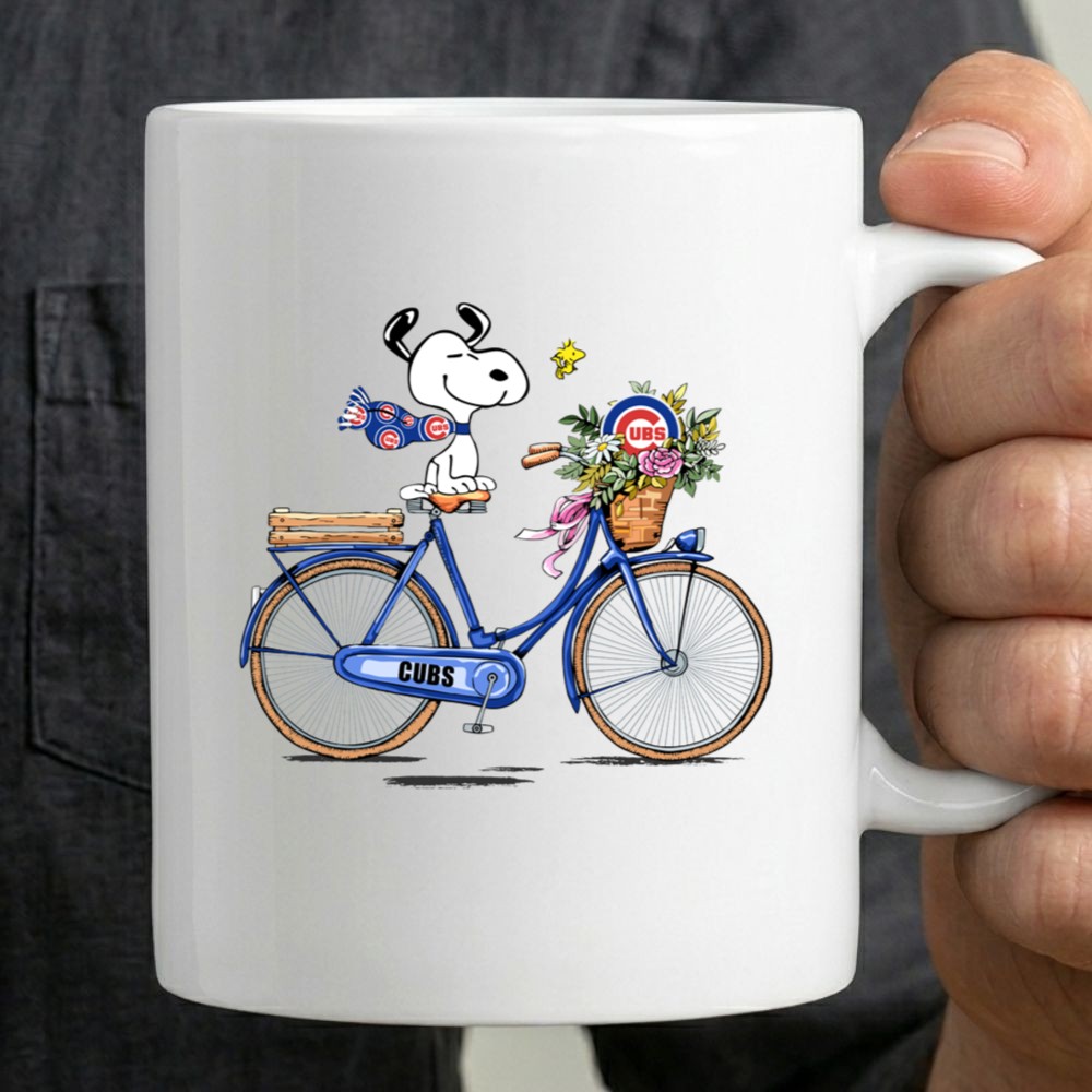 Chicago Cubs Snoopy on Bicycle with Flowers and Woodstock Mug