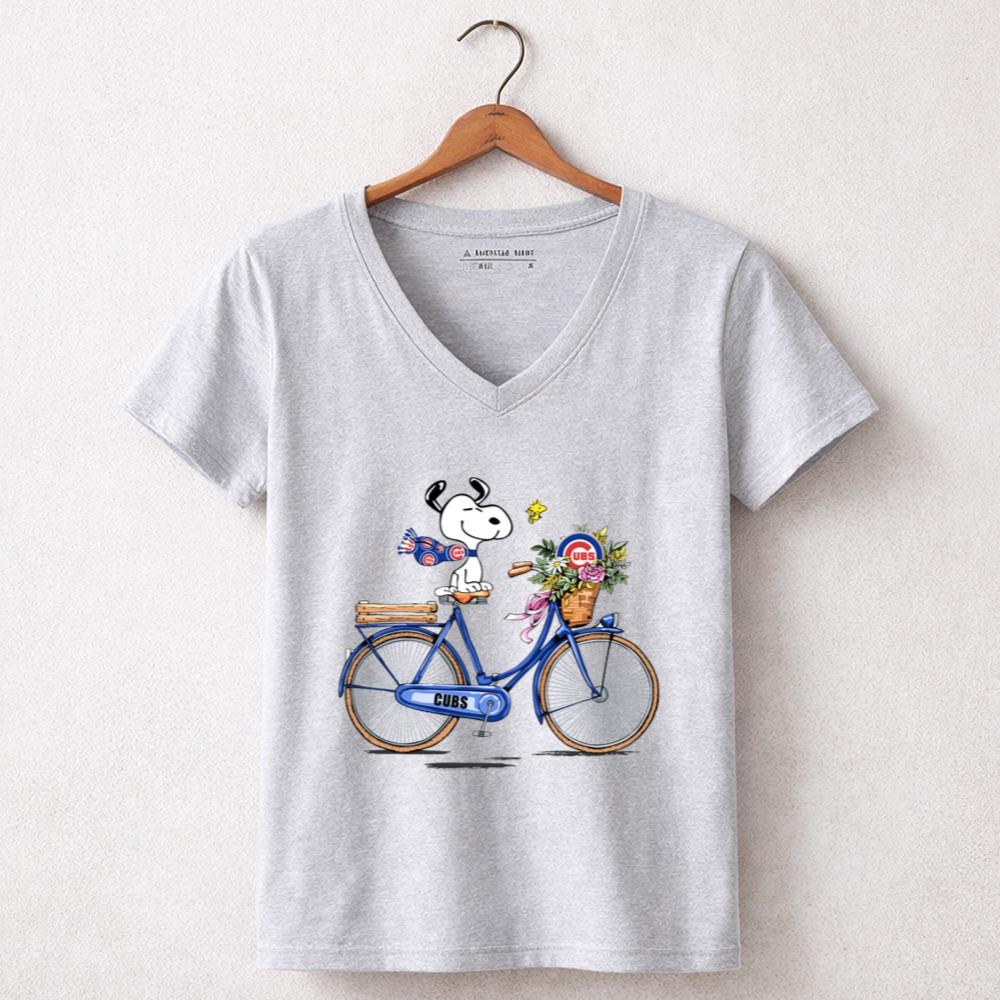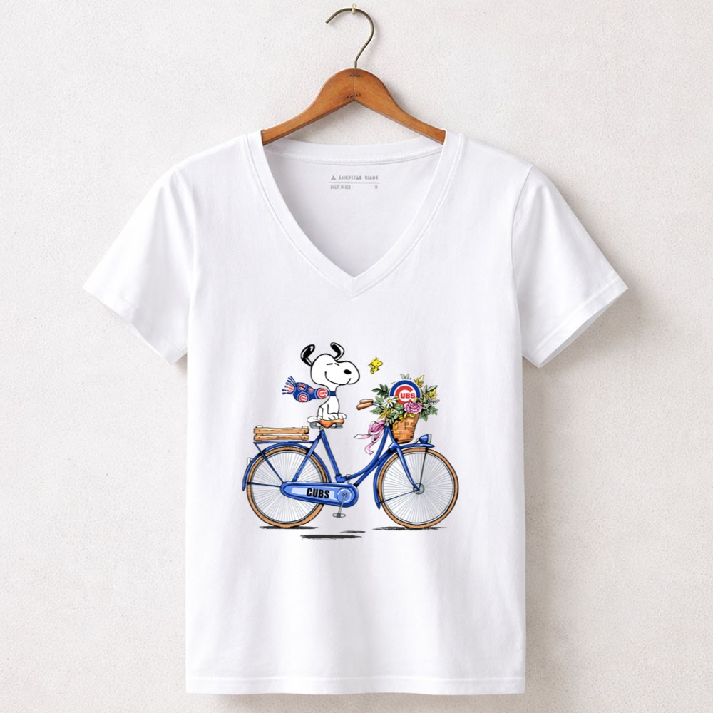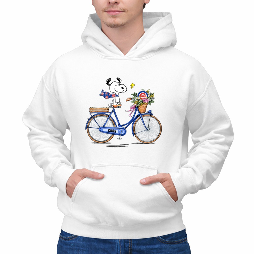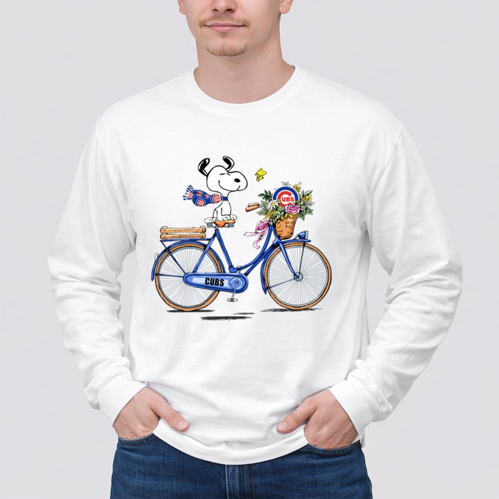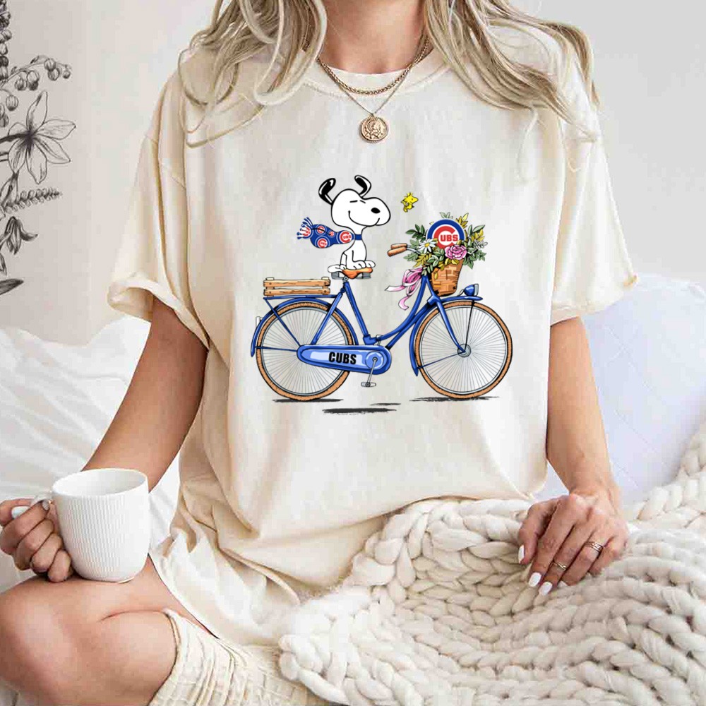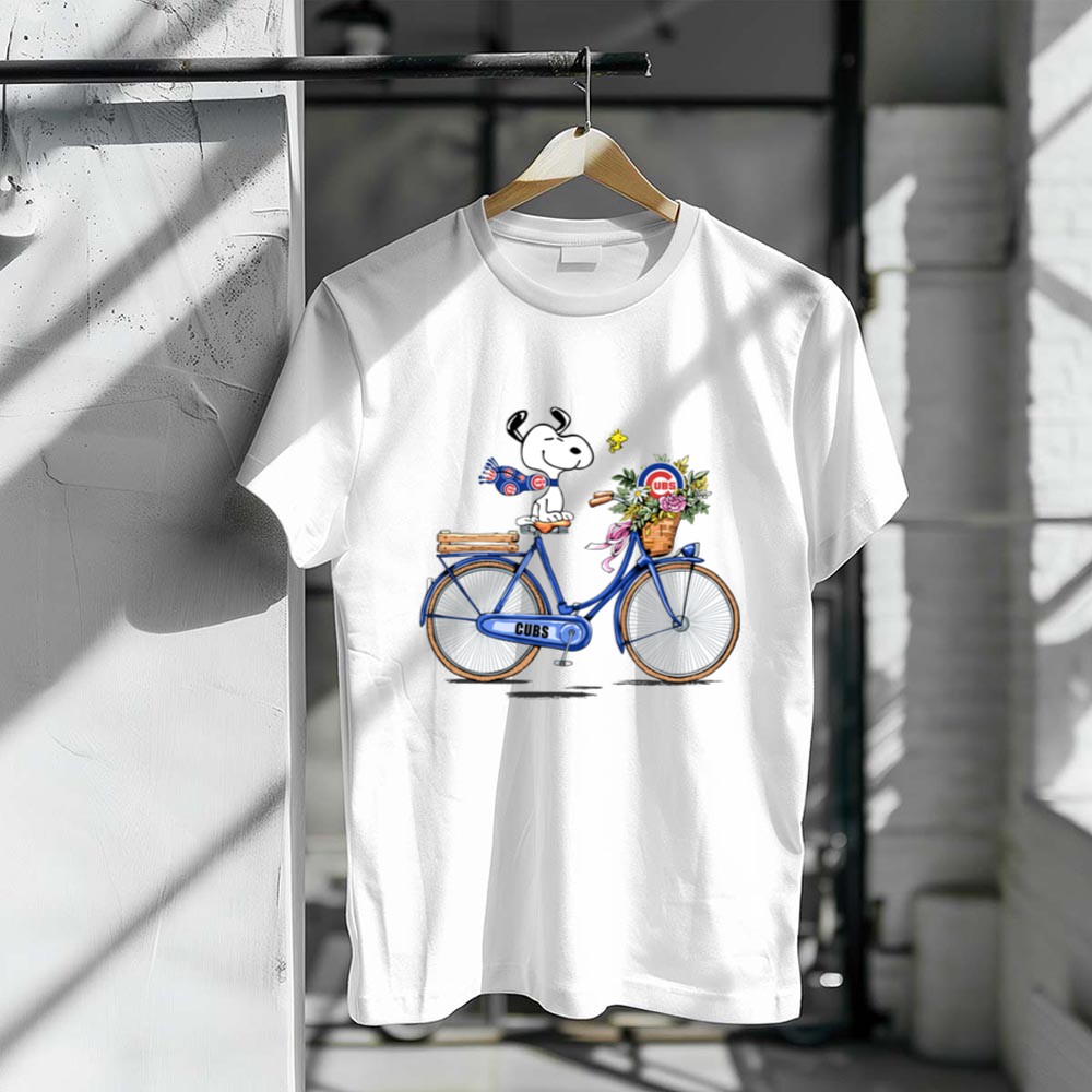 Chicago Cubs Snoopy On Bicycle With Flowers And Woodstock Shirt