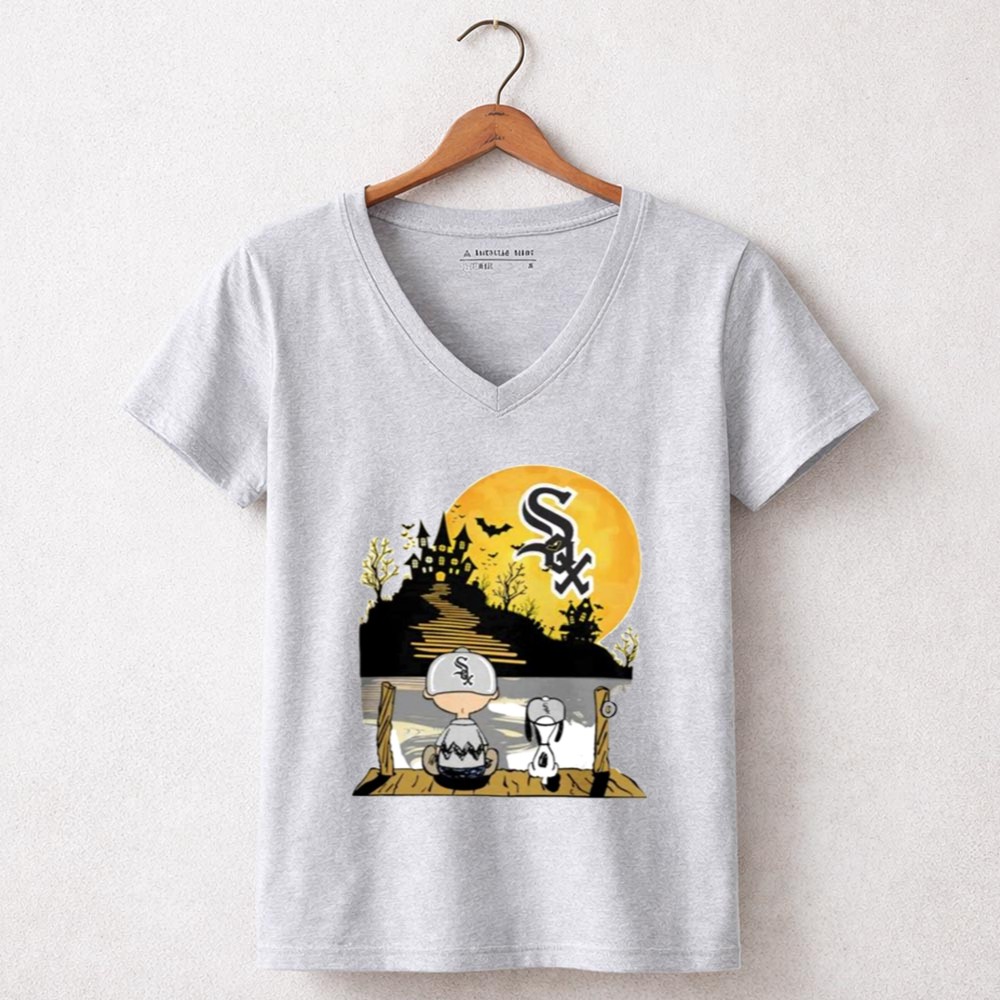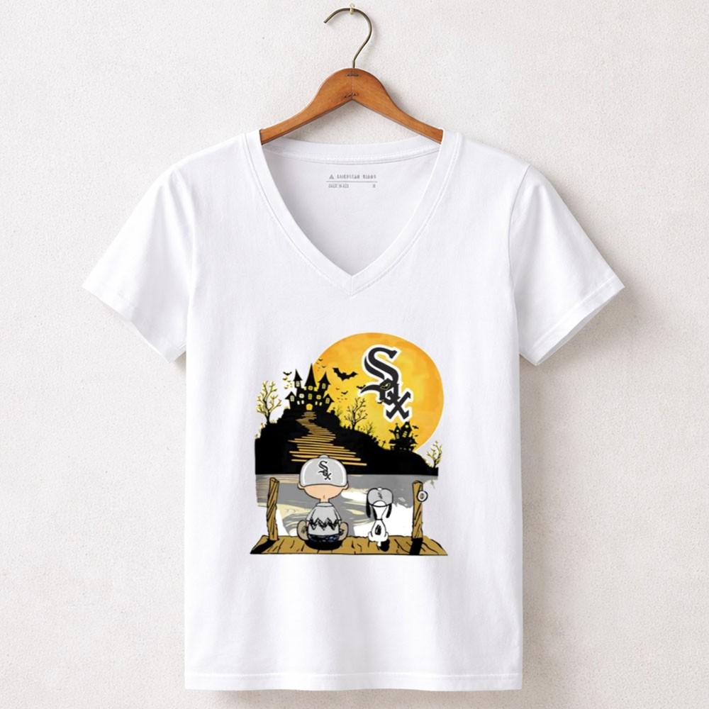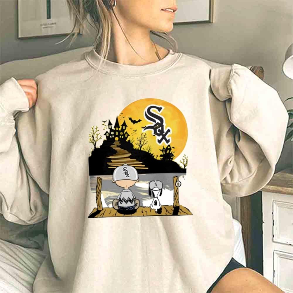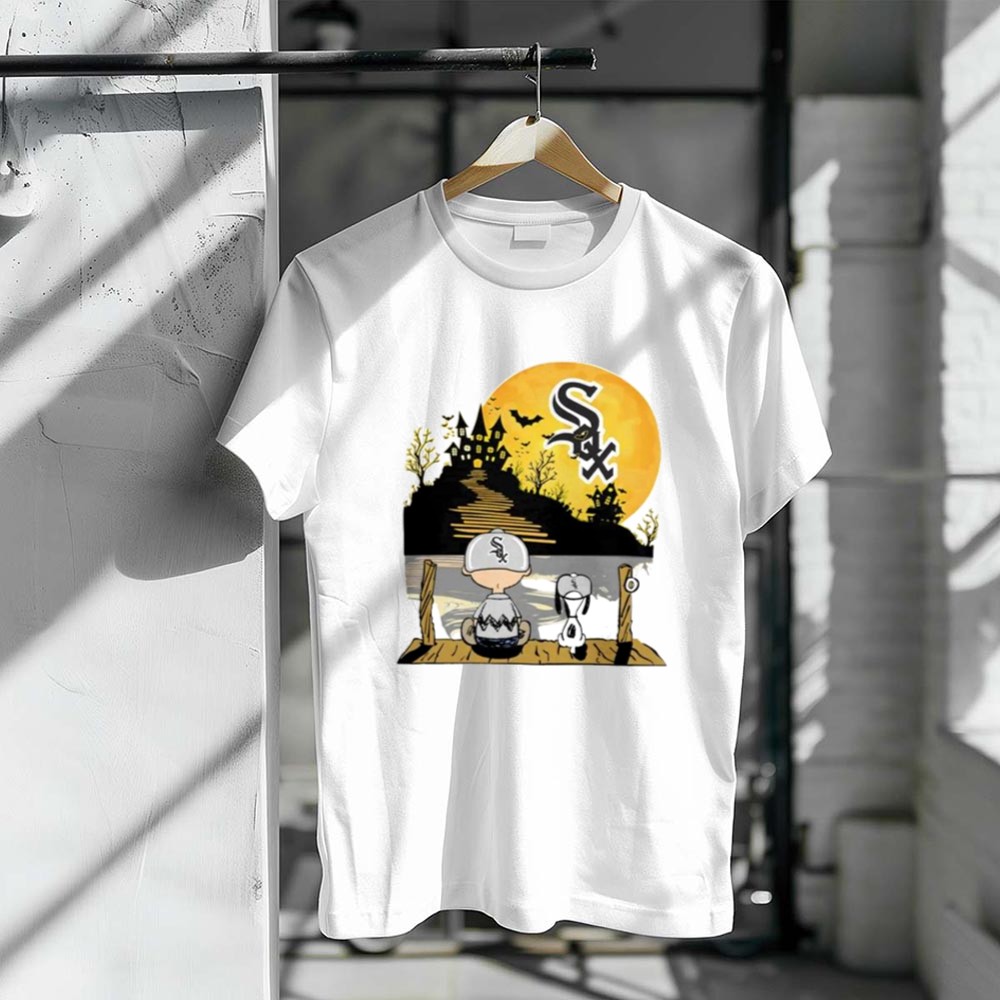 Chicago White Sox Snoopy X Charlie Brown Sit Under Moon Peanuts Halloween Shirt