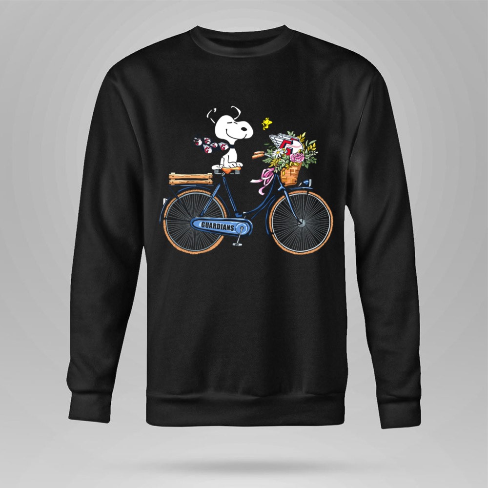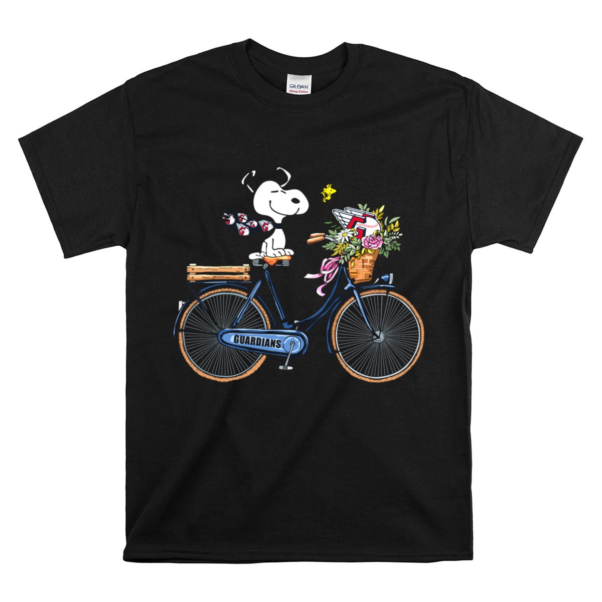 Cleveland Guardians Snoopy Riding Bicycle with Flowers and Baseball Bow Tie Shirt
