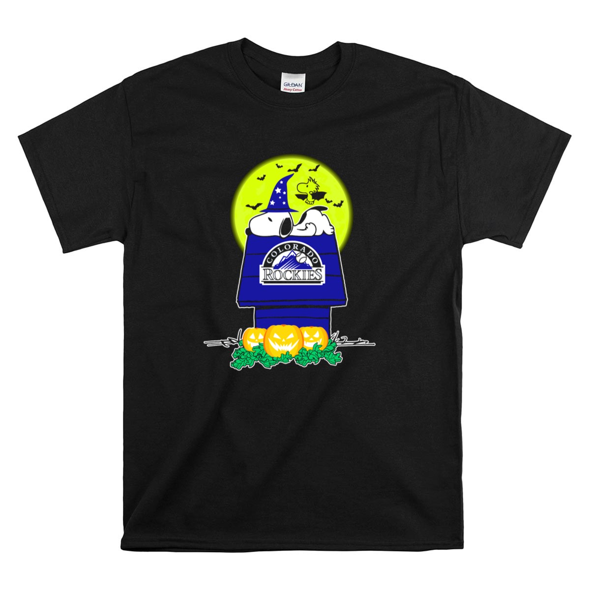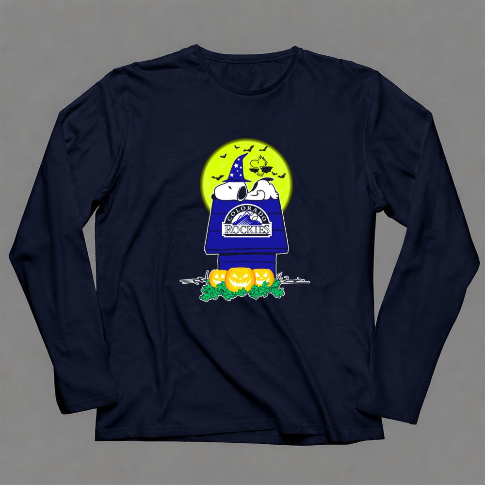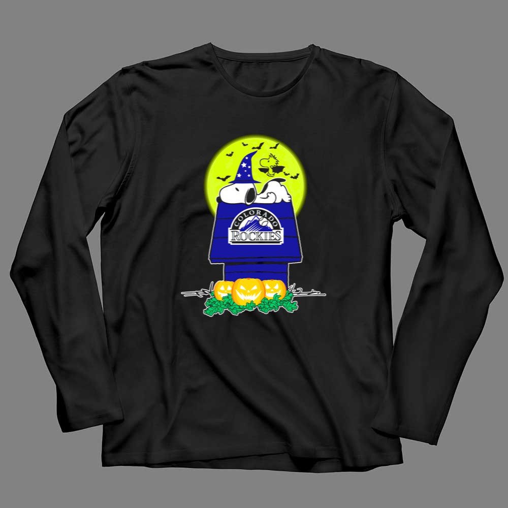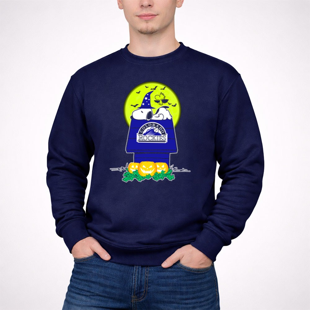 Colorado Rockies Snoopy Halloween Pumpkin Moon Woodstock Shirt