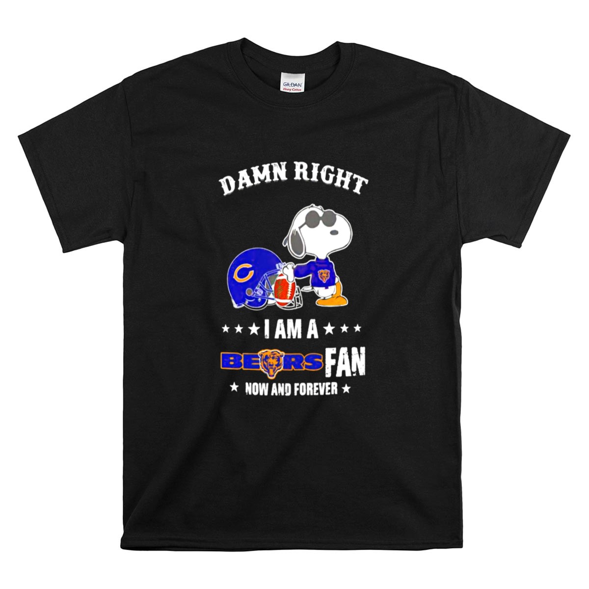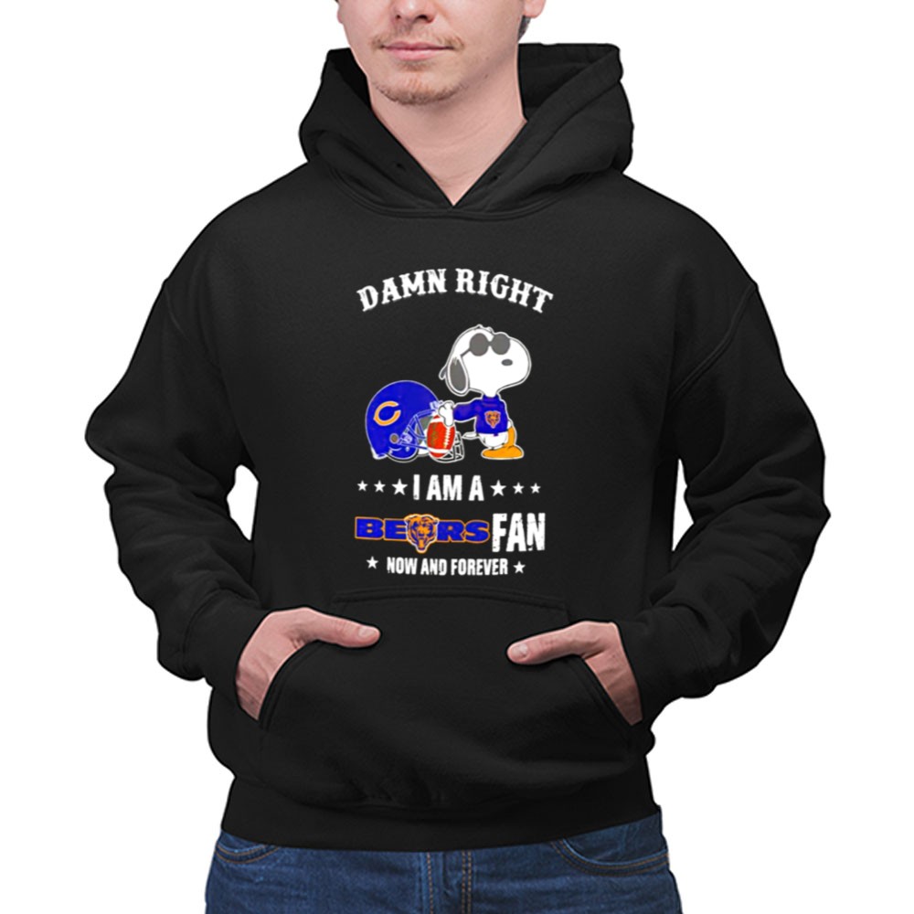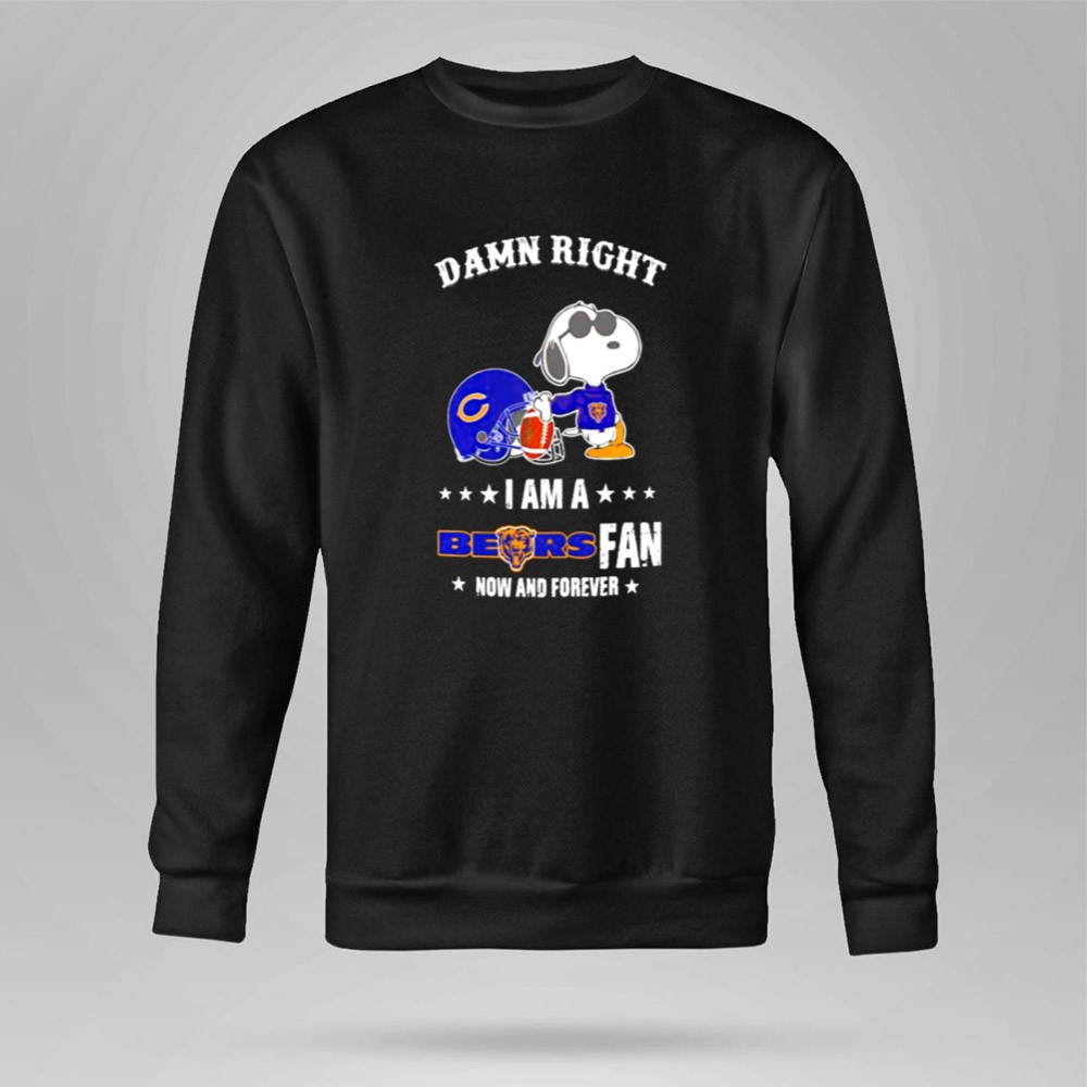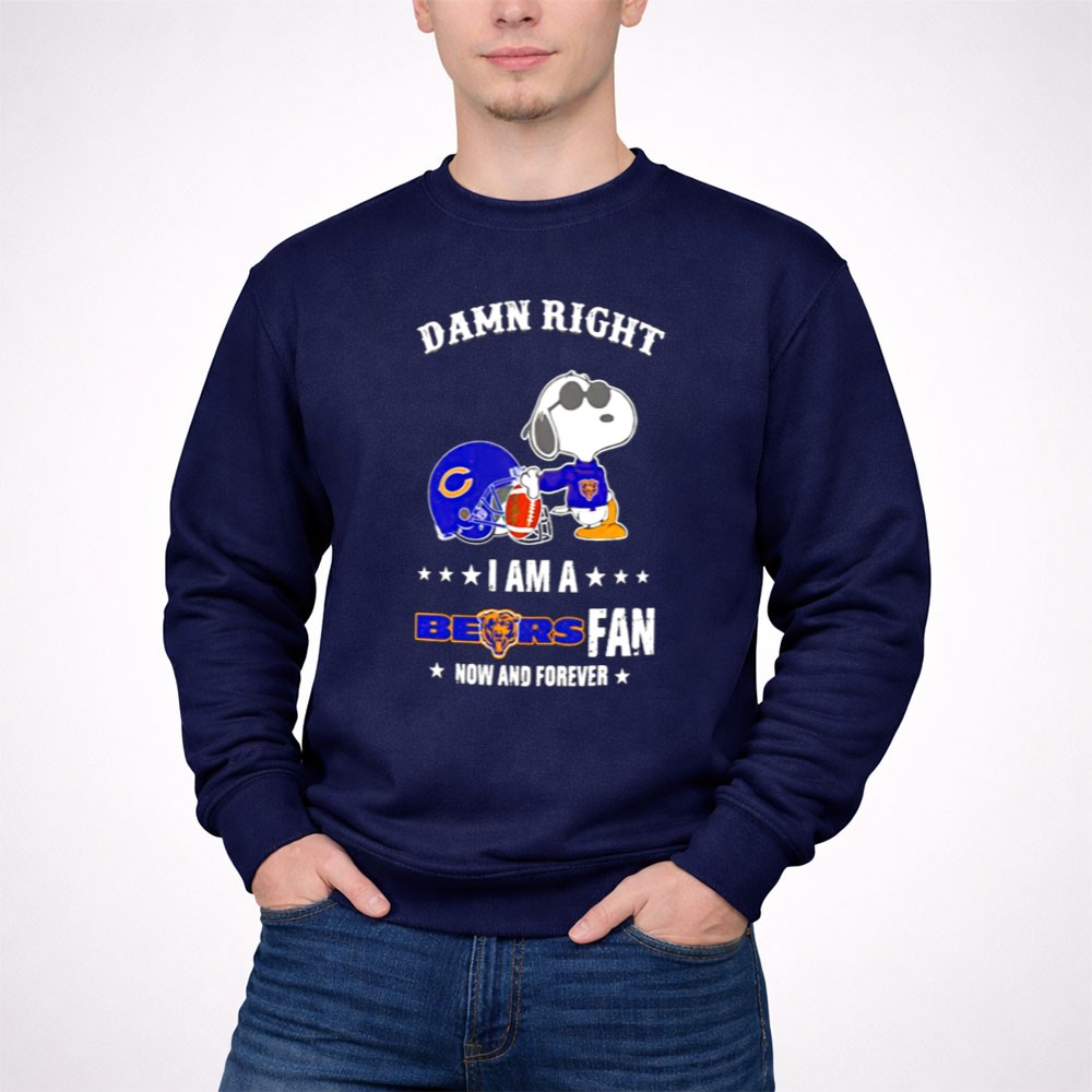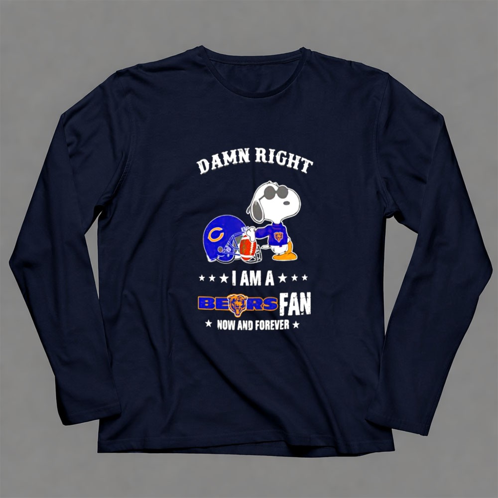 Damn Right I Am A Bears Fan Now And Forever Snoopy Chicago Bears Shirt