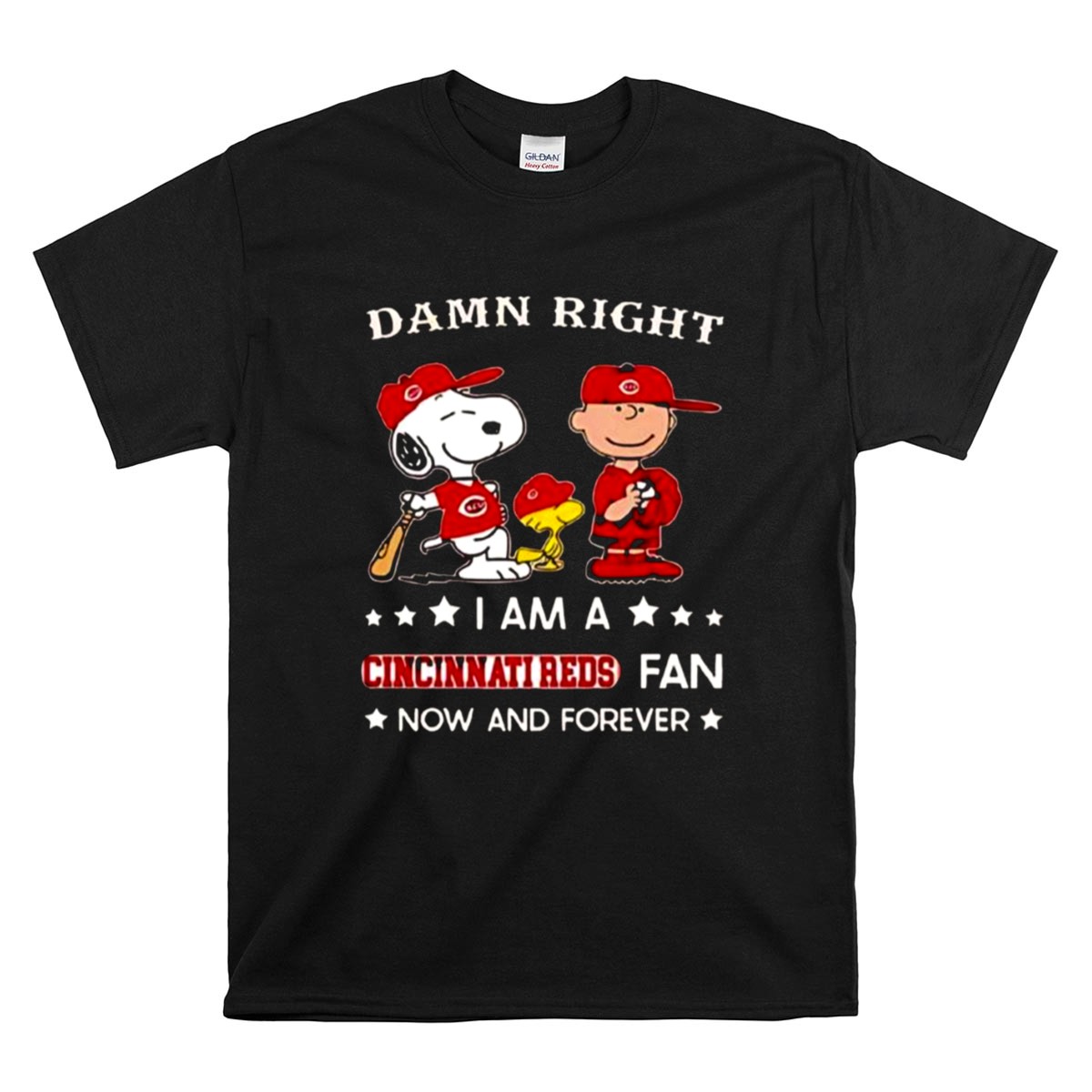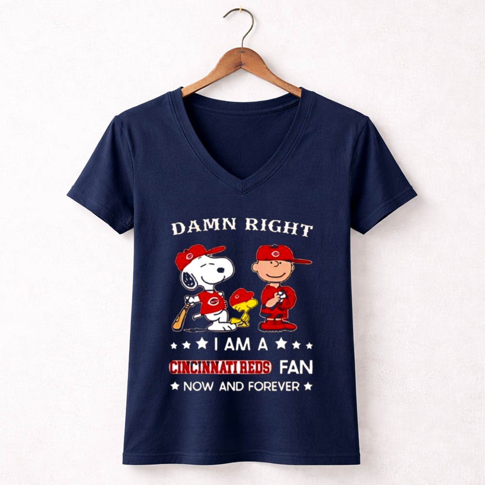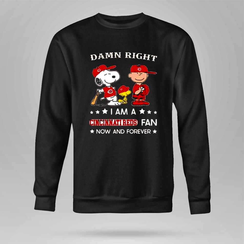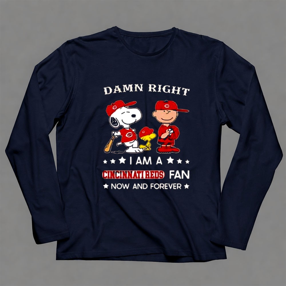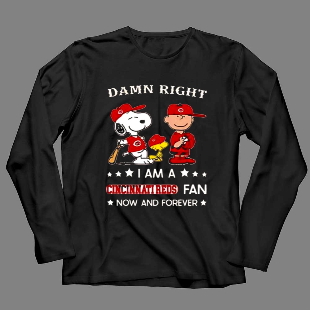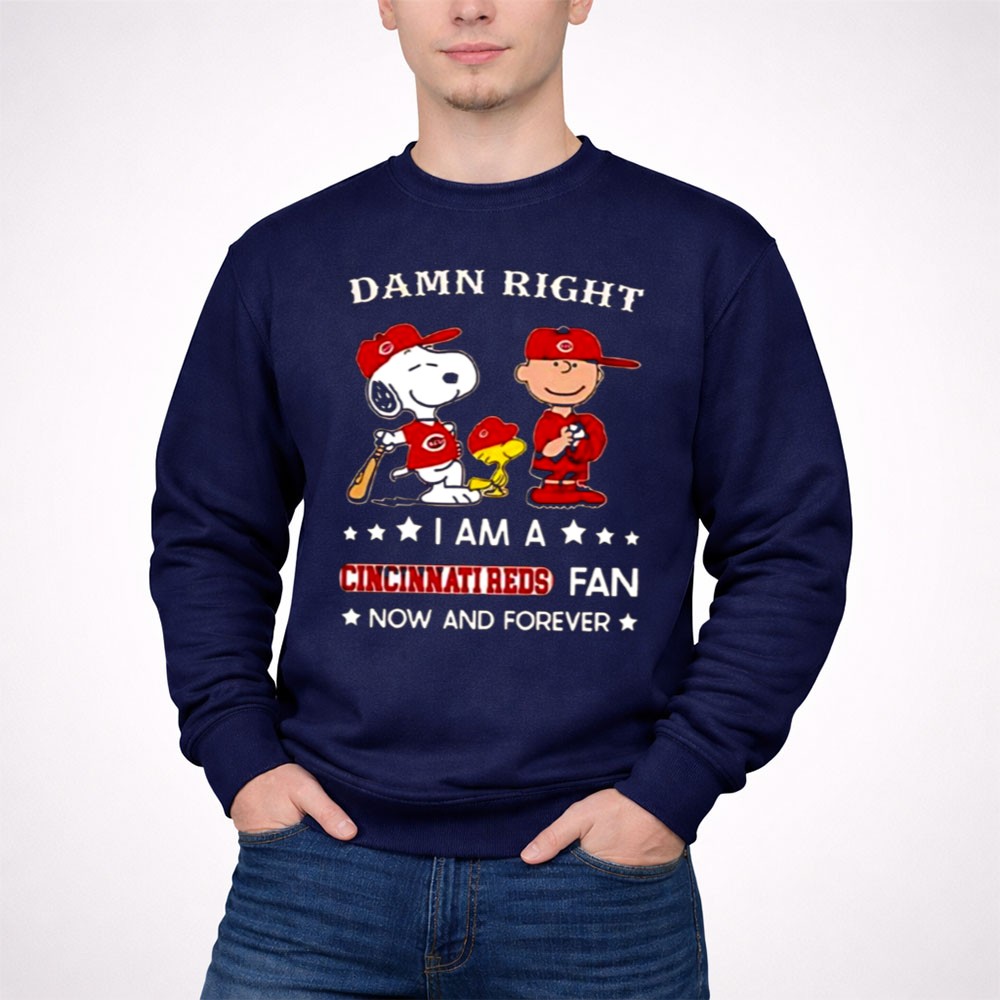 Damn Right I Am A Cincinnati Reds Fan Now And Forever Snoopy And Charlie Brown Shirt