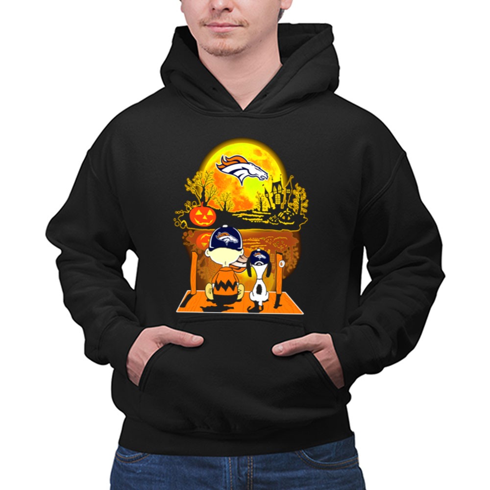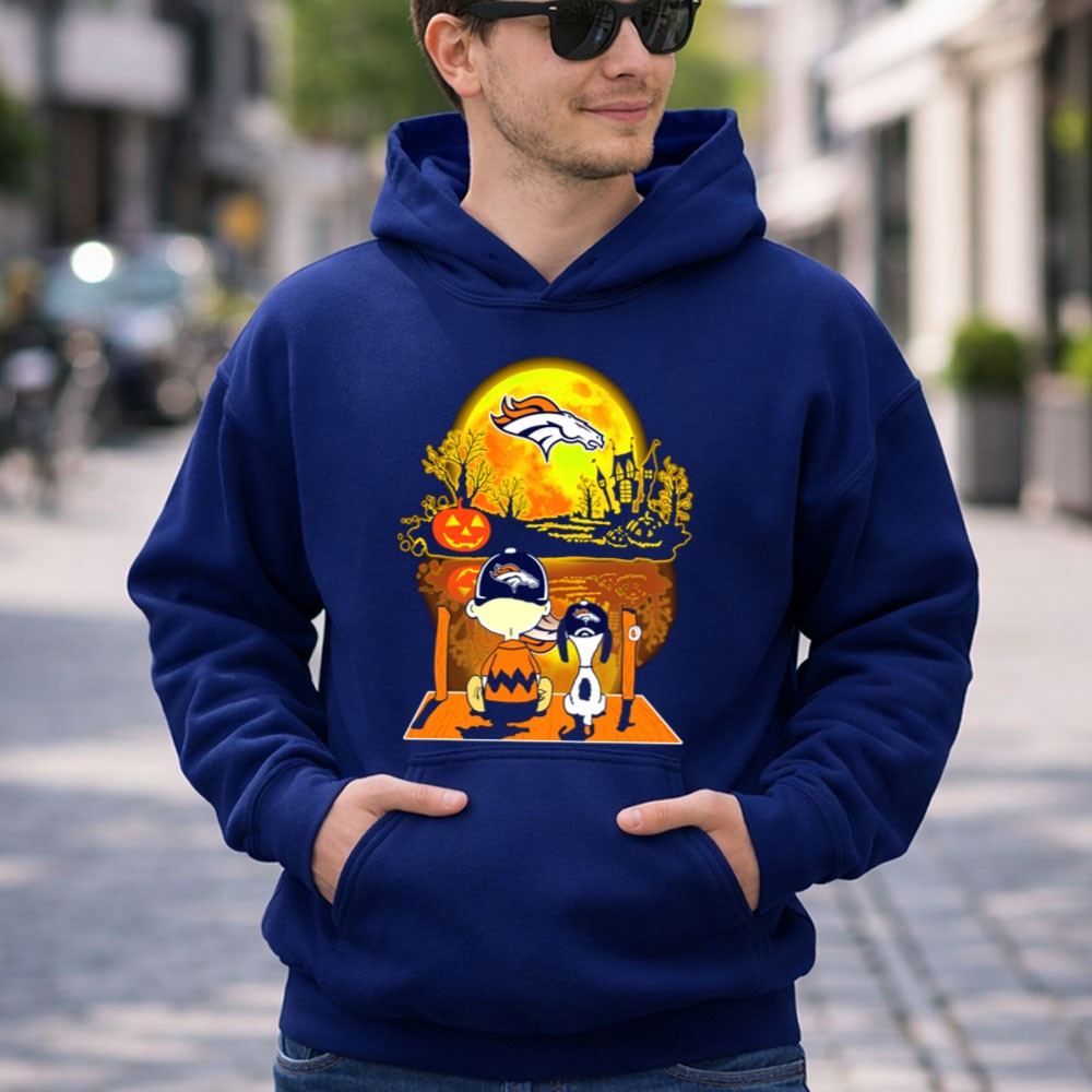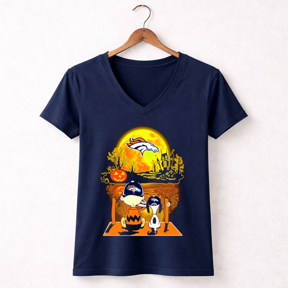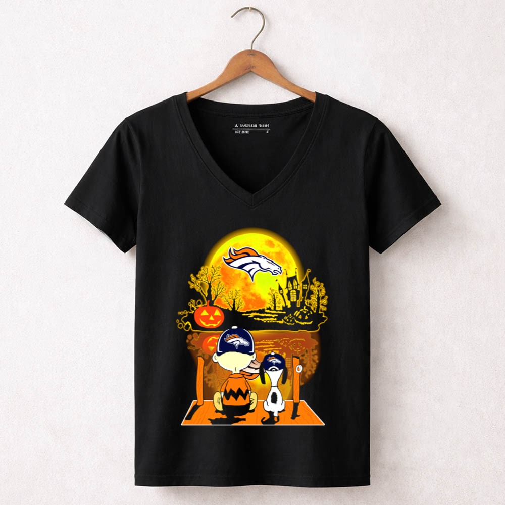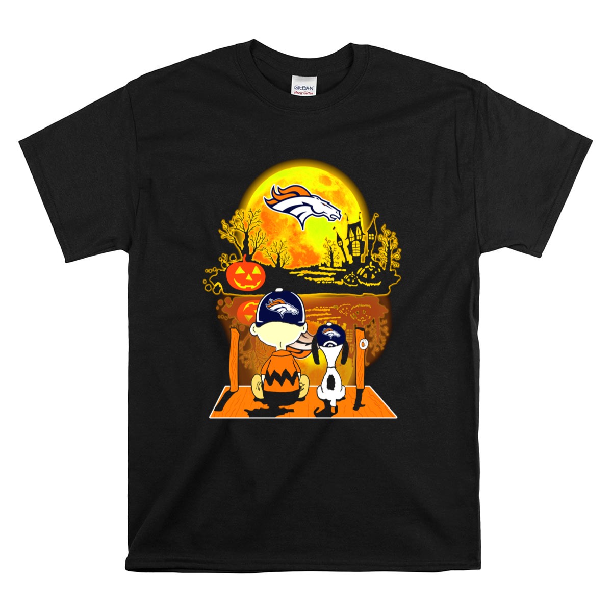 Denver Broncos Snoopy And Charlie Brown Halloween Pumpkin Moon Scene Shirt