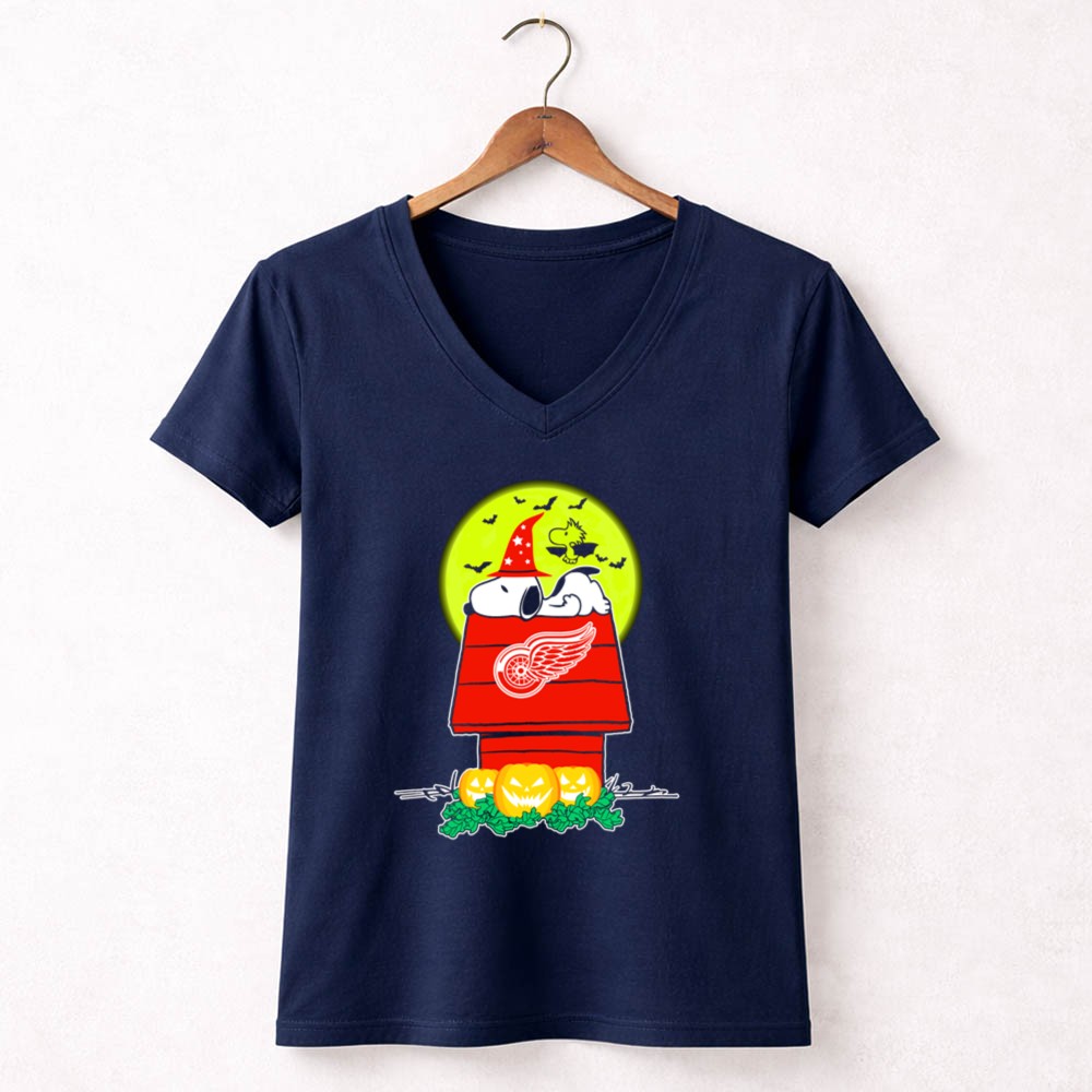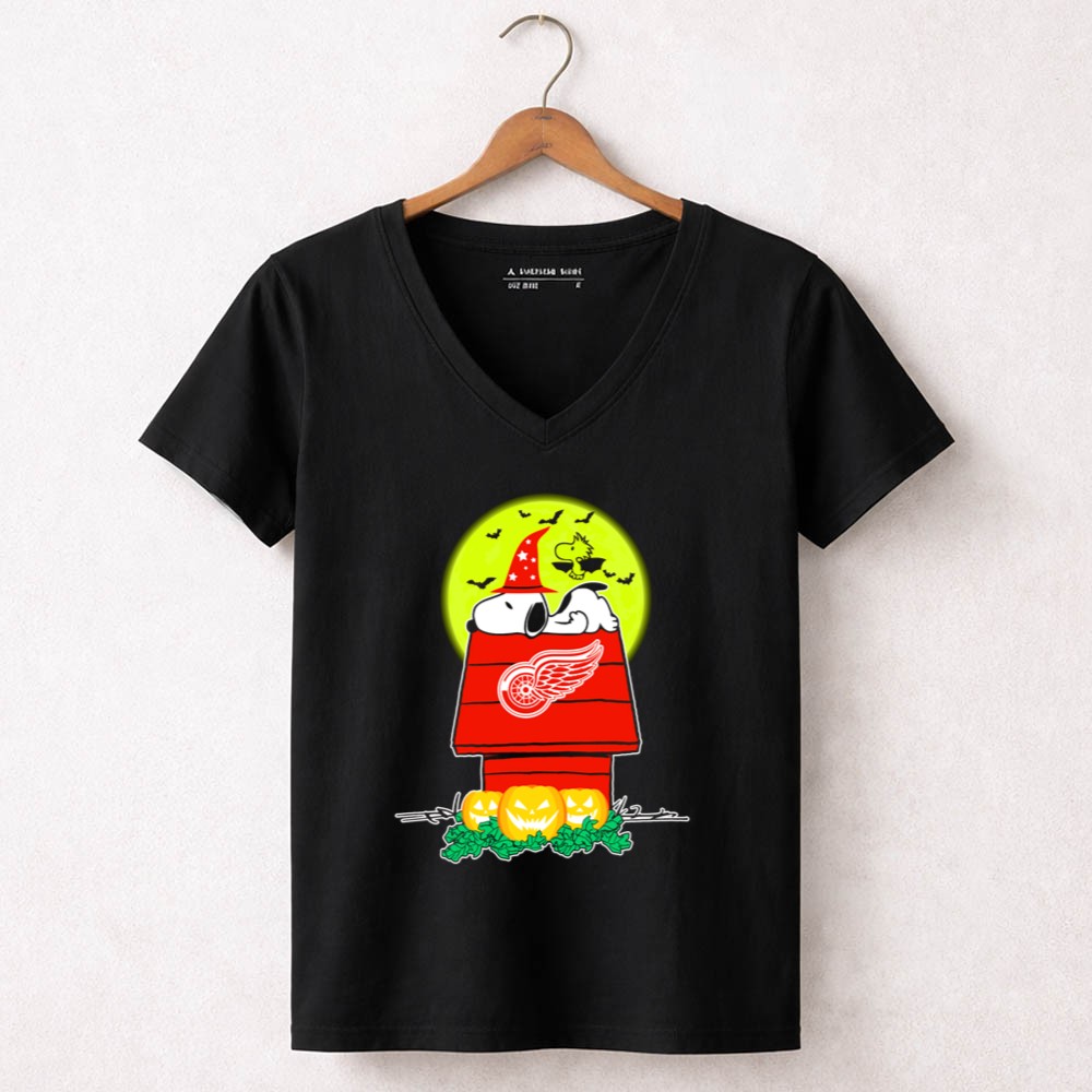 Detroit Red Wings Snoopy Halloween Moon Pumpkins Bats House Shirt