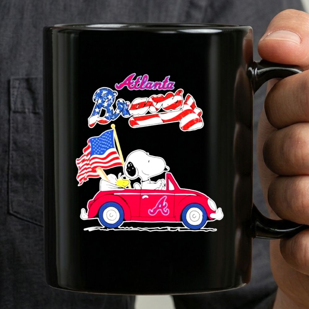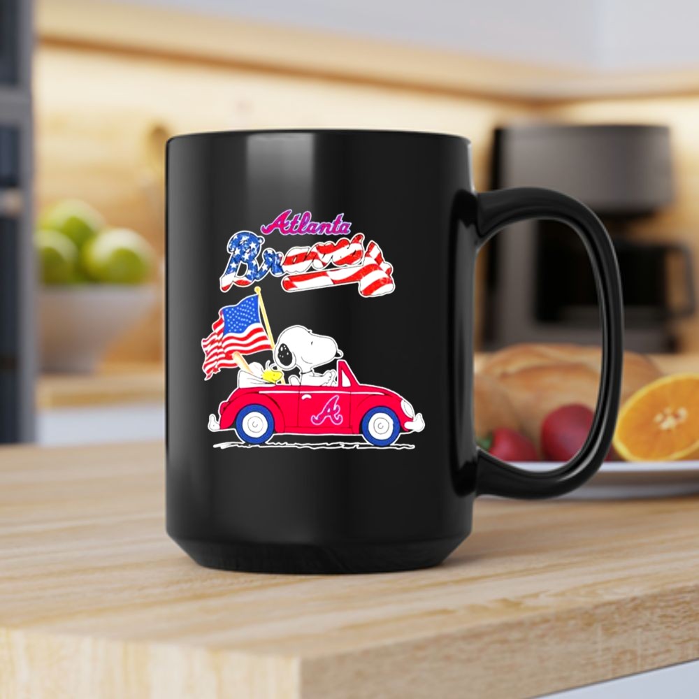 Peanuts Snoopy And Woodstock On Car Atlanta Braves 4th Of July Mug