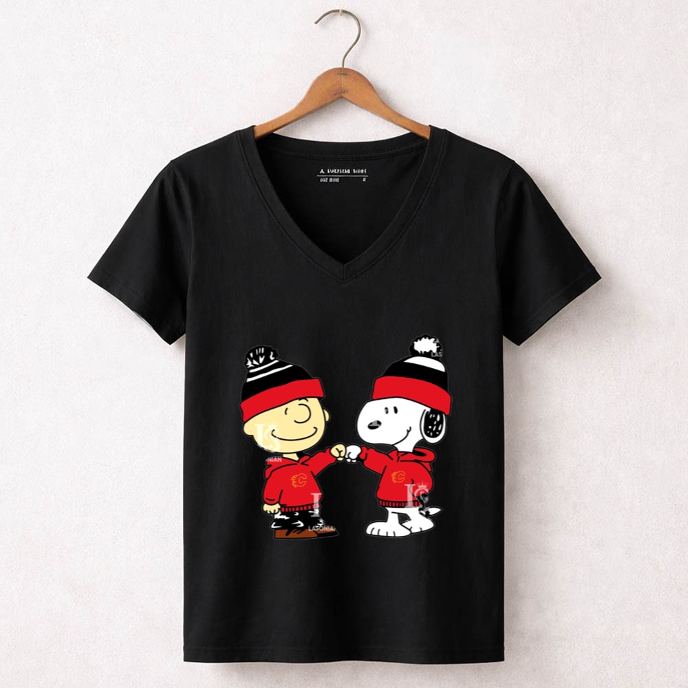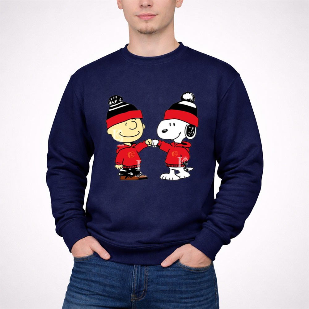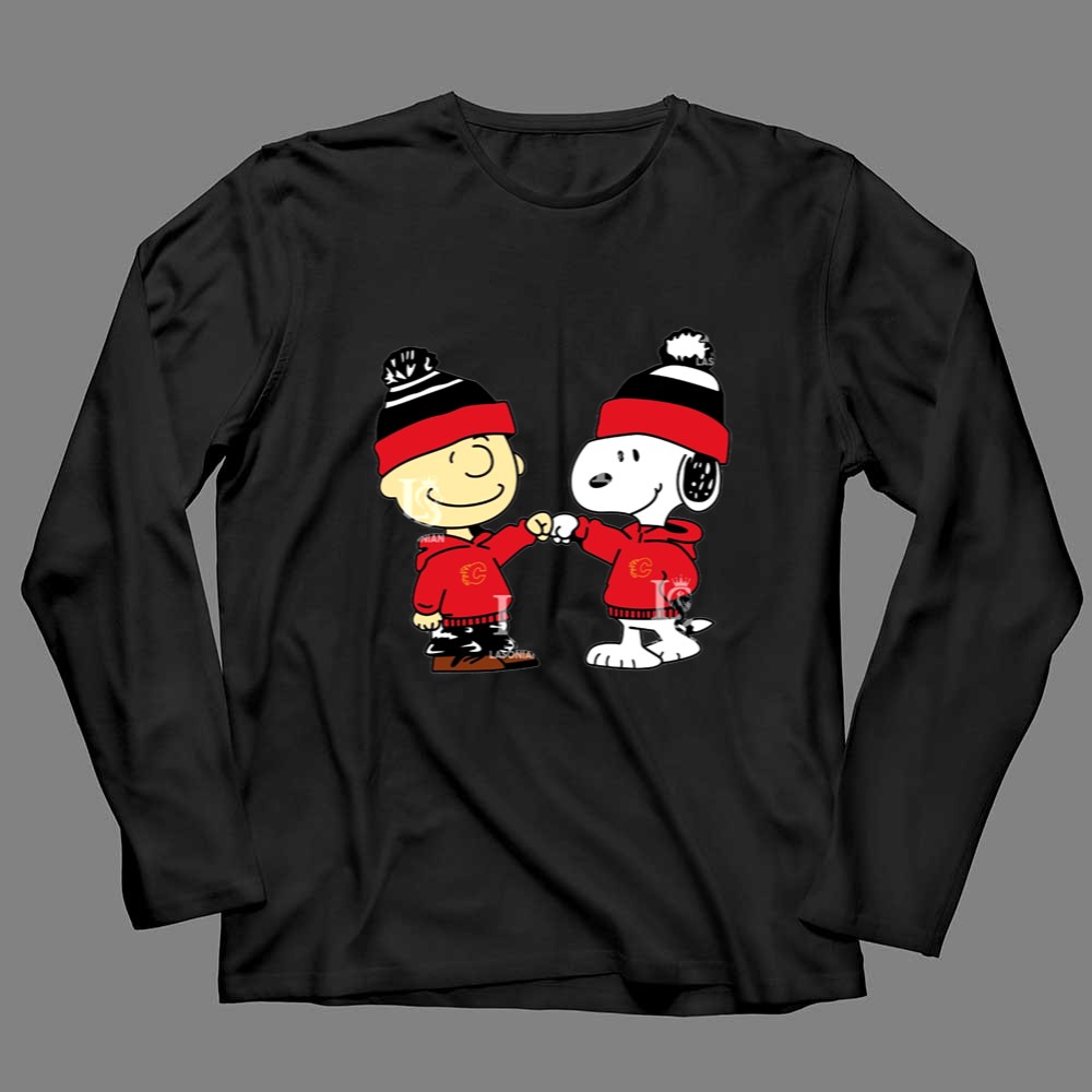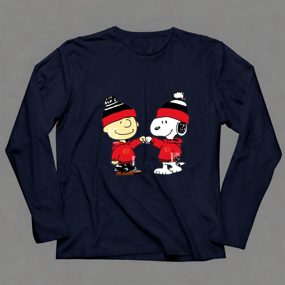 Fist Bump Charlie Brown and Snoopy Wear Clothing Calgary Flames Shirt