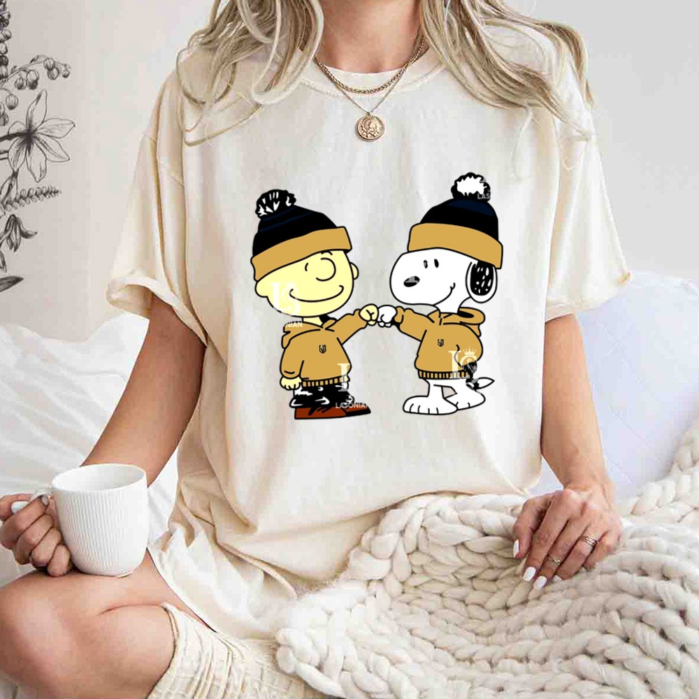 Fist Bump Charlie Brown and Snoopy Wear Clothing Vegas Golden Knights Shirt