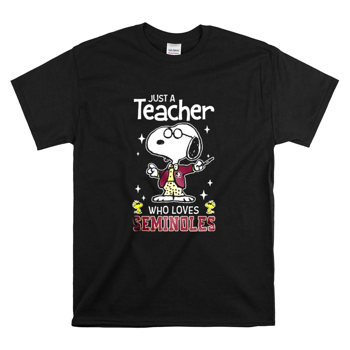 Florida State Seminoles, FSU, Snoopy teacher design, Peanuts characters, college pride apparel, educational gifts, game day shirt, premium cotton blend