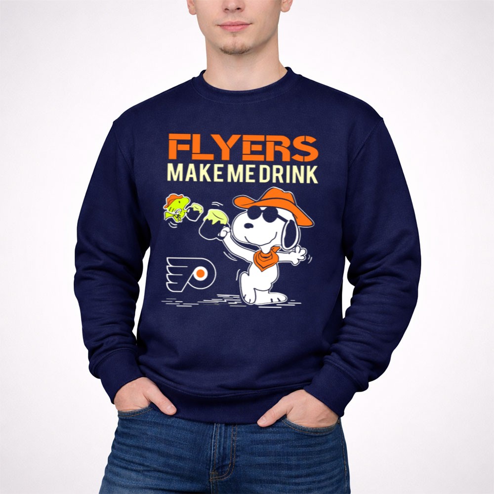 Flyers Make Me Drink Snoopy Philadelphia Fans Peanuts Character With Flyers Shirt