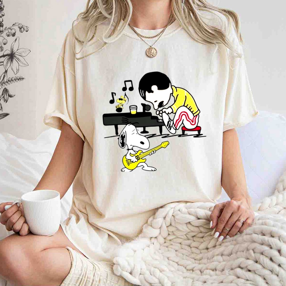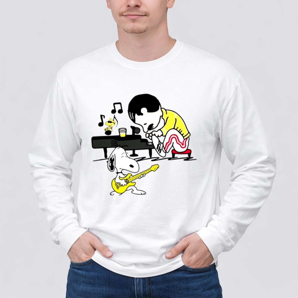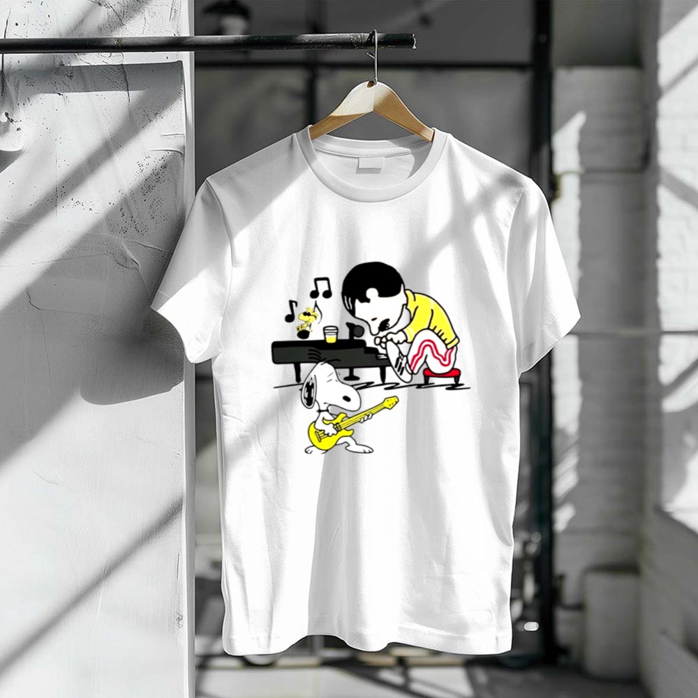 Freddie Mercury Playing Piano With Snoopy Guitar Shirt