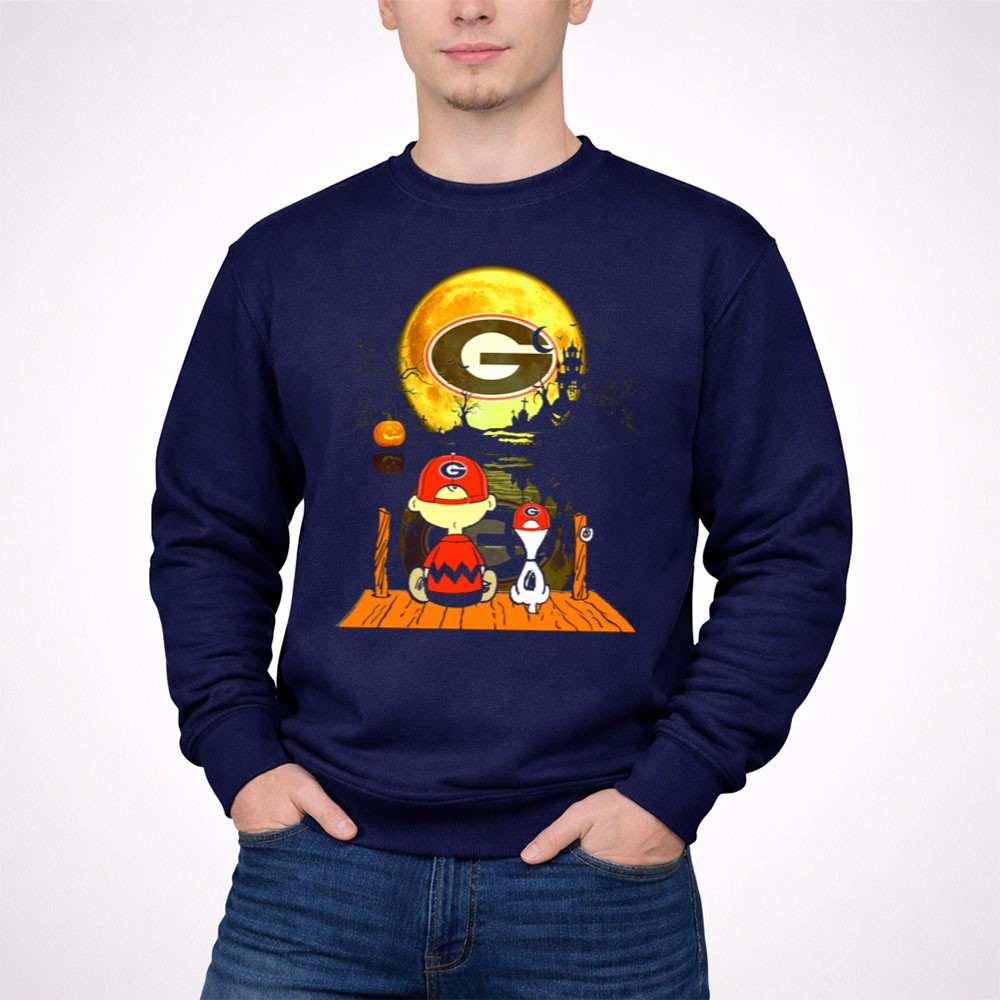 Georgia Bulldogs Halloween Moonlit Dock Scene Charlie Brown and Snoopy Reflections Shirt