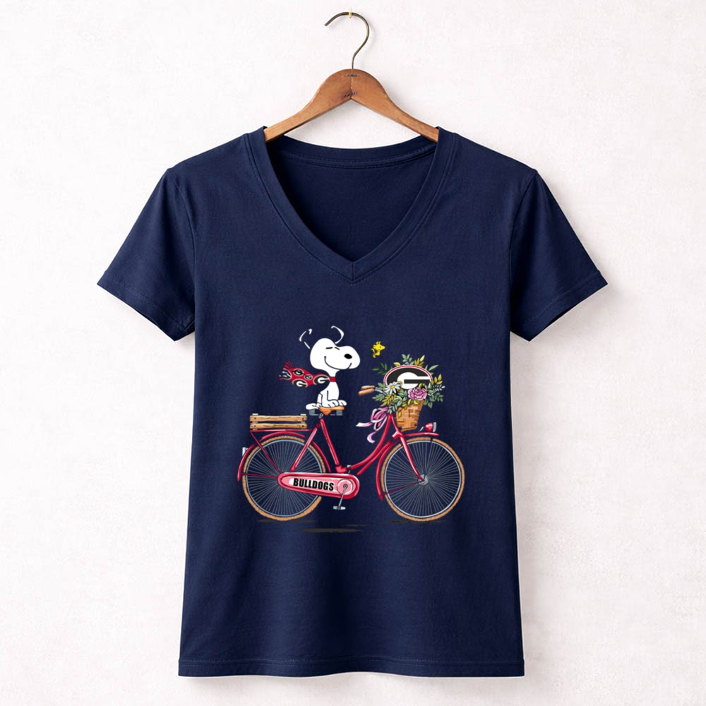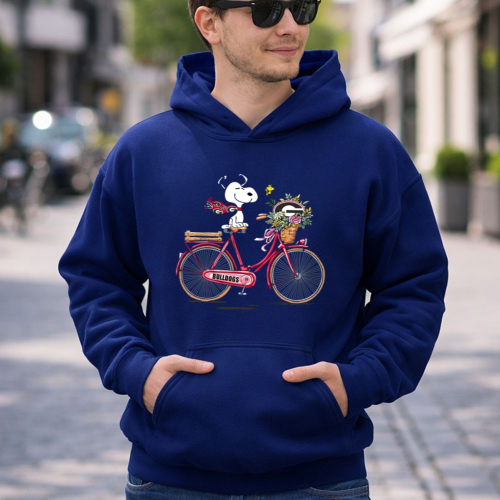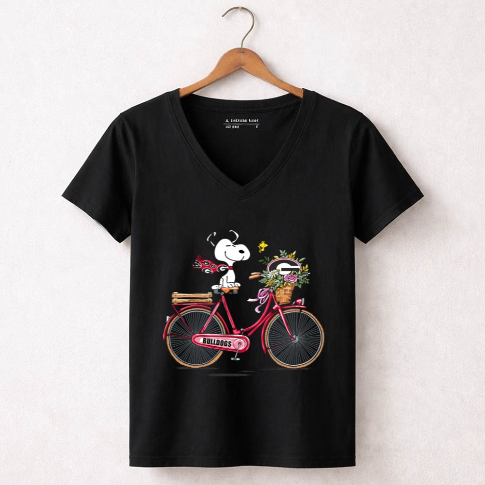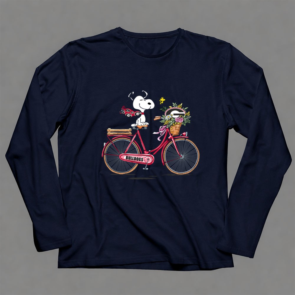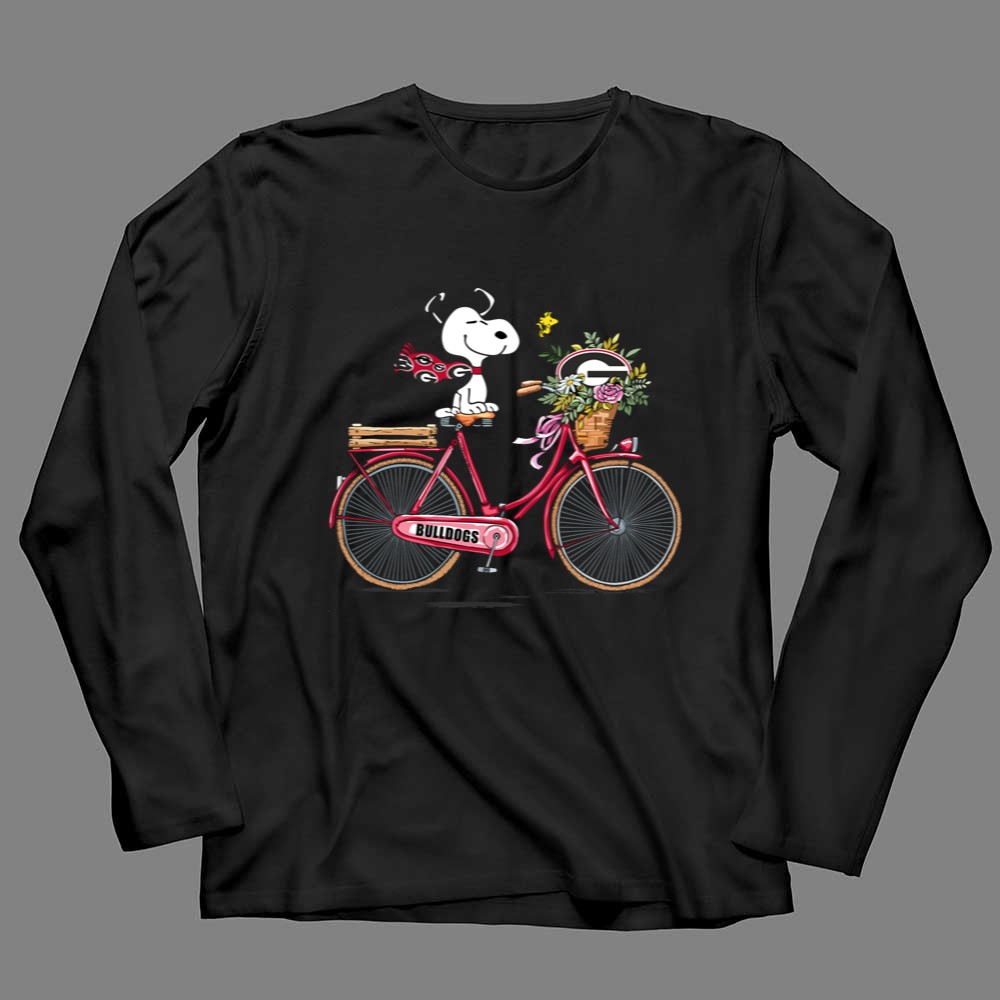 Georgia Bulldogs Snoopy Riding Bike with Flowers Shirt
