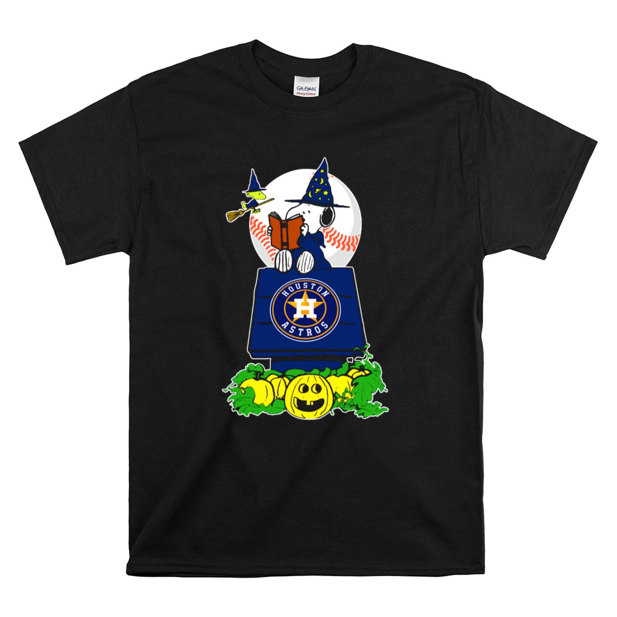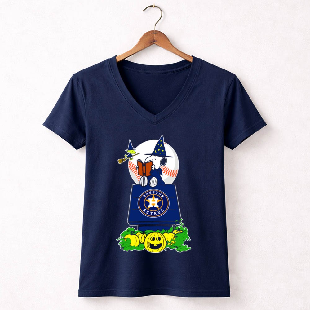 Houston Astros Halloween Snoopy And Woodstock Wizards Jack O Lantern Moon Baseball Shirt