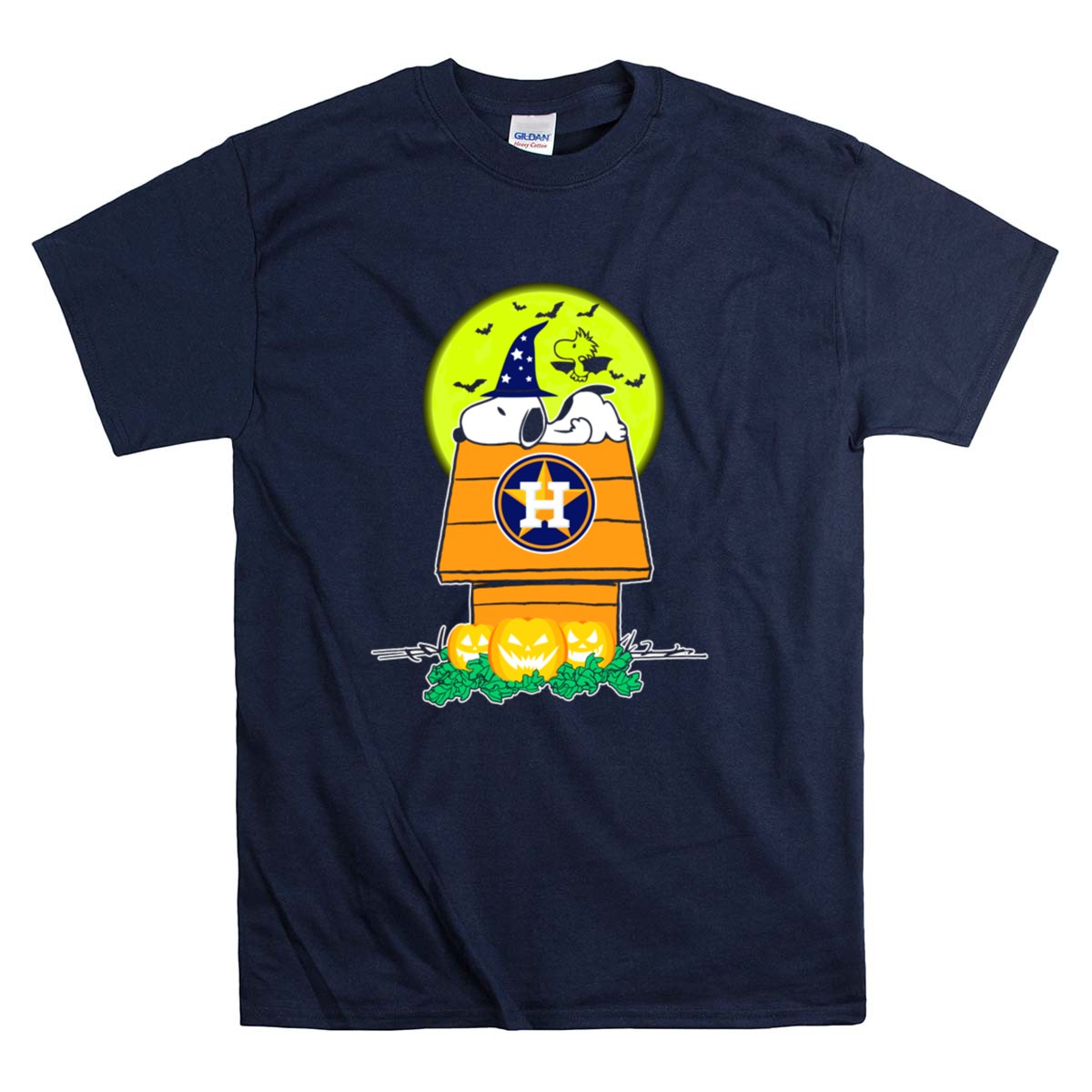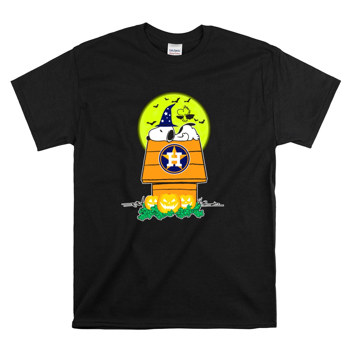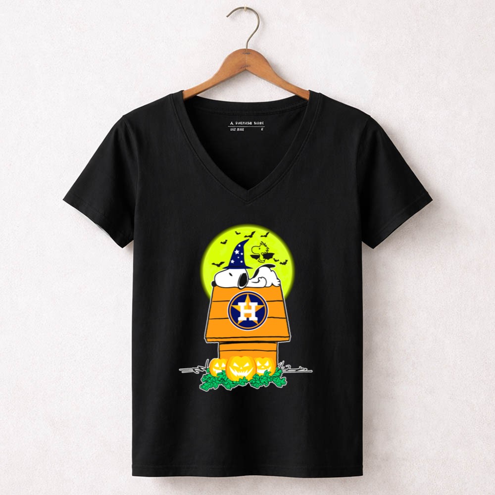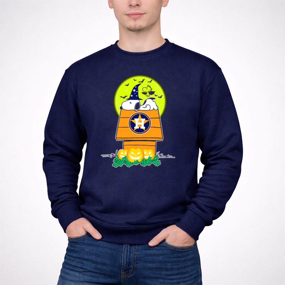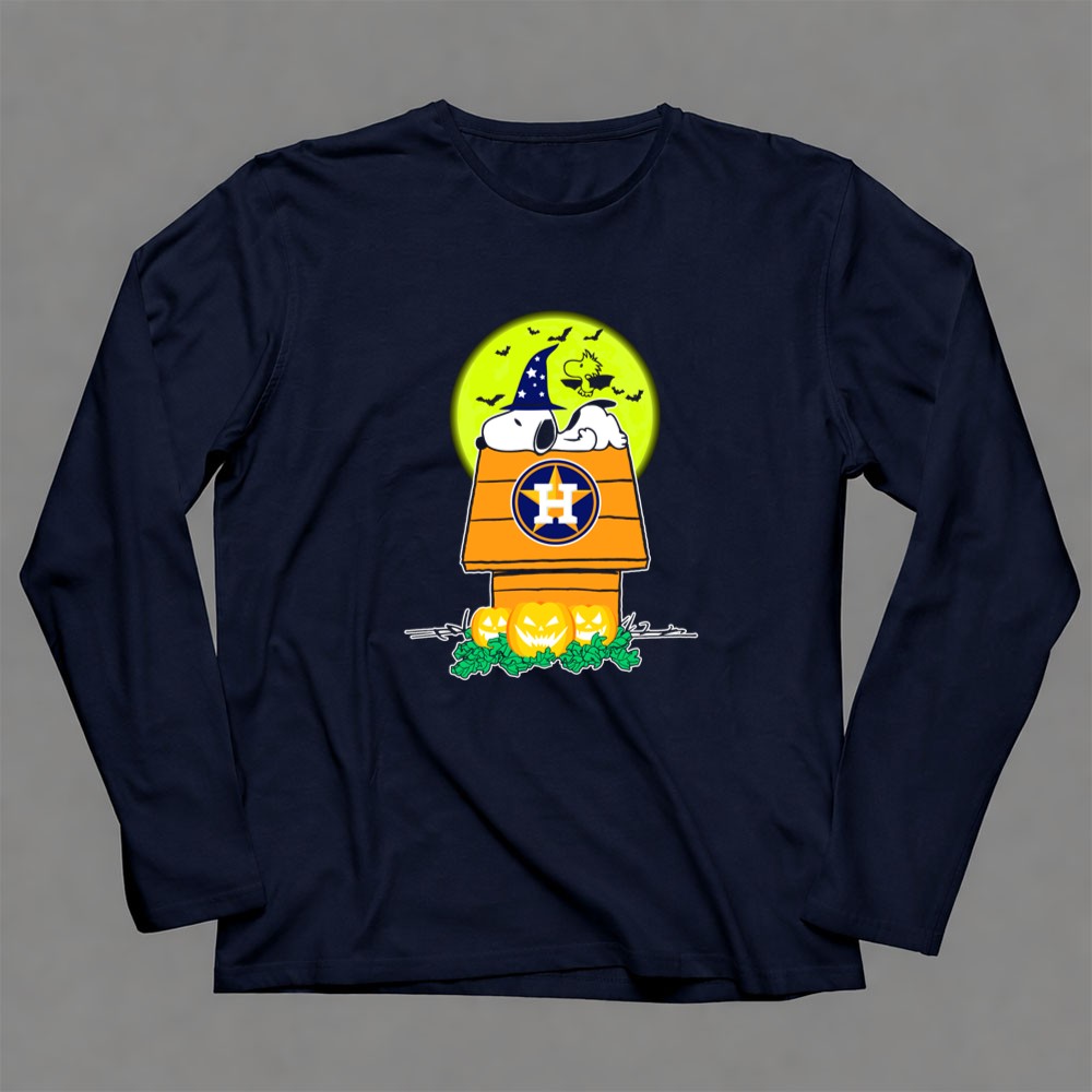 Houston Astros Snoopy Halloween Peanuts Baseball Spooky Pumpkins Moon Shirt
