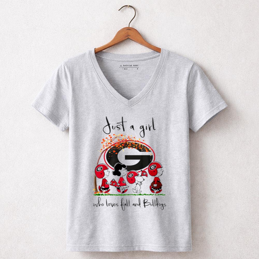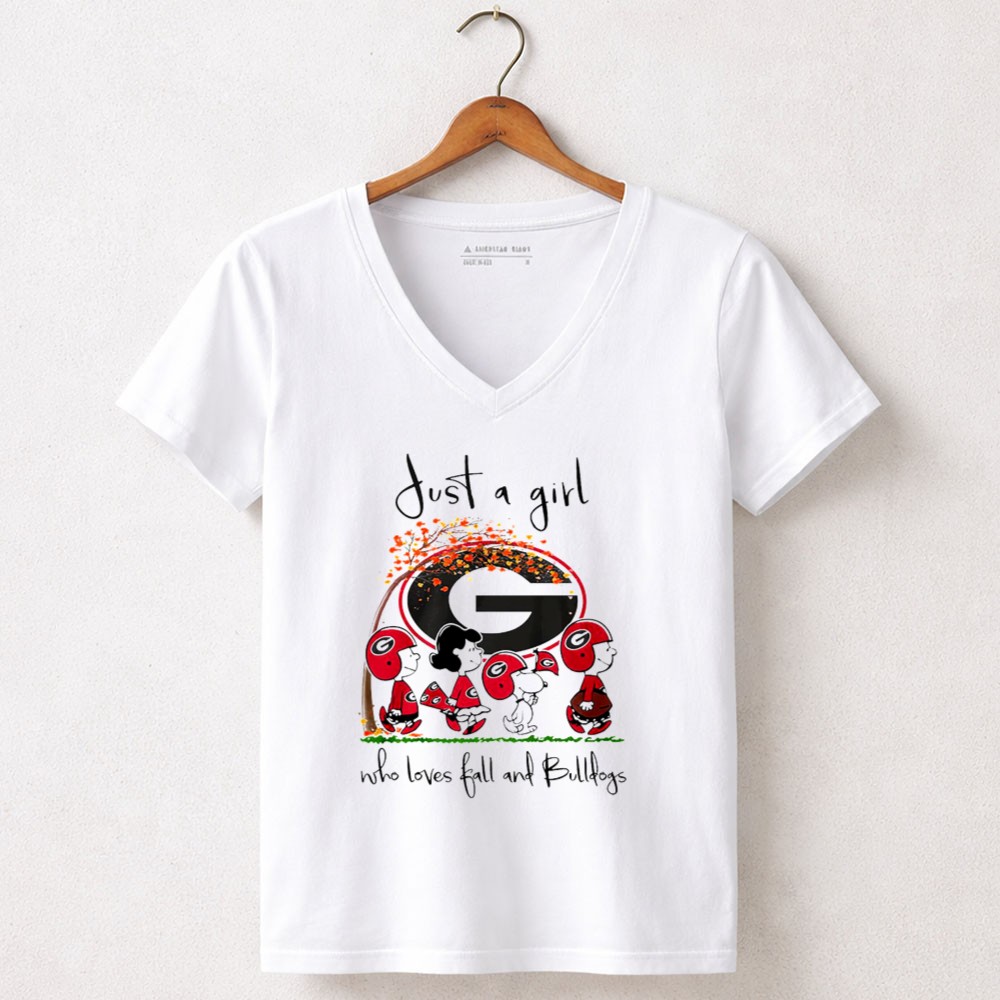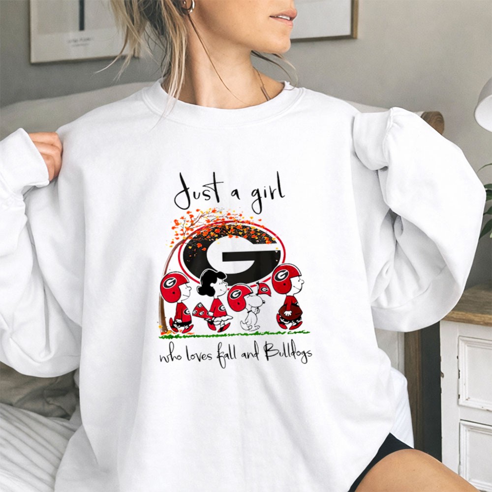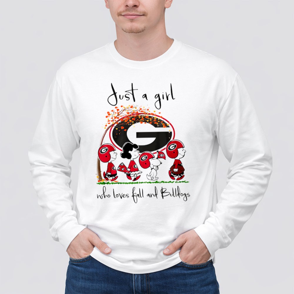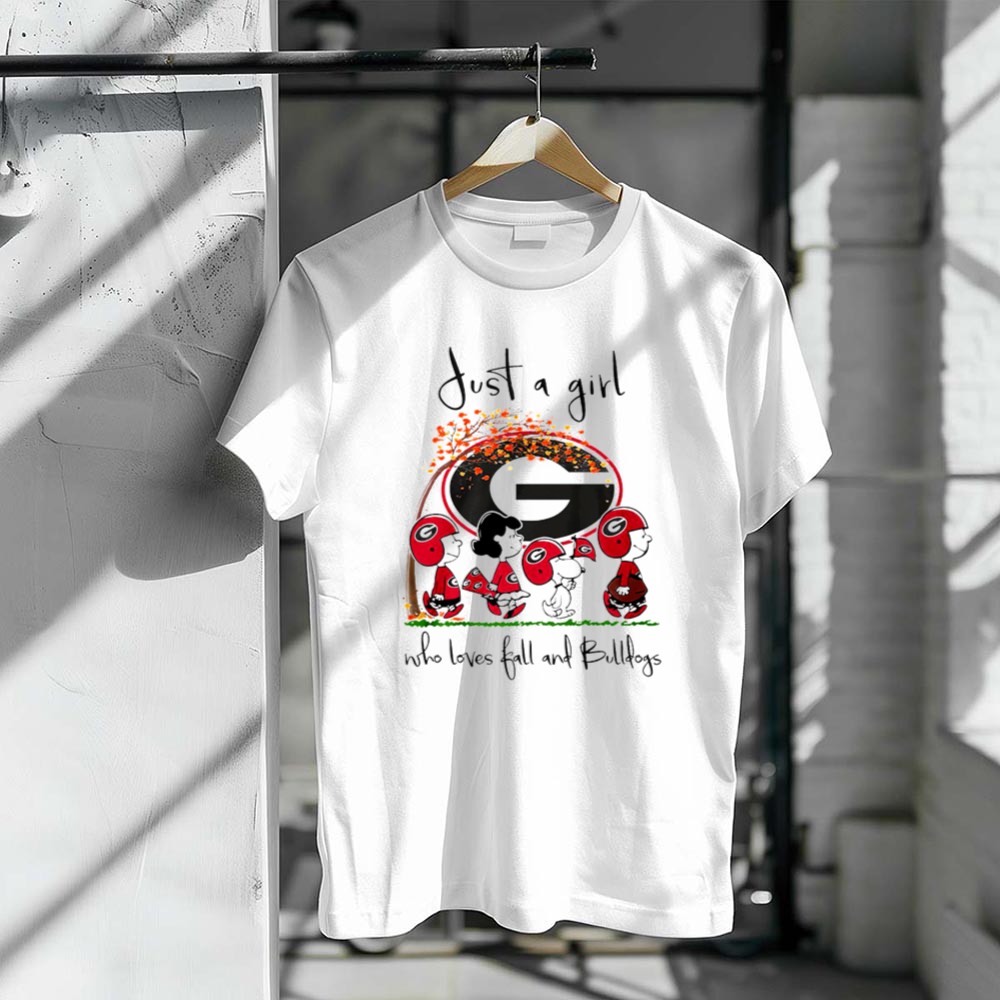 Just a Girl Who Loves Fall and Bulldogs Georgia Snoopy Football Shirt
