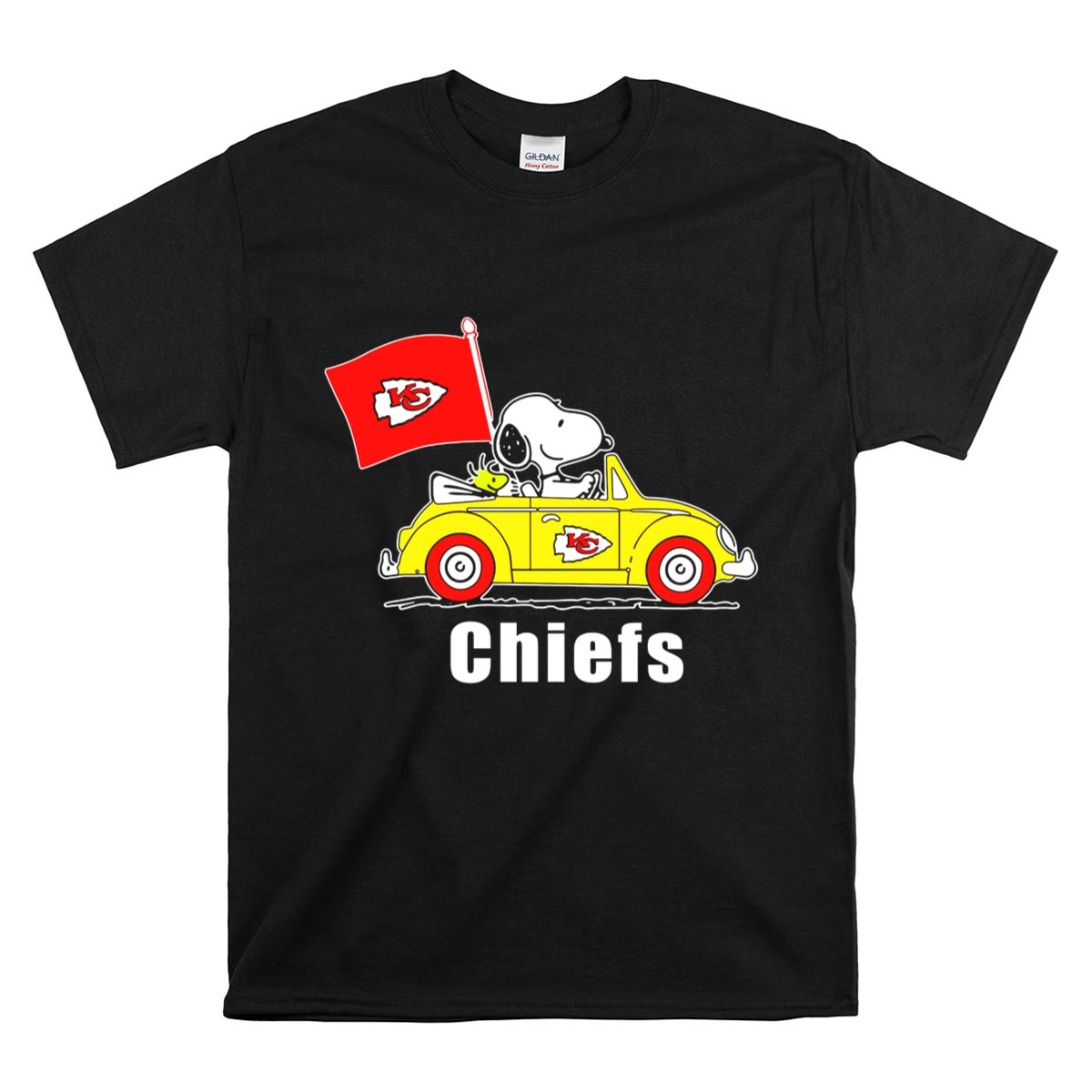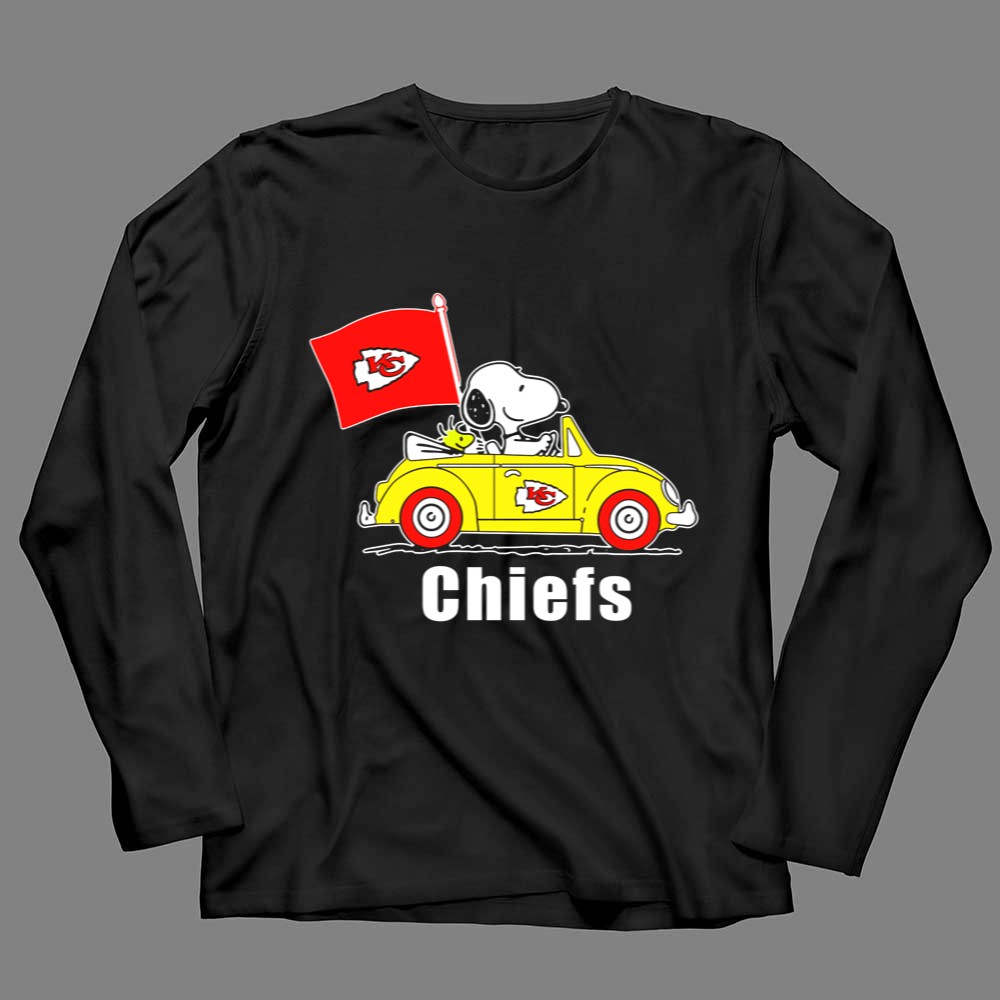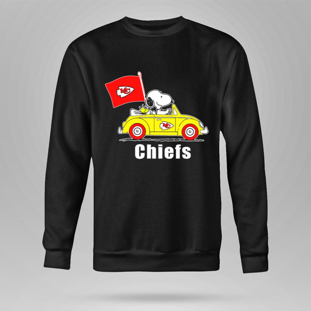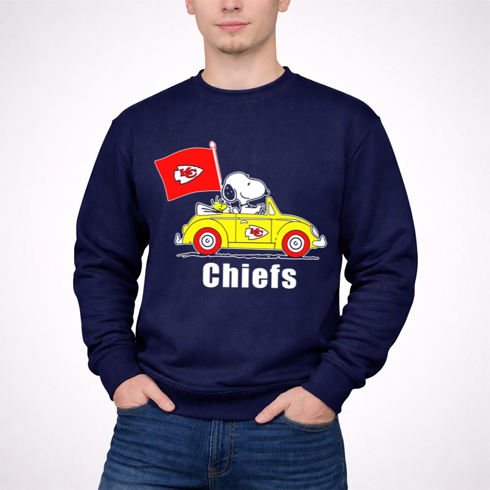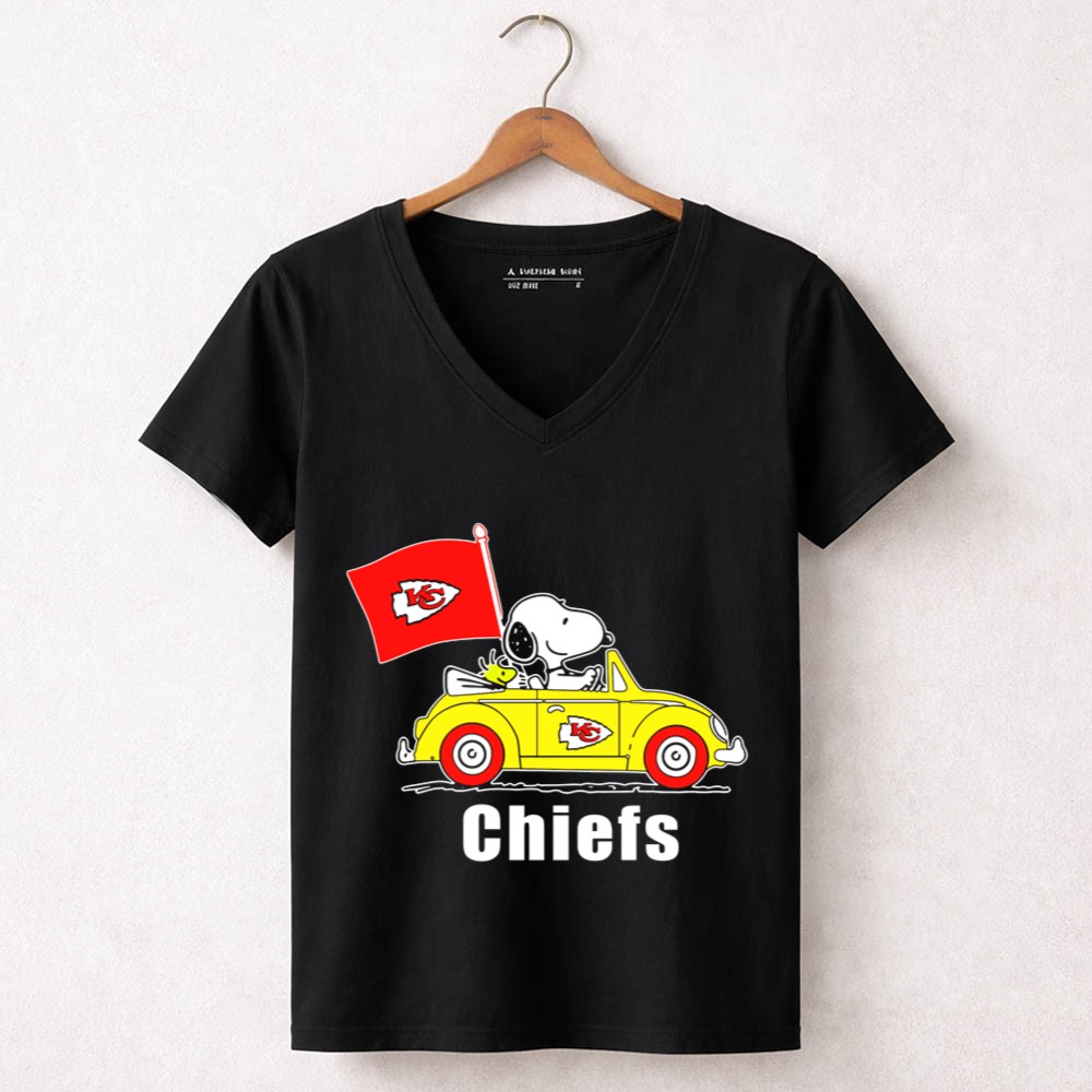 Kansas City Chiefs Snoopy Riding With Woodstock In Yellow Car Shirt