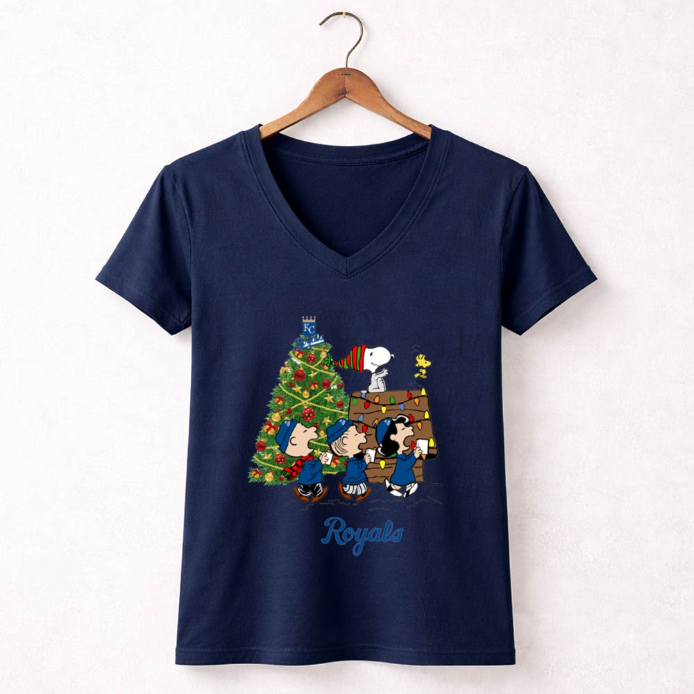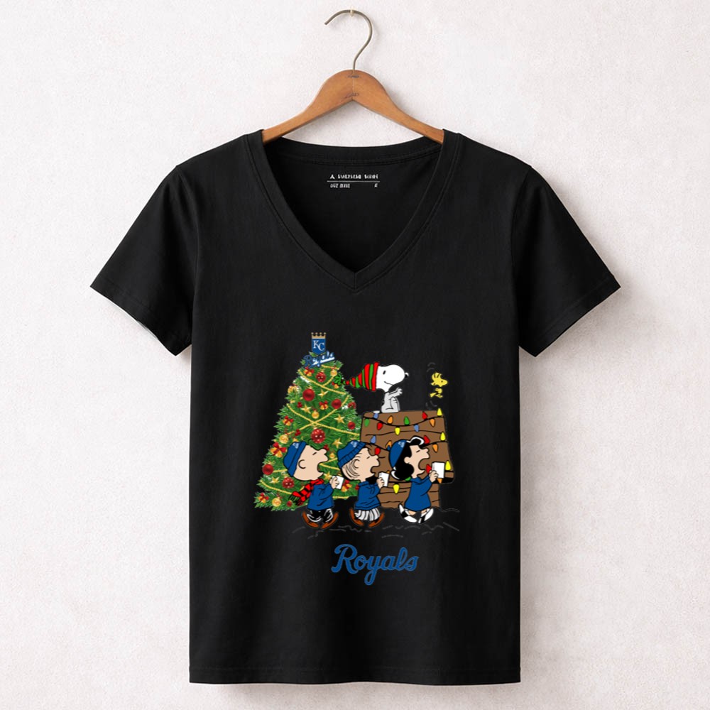 Kansas City Royals Merry Christmas Tree With Snoopy And Peanuts Characters Shirt