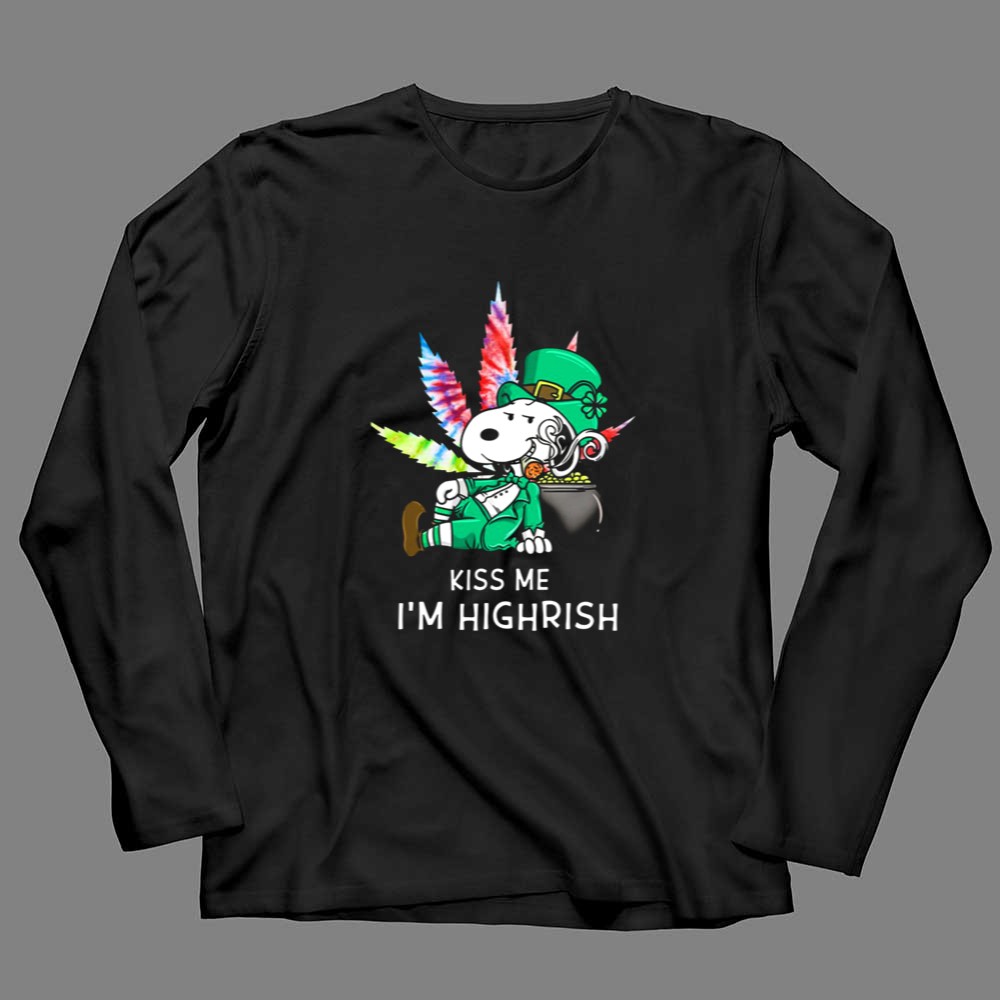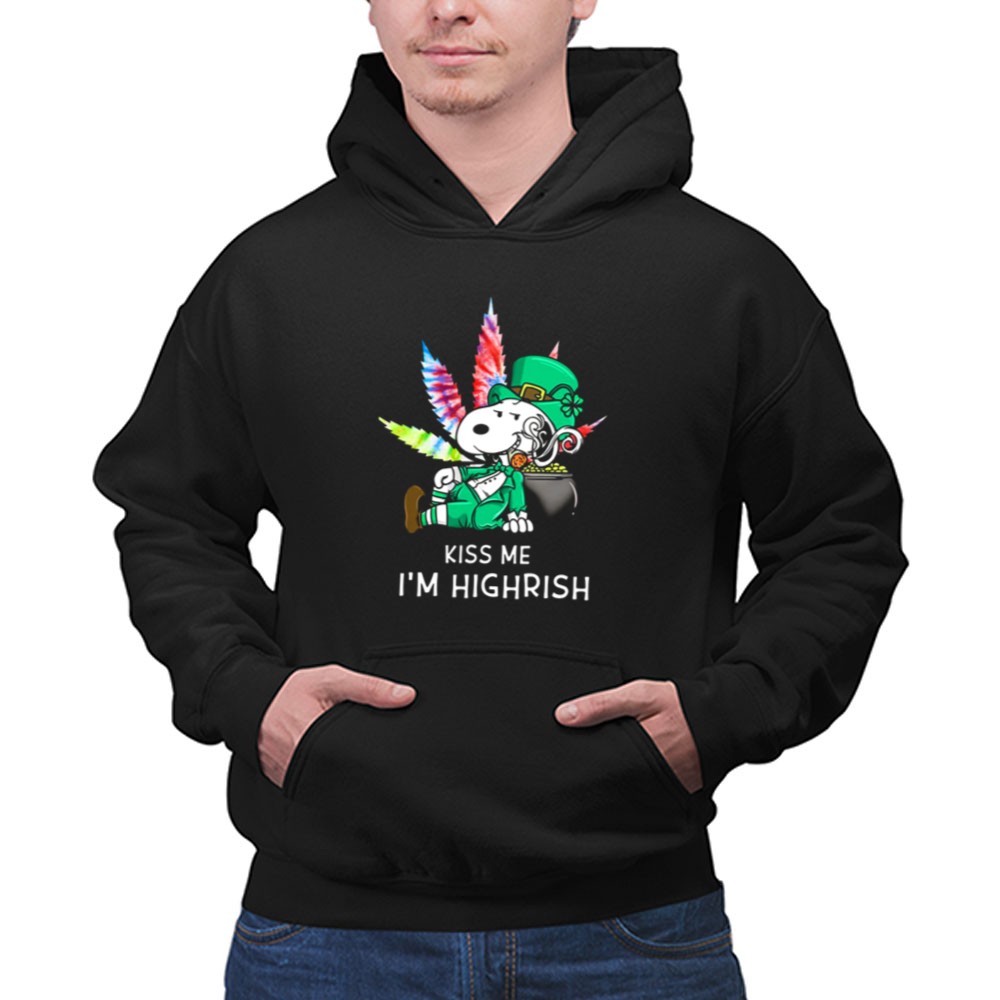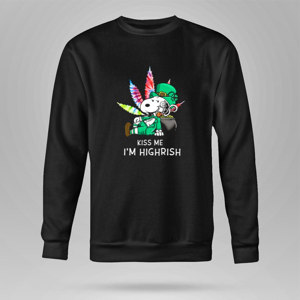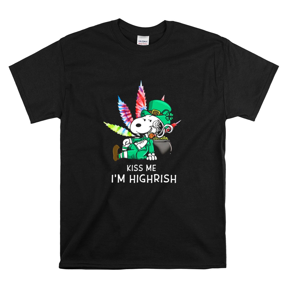 Kiss Me I’m Highrish Snoopy With Leprechaun Hat And Cannabis Leaves Shirt