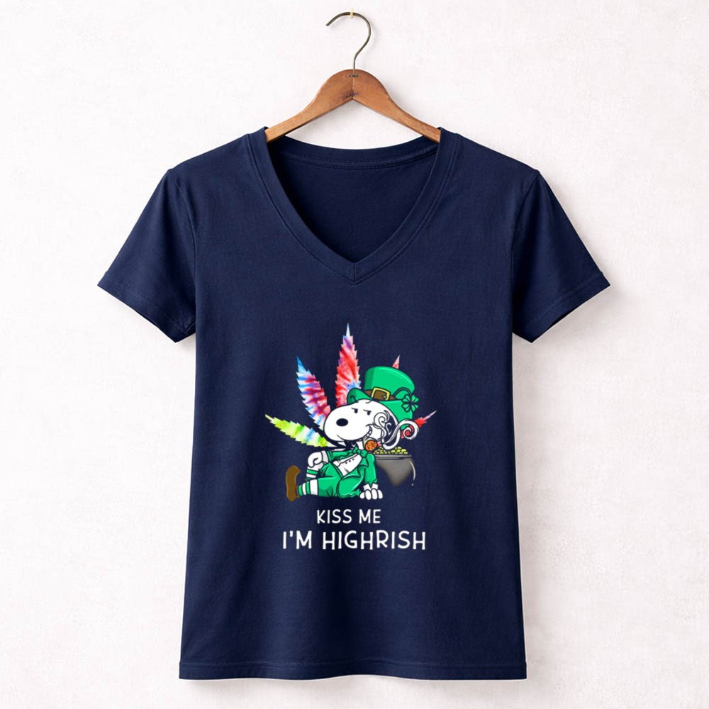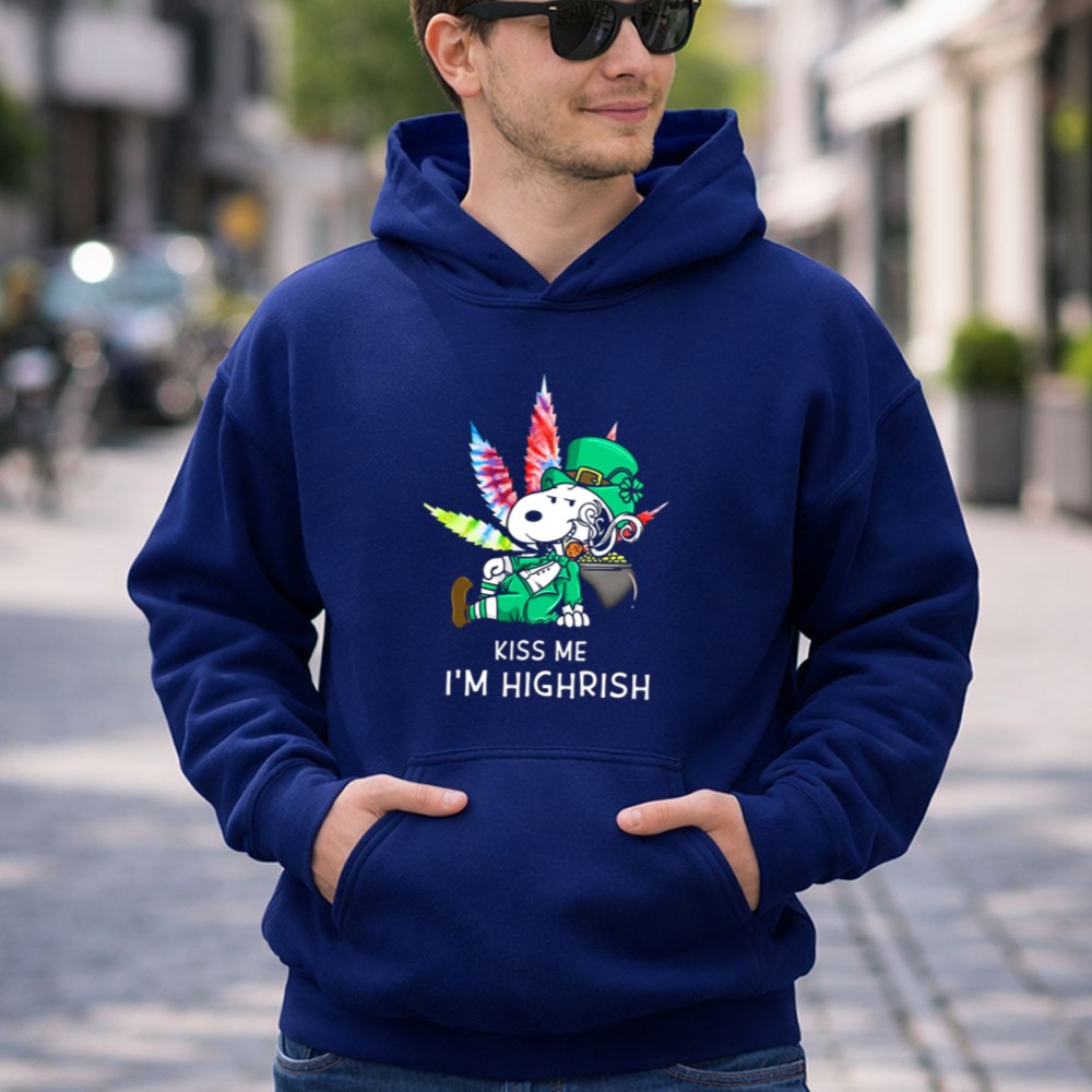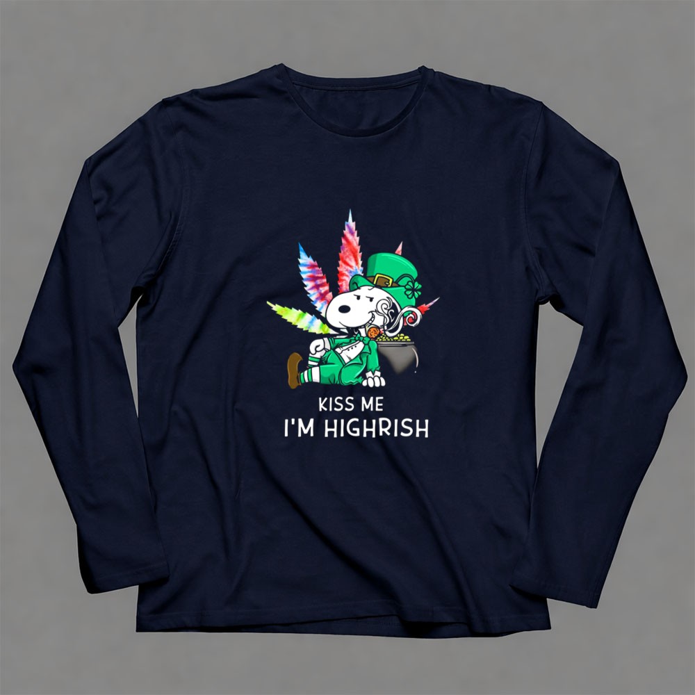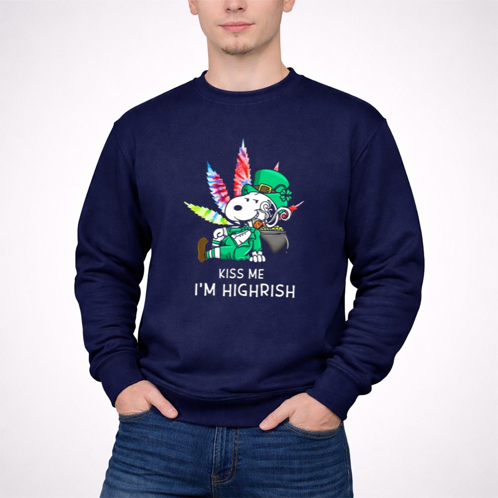 Kiss Me I’m Highrish Snoopy With Leprechaun Hat And Cannabis Leaves Shirt
