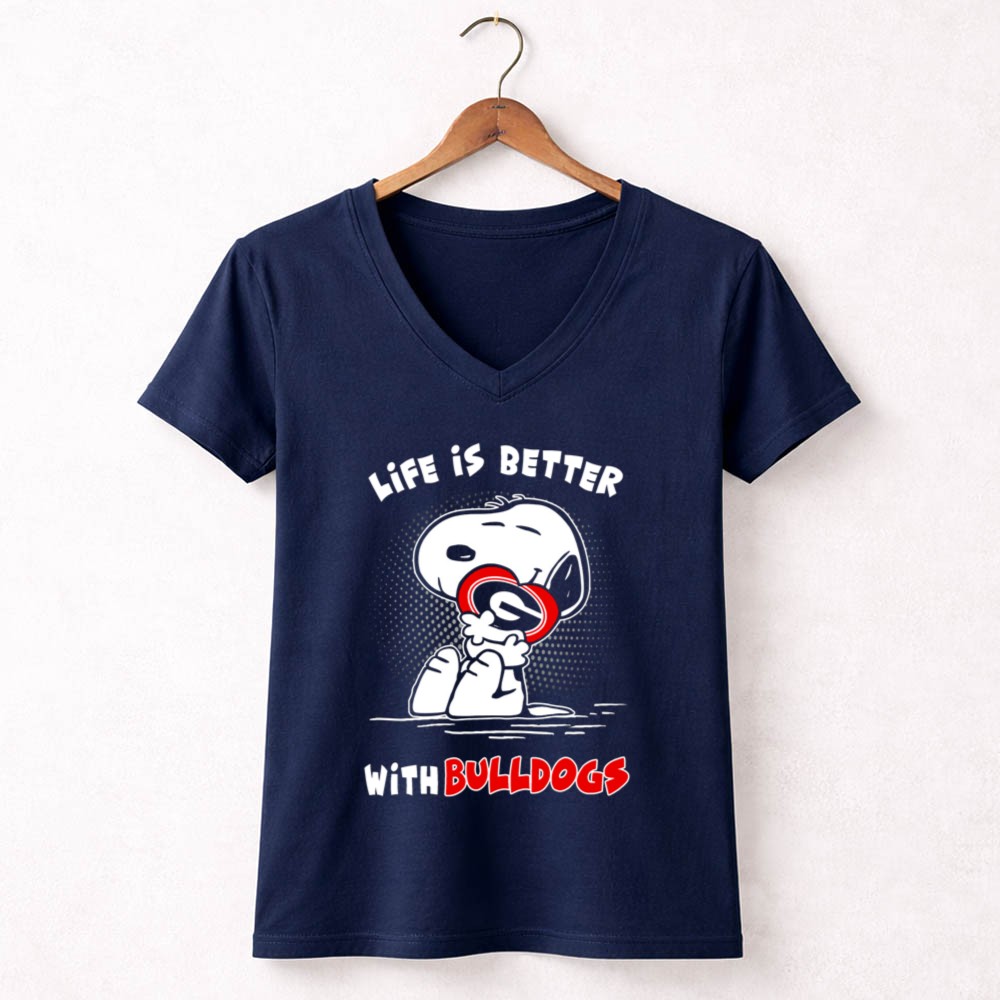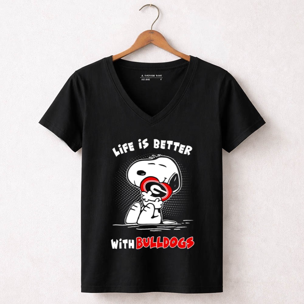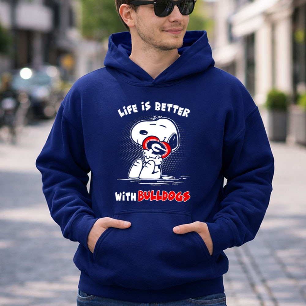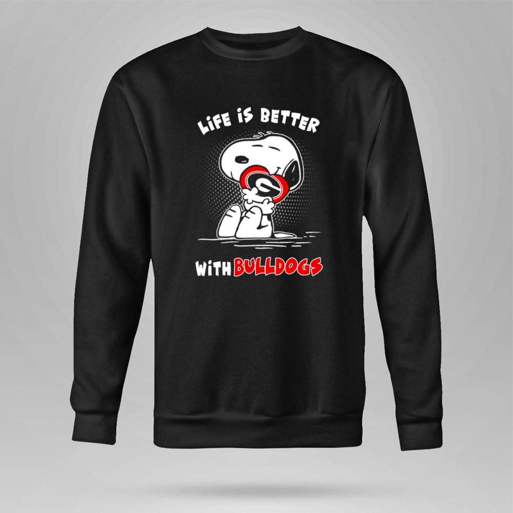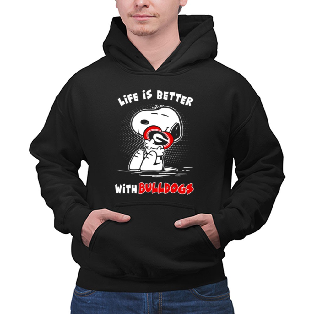 Life Is Better With Bulldogs Snoopy Hugging Georgia Helmet Shirt