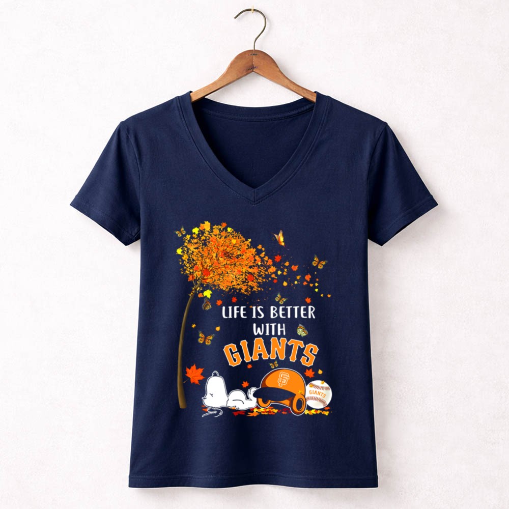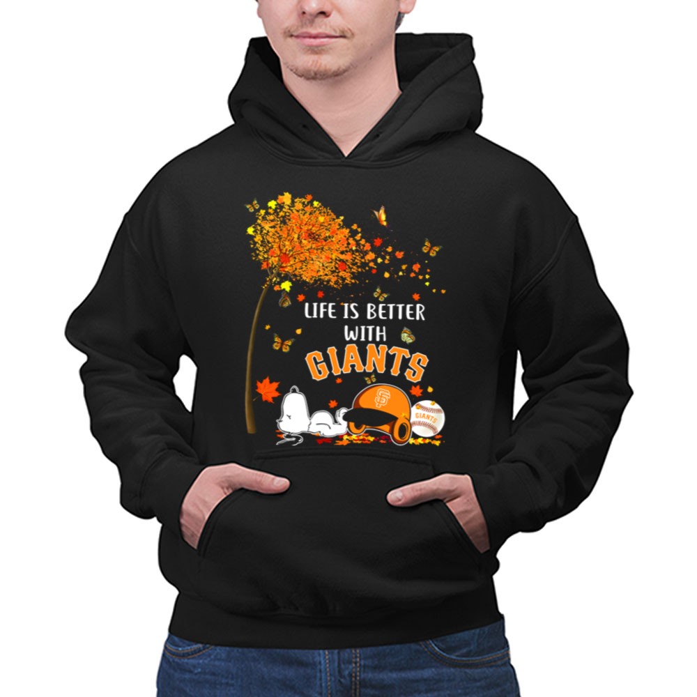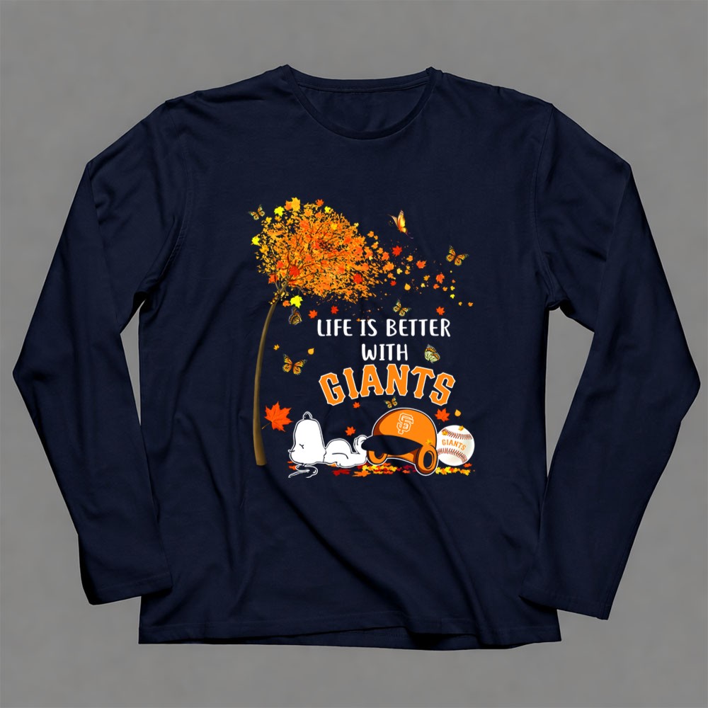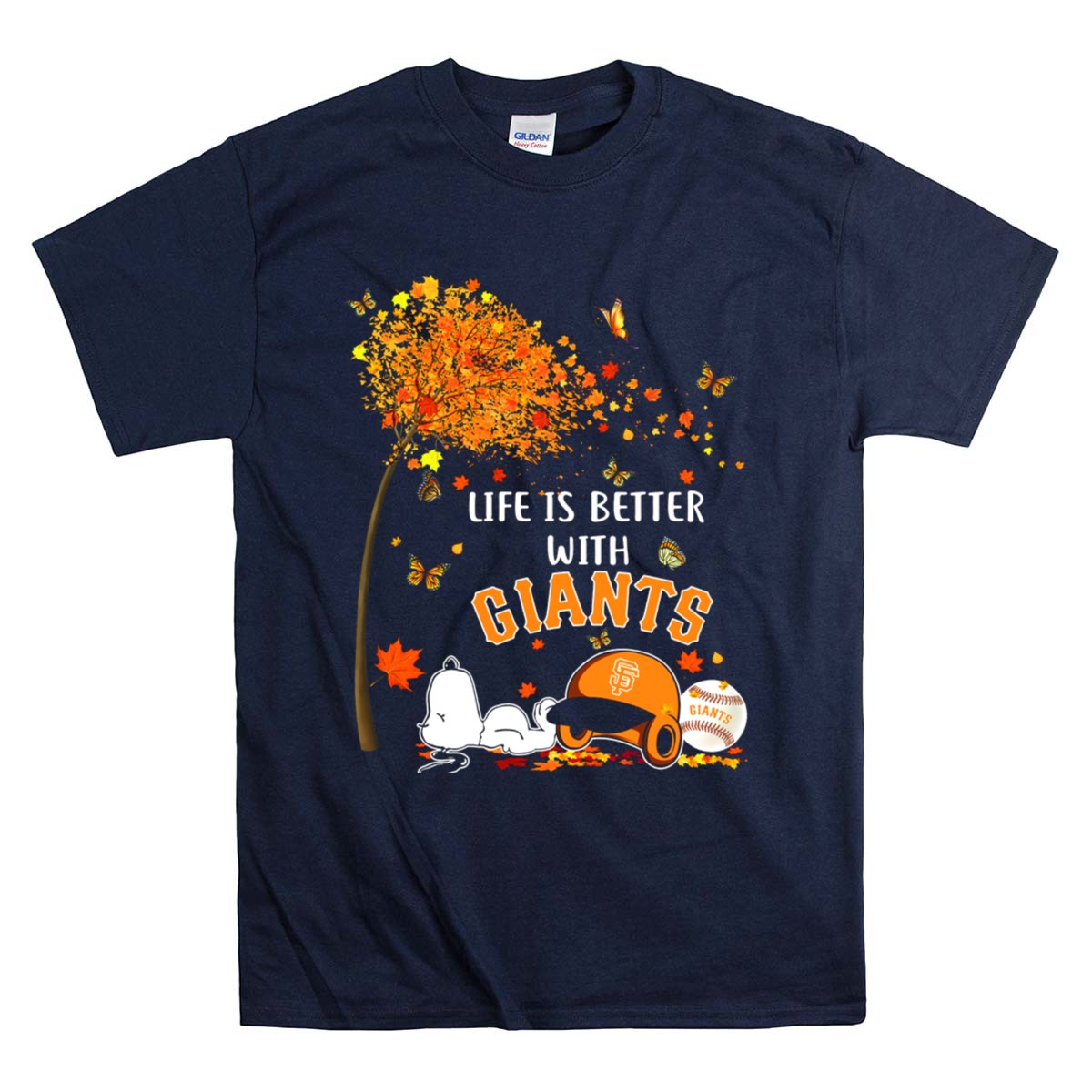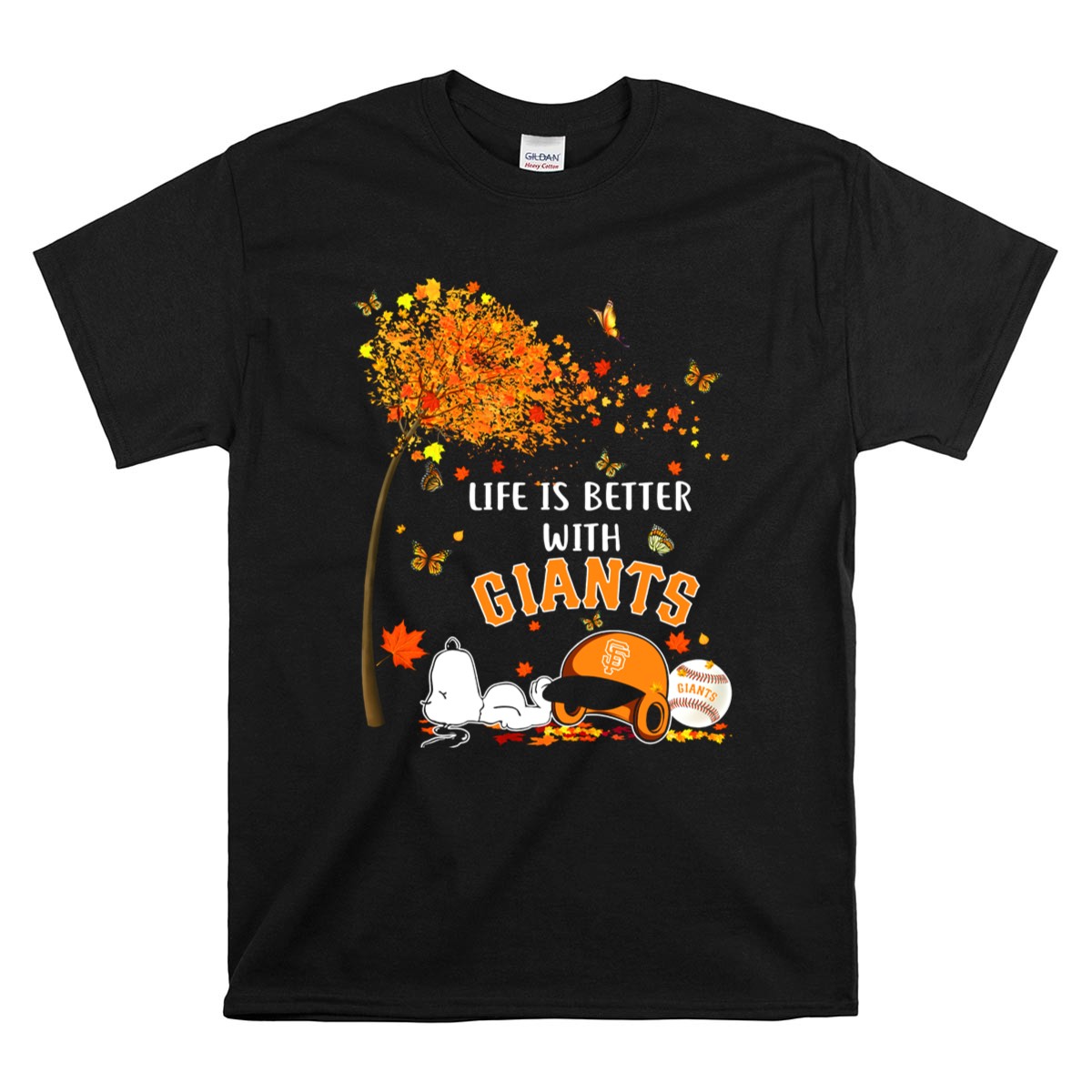 Life Is Better With Giants Snoopy Fall Leaves Baseball Cap Shirt