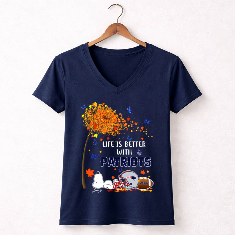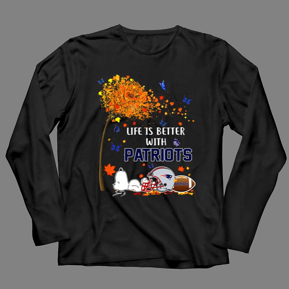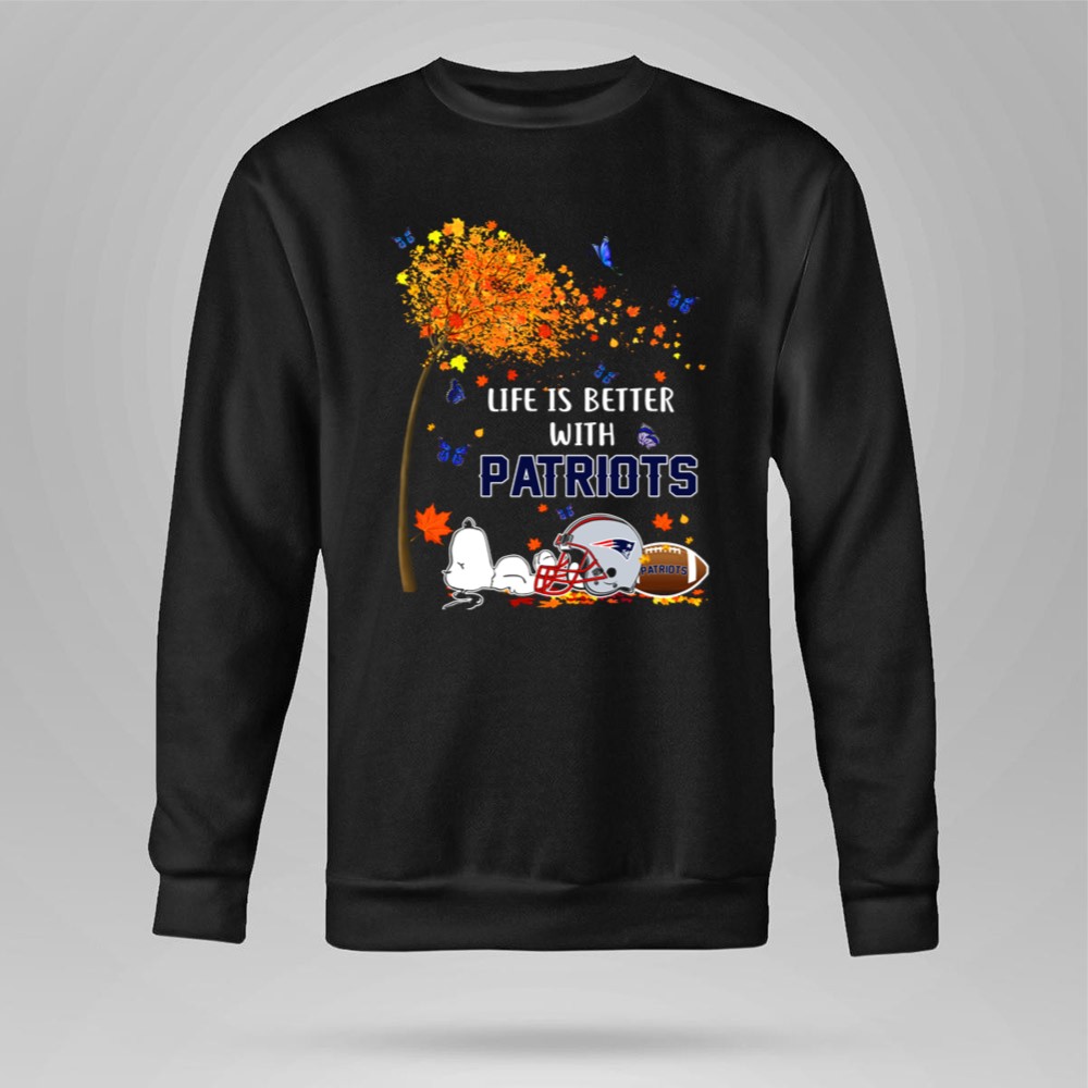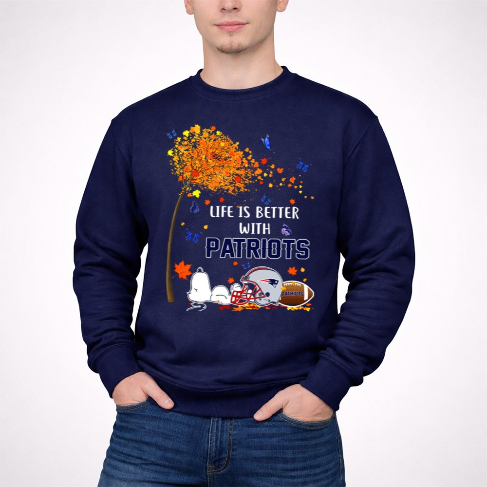 Life Is Better With Patriots New England Football Autumn Leaves And Snoopy Shirt