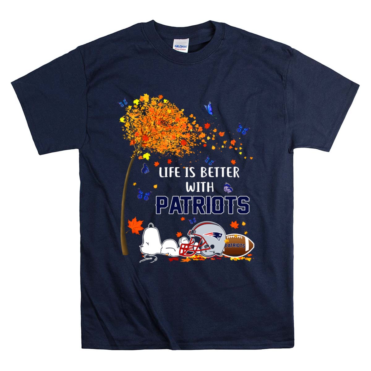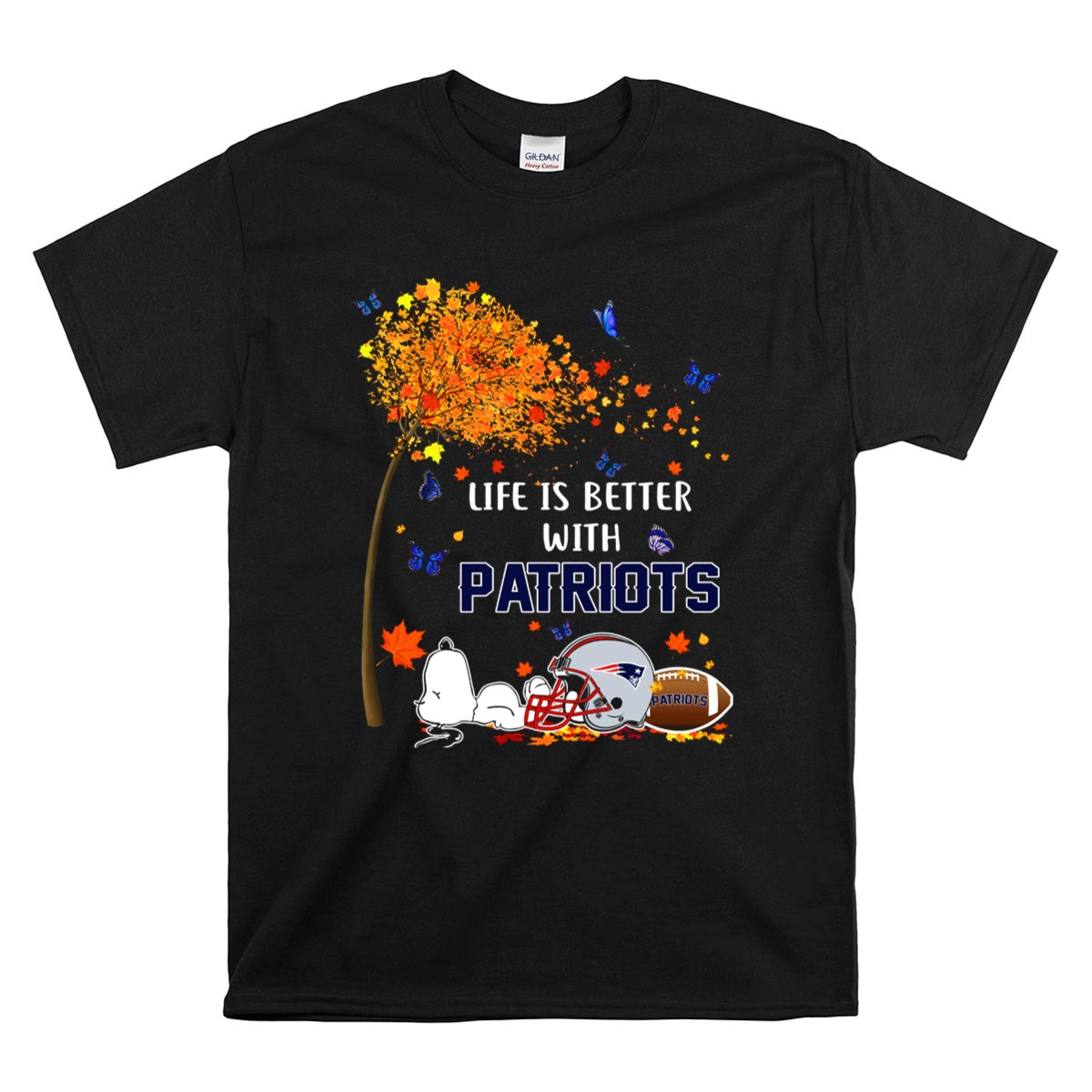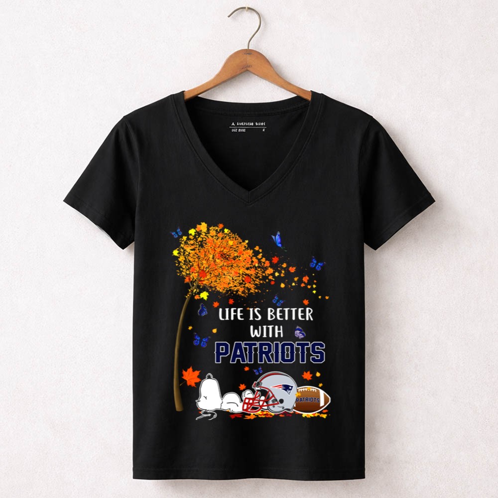 Life Is Better With Patriots New England Football Autumn Leaves And Snoopy Shirt