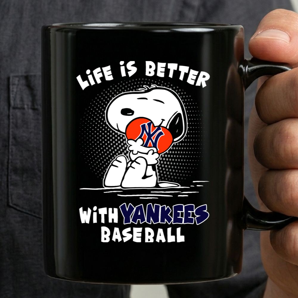 Life Is Better with Yankees Baseball Snoopy Hugging Mug