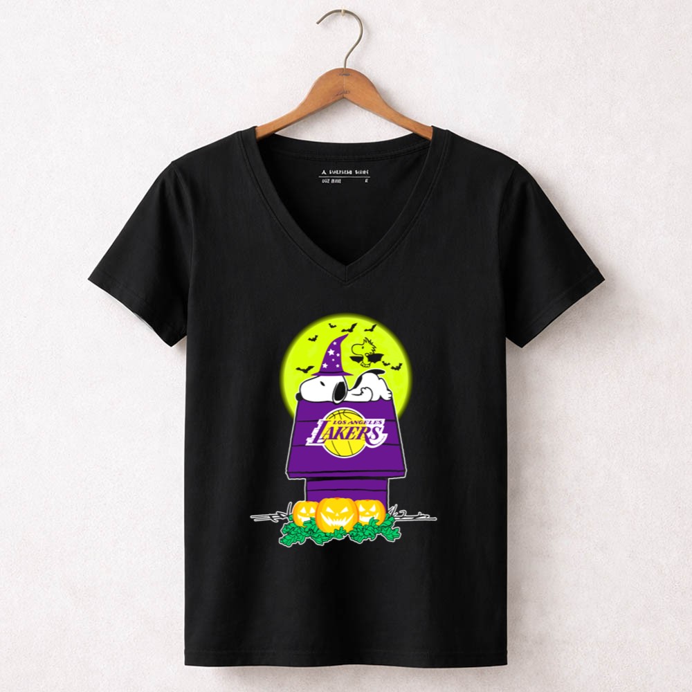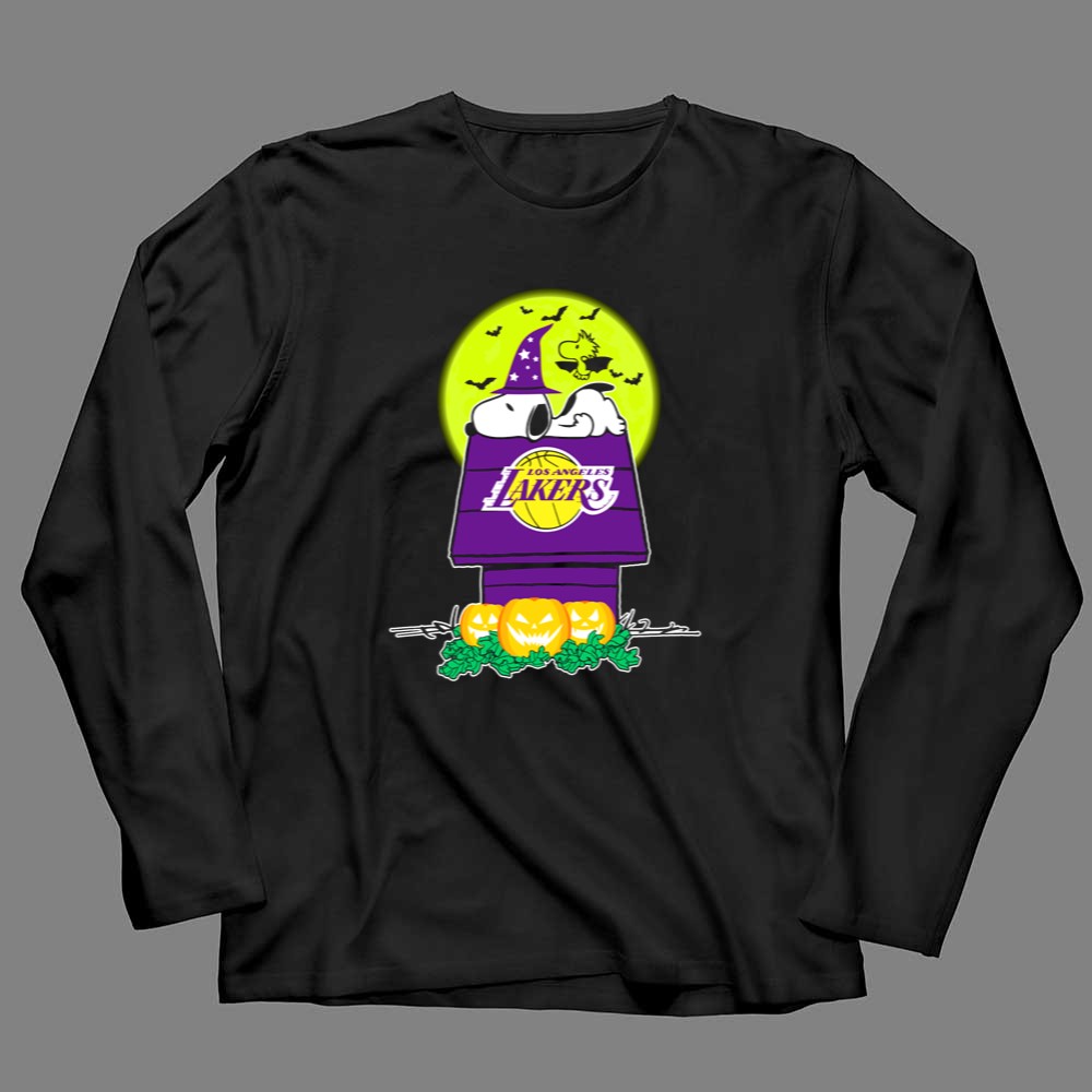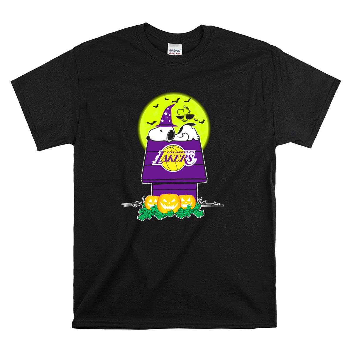 Los Angeles Lakers Snoopy Halloween Pumpkin Moon Bats Shirt