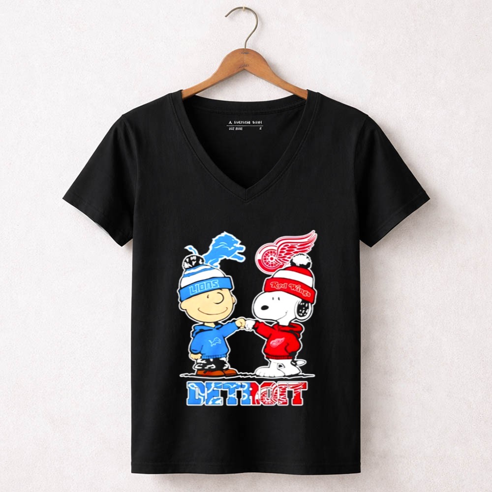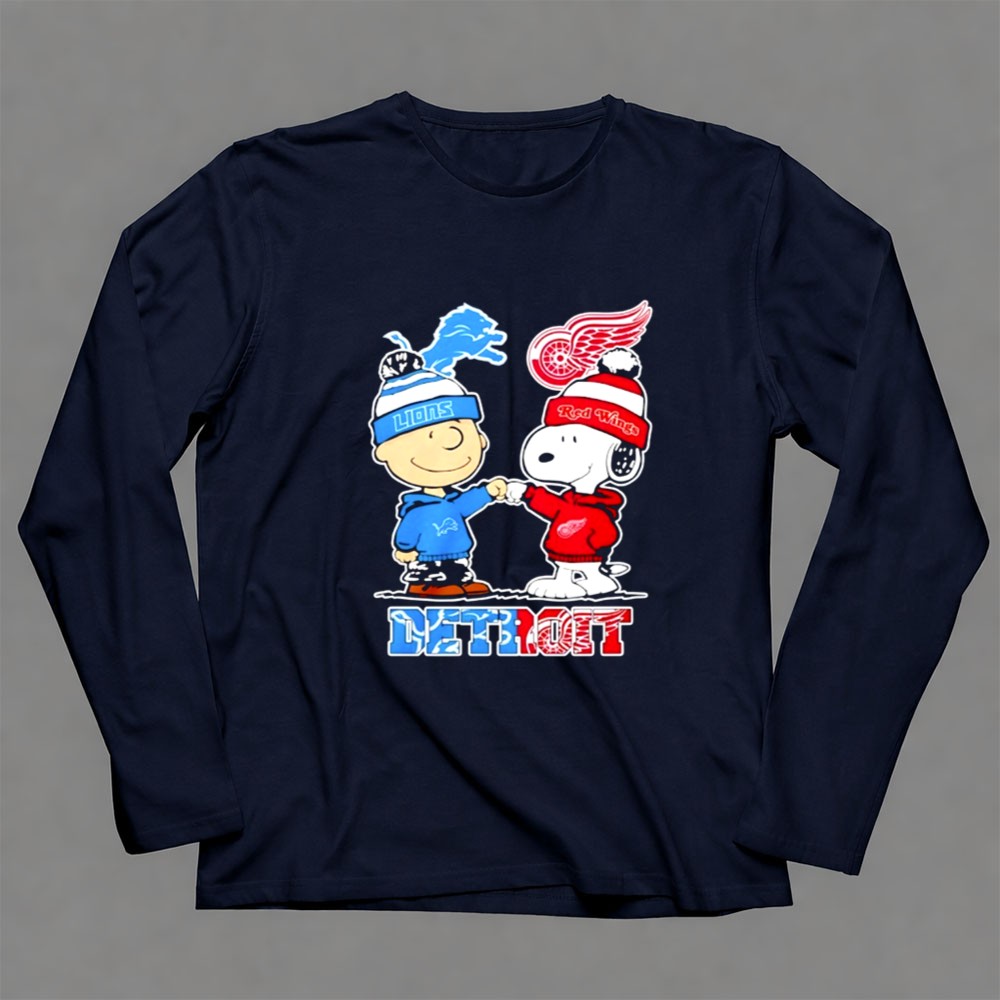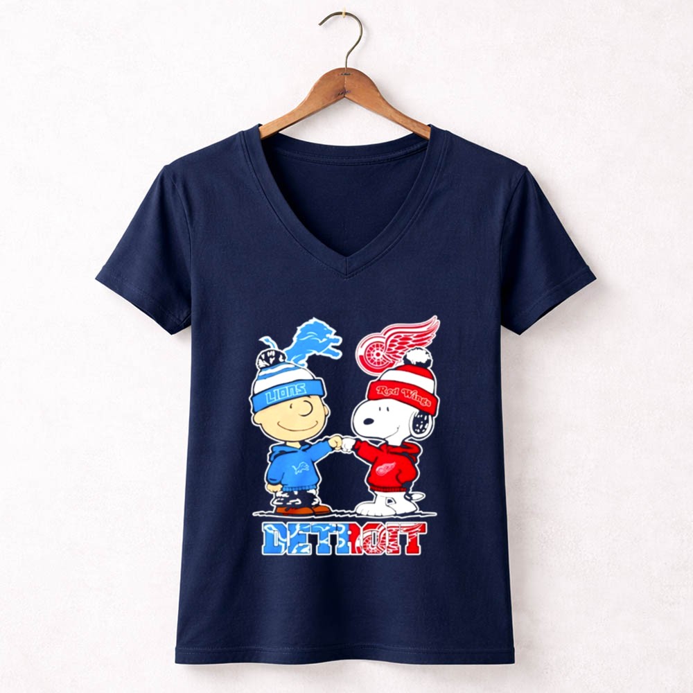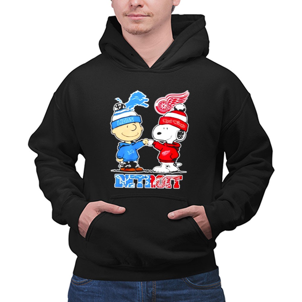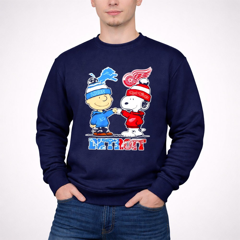 Mashup Charlie Brown Detroit Lions And Red Wings Snoopy Shirt