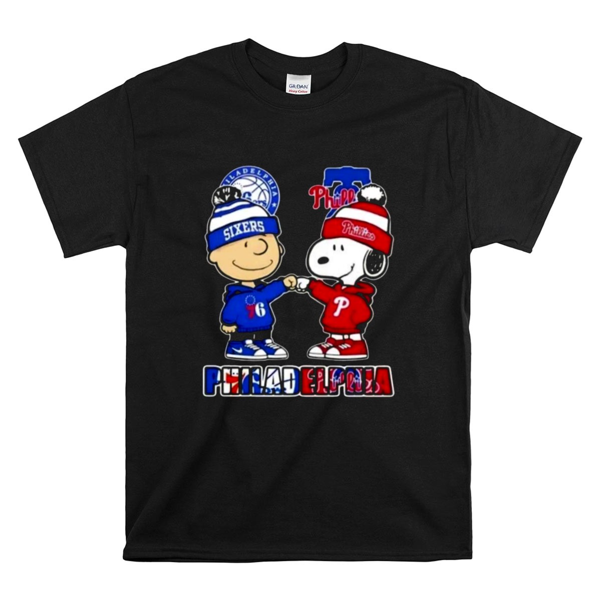 Mashup Charlie Brown Fist Bump Snoopy Philadelphia City Sports 76ers X Phillies Shirt