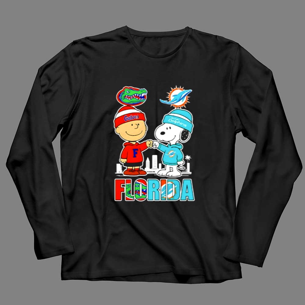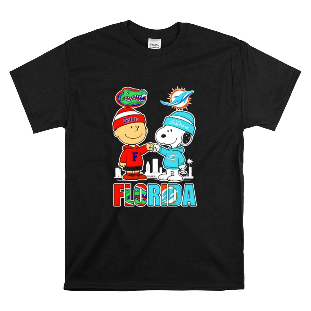 Mashup Charlie Brown Gators and Snoopy Dolphins Florida City Skyline Shirt